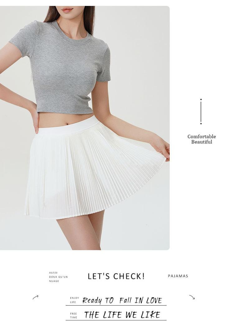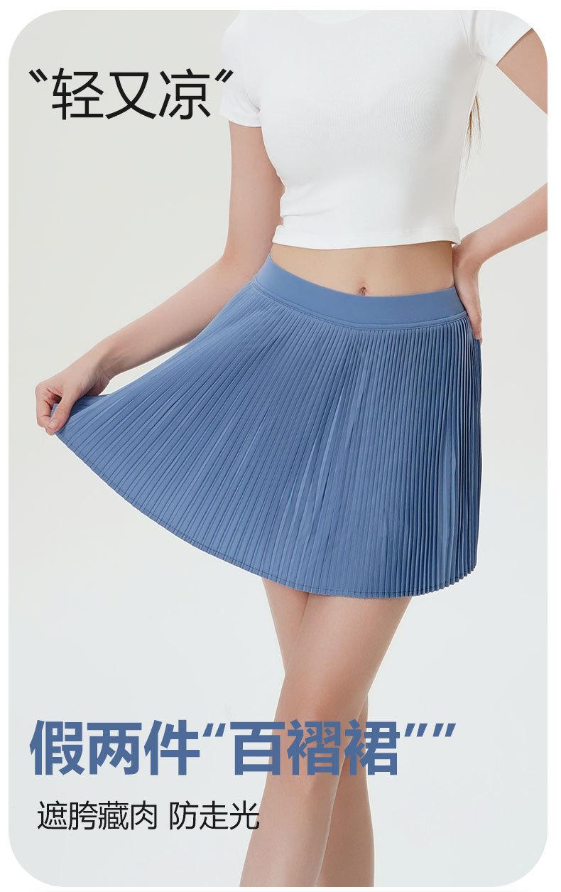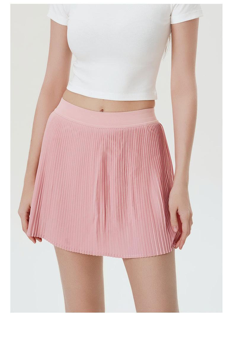 Falda de Tenis Yoga Doble Capa Lulu con Bolsillo Antirozaduras Falda para Correr Media Longitud Color Sólido Fitness Falda Plisada