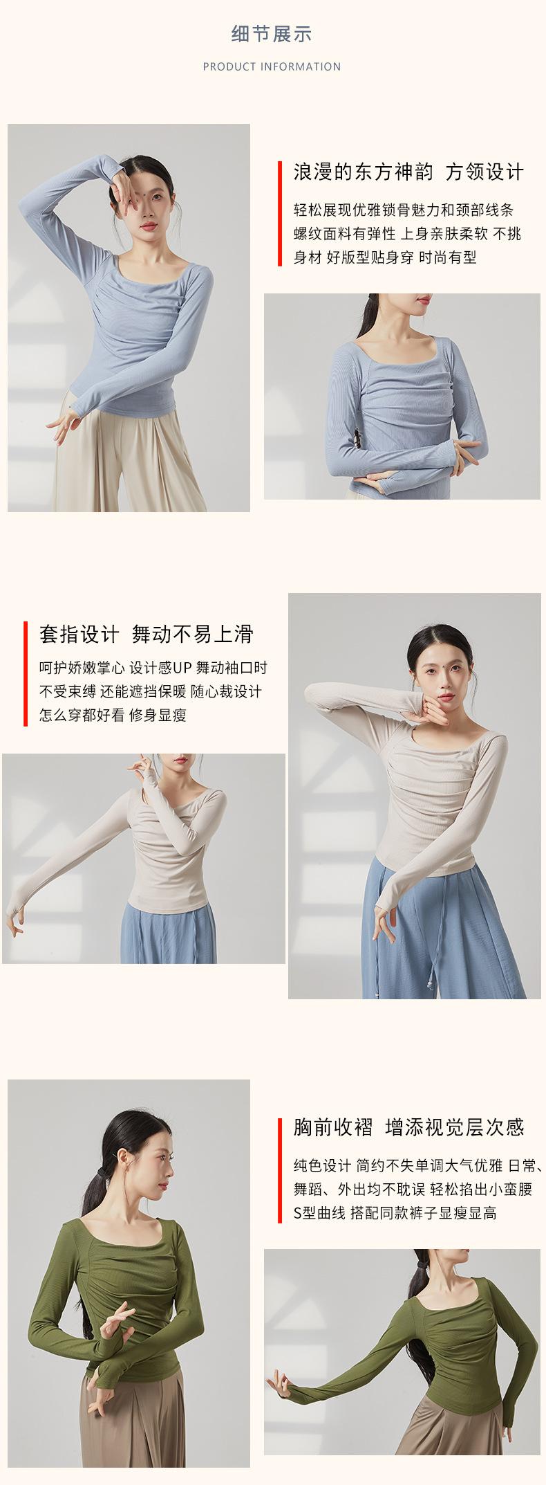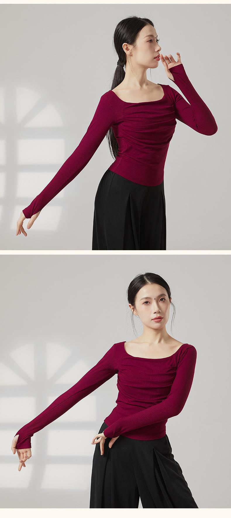 Traje de Baile Top para Mujer Nuevo Traje de Práctica de Danza Moderna Uso Diario Manga Larga Danza Clásica China Traje de Práctica Corporal