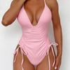Traje de baño entero europeo y americano nuevo 2025 de Amazon europeo y americano de vacaciones de color sólido