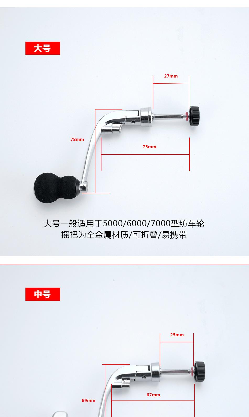 Carrete de Pesca Brazo de Bobina Carrete Giratorio Carrete de Línea de Pesca Manivela Manija Totalmente Metálica Empuñadura Brazo de Bobina Accesorios de Equipo de Pesca