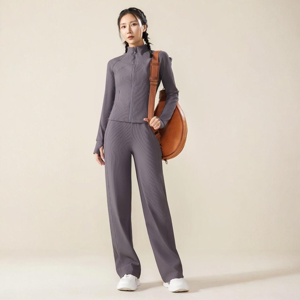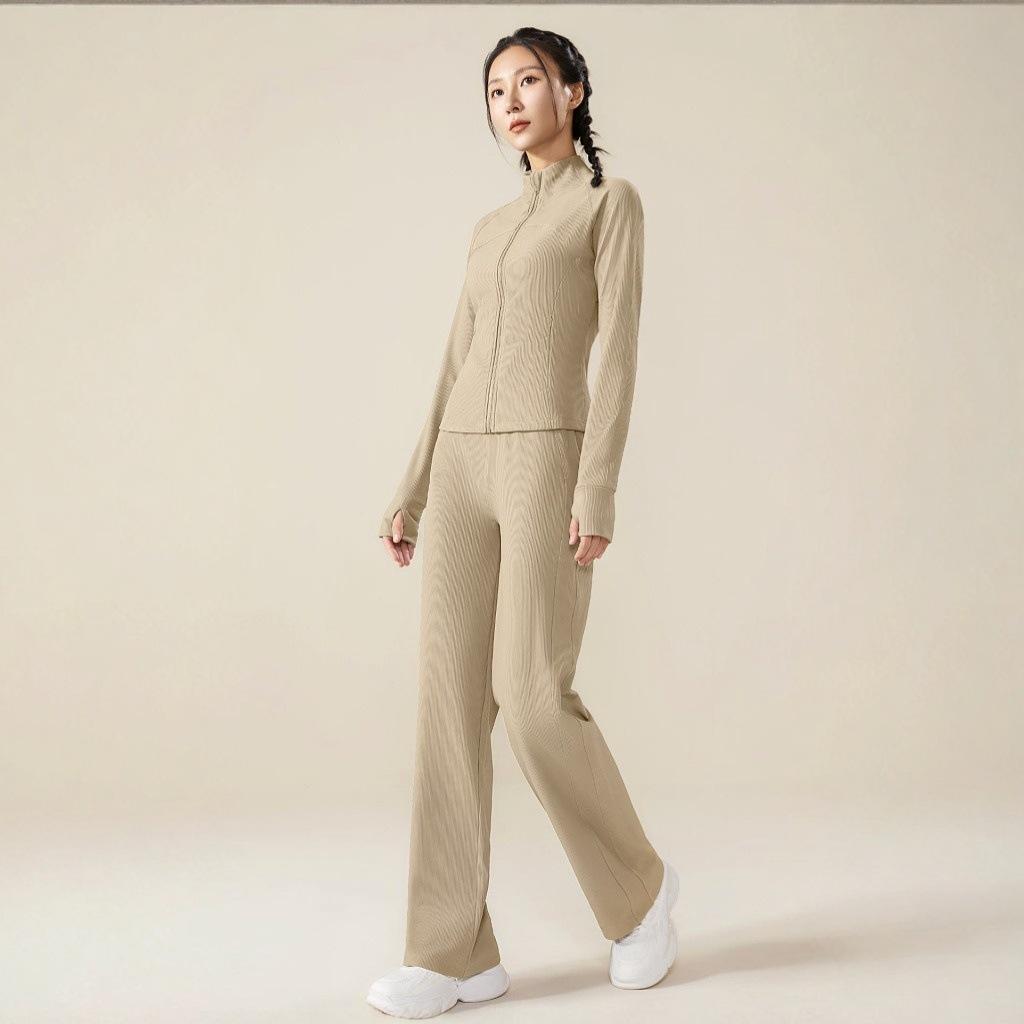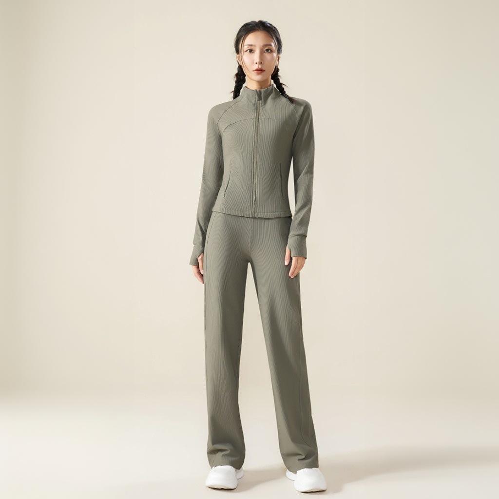 Ropa de Yoga Transfronteriza Adelgazante Top de Manga Larga Conjunto Deportivo para Correr Fitness Pantalones Largos Venta al por Mayor Chaqueta Mujer Otoño Invierno Exterior