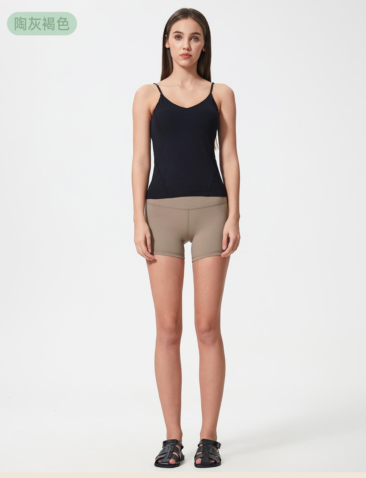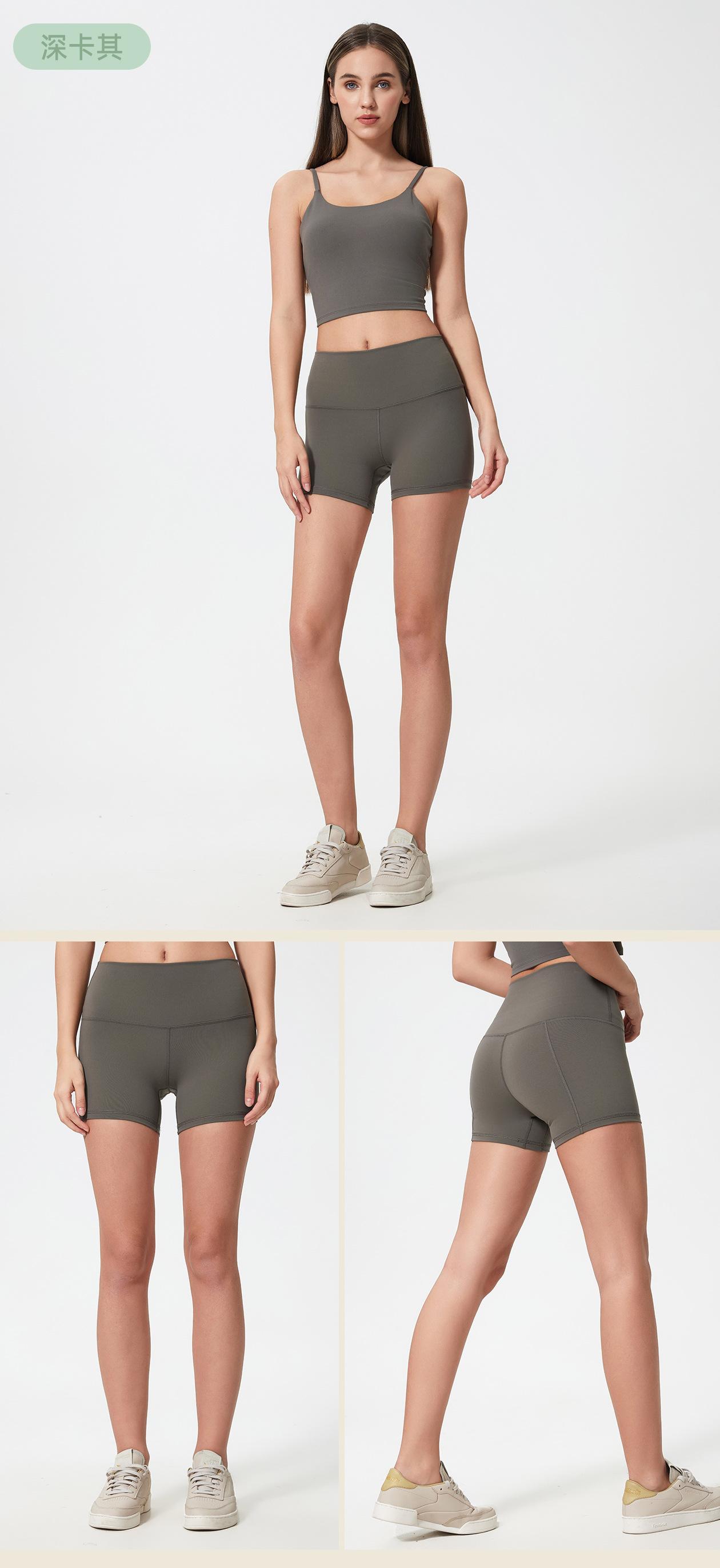 Verano Nuevo Cintura Alta Levanta Cadera Elástico Pantalón Tres Puntos Mujer Cepillado Doble Cara Fitness Sensación Desnuda Shorts de Yoga Mujer S2037