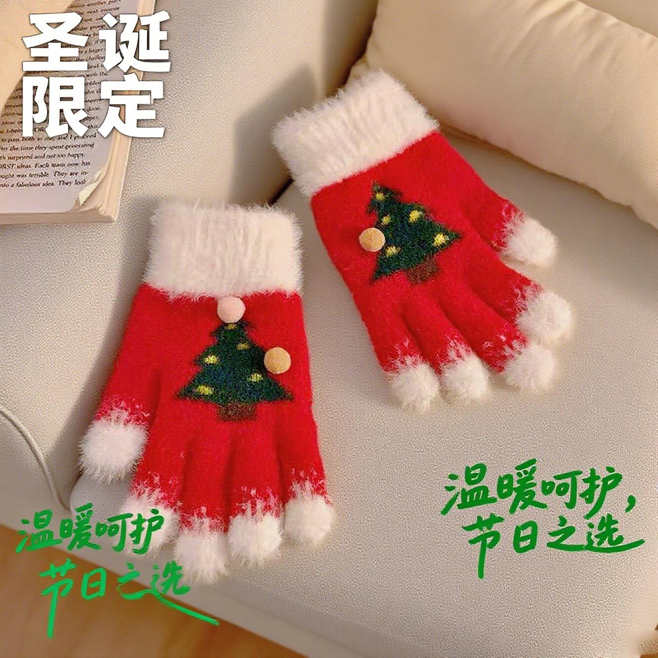 Guantes Cálidos Personalizados para Niños Invierno Niñas Niños Niño Bebé Infantil Medio Dedo Cinco Dedos Niño de 3 Años Navidad
