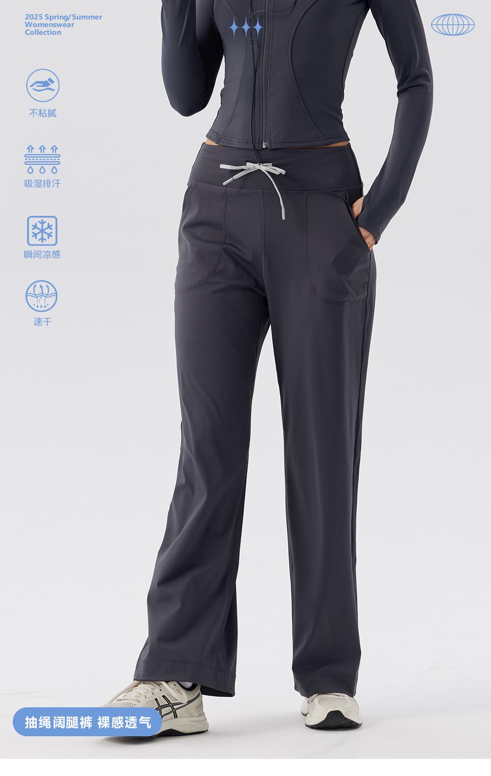 Pantalones de Yoga de Pierna Recta para Mujer Verano Sensación Fresca Cordón Pierna Ancha Adelgazantes Secado Rápido Correr Entrenamiento Fitness Pilates Deportes Pantalones Largos