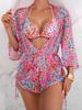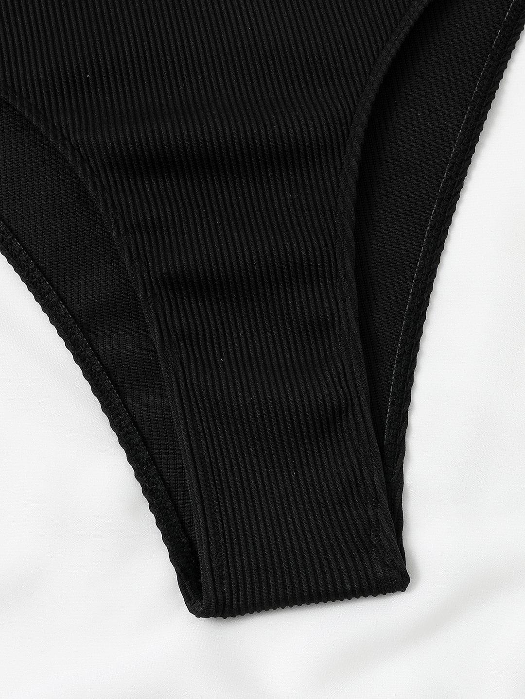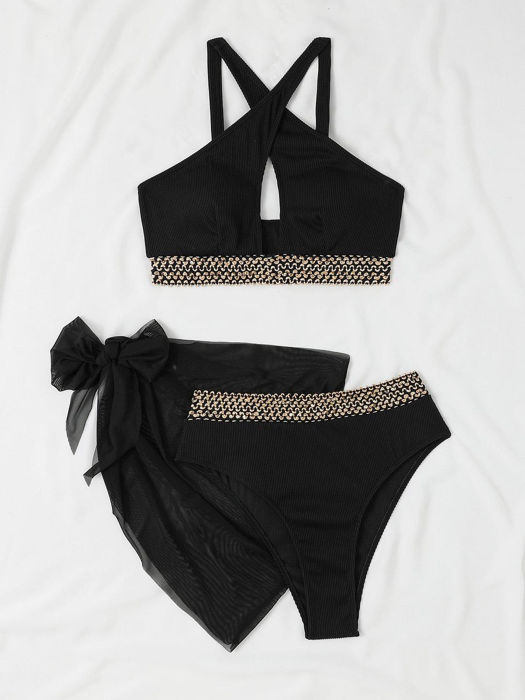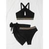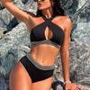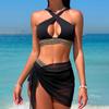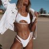 Traje de baño dividido europeo y americano transfronterizo Sexy color sólido cruzado hueco bikini de tres piezas playa traje de baño de comercio exterior para mujeres