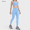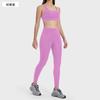 Sujetador Deportivo de Alta Intensidad con Espalda Cruzada Pantalones de Yoga Fitness de Cintura Alta Levanta Caderas Set de Yoga Seamless con Línea T para Mujer