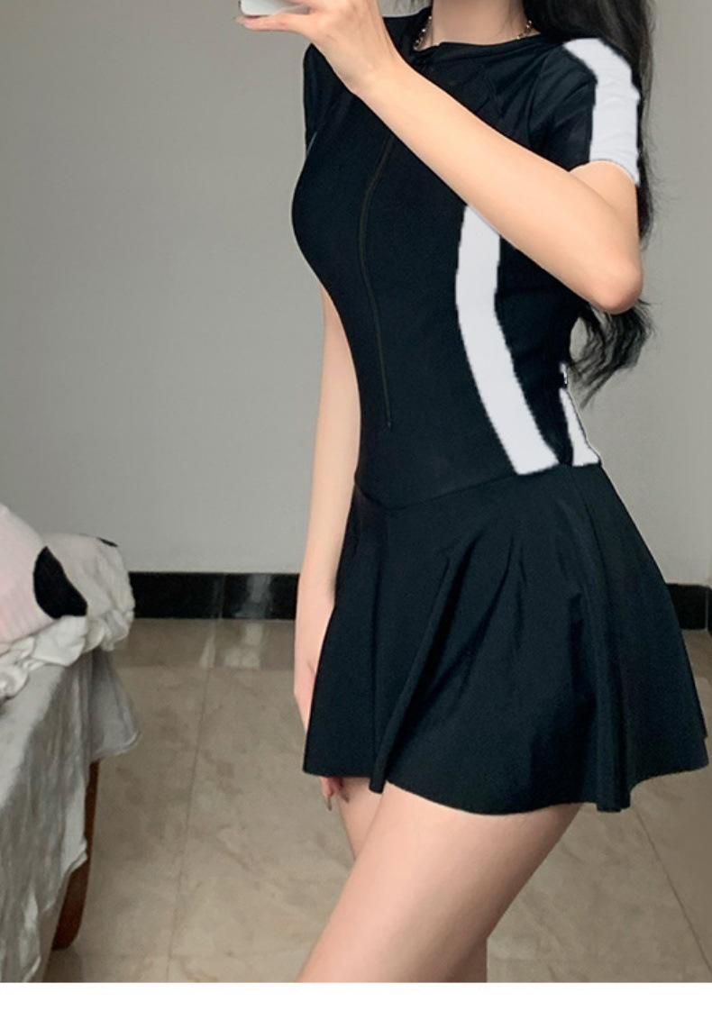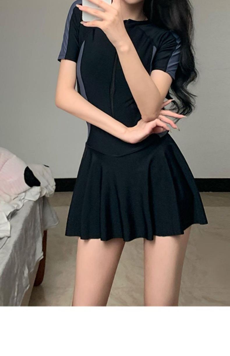 Traje de Baño Deportivo Mujer 2025 Verano Nuevo Conservador Pierna Plana Una Pieza Estilo Falda Control de Abdomen Adelgazante Estudiante Bañador Aguas Termales