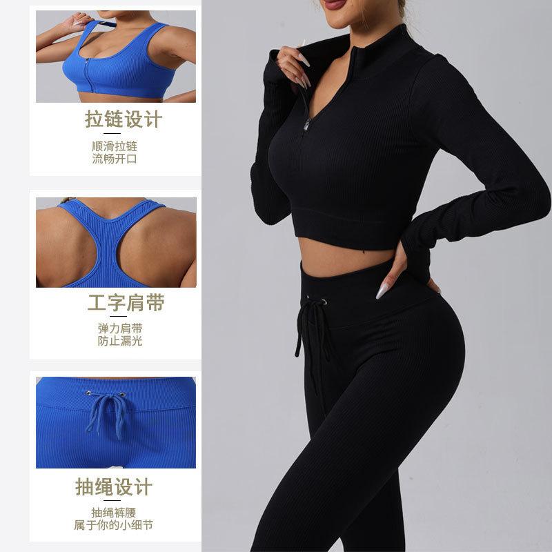 Sujetador Deportivo Fitness Popular de Talla Grande con Cremallera de Amazon Pantalones de Manga Corta Manga Larga Cordón Cremallera Traje de Yoga