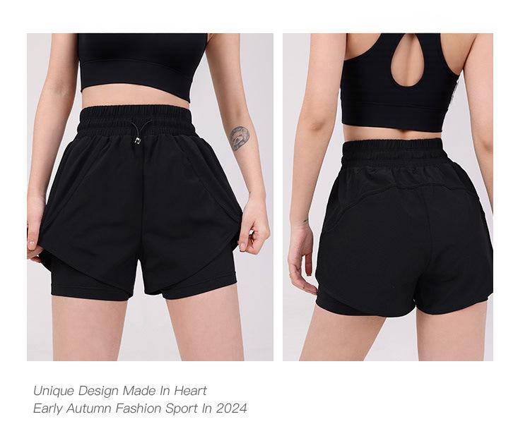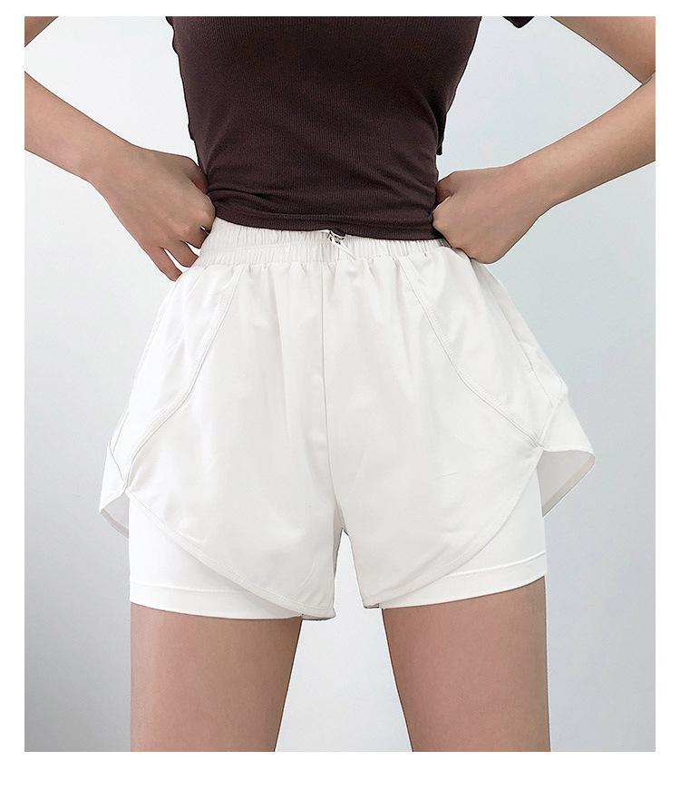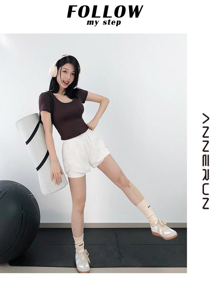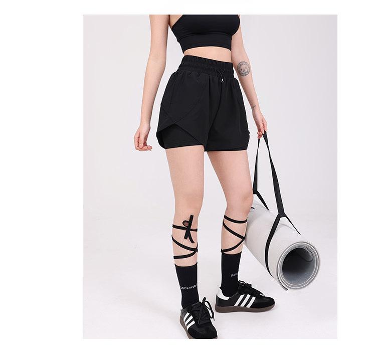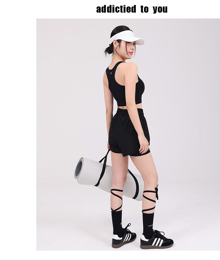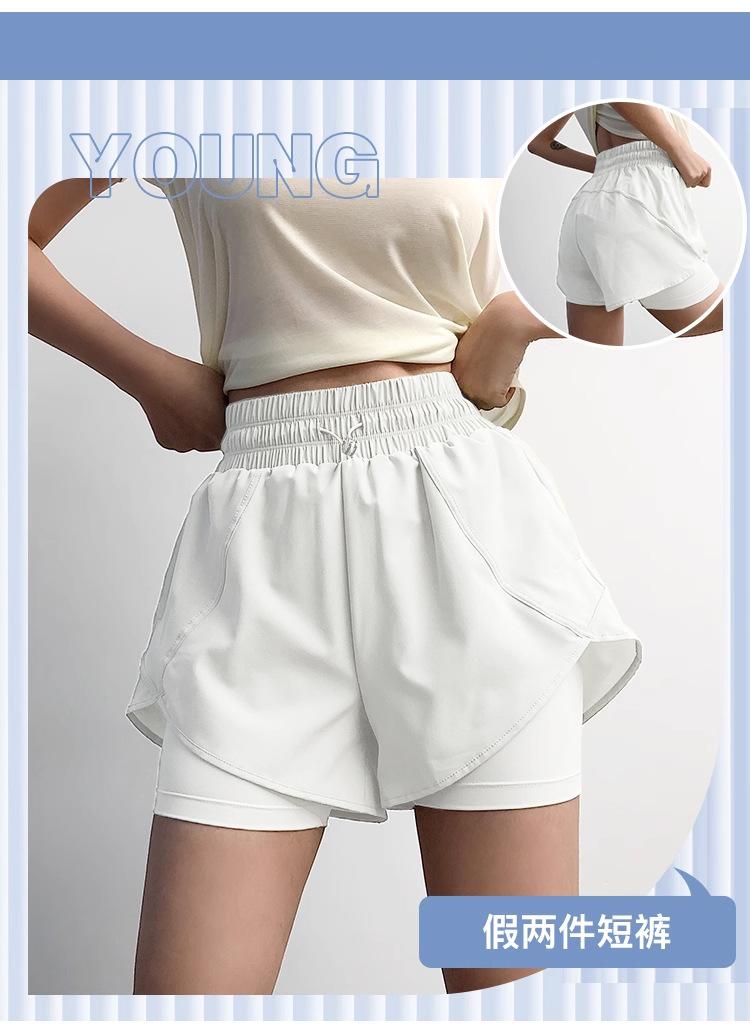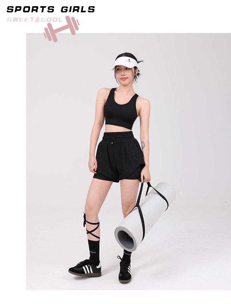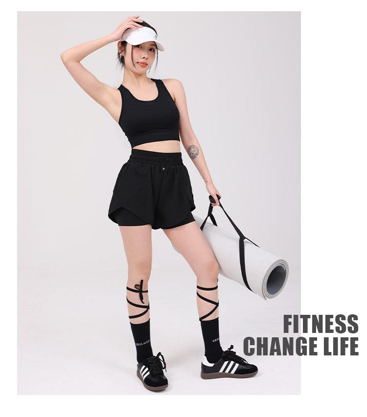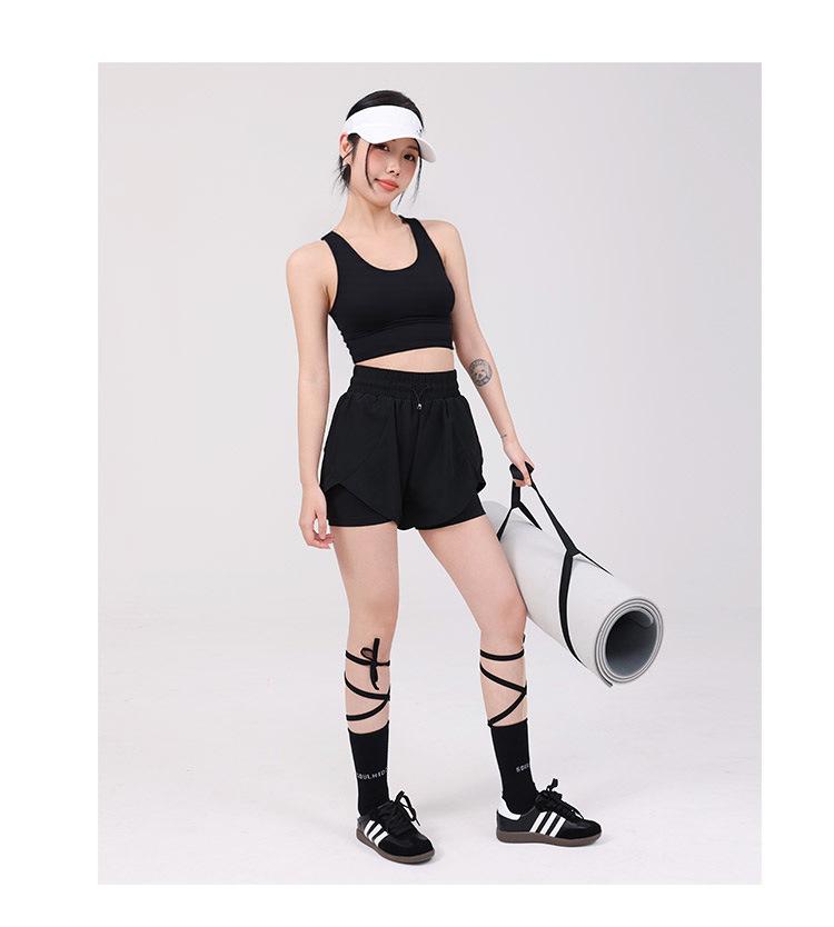 Shorts deportivos falsos de dos piezas para mujer, verano, anti-exposición, para correr, de secado rápido, chaleco de fitness, set de entrenamiento de pilates y yoga