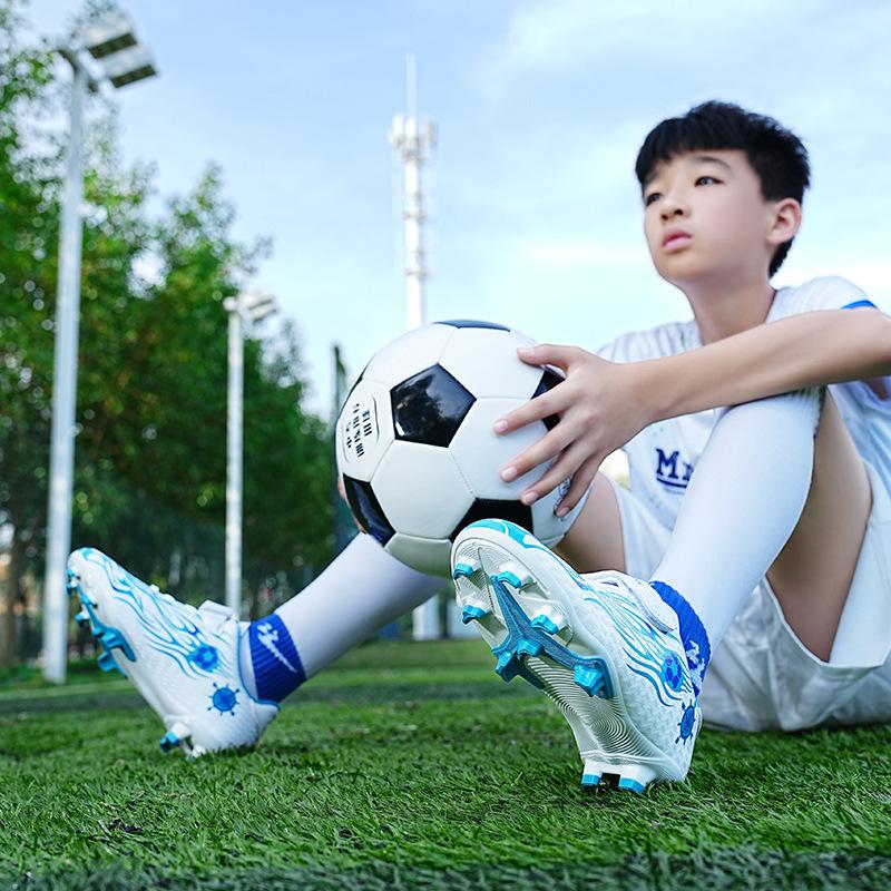 Zapatos de Fútbol para Niños AG Tacos Largos TF Tacos para Césped Zapatos de Fútbol para Entrenamiento y Competición en Campus Estudiantil Zapatillas de Velcro para Niños Medianos y Grandes