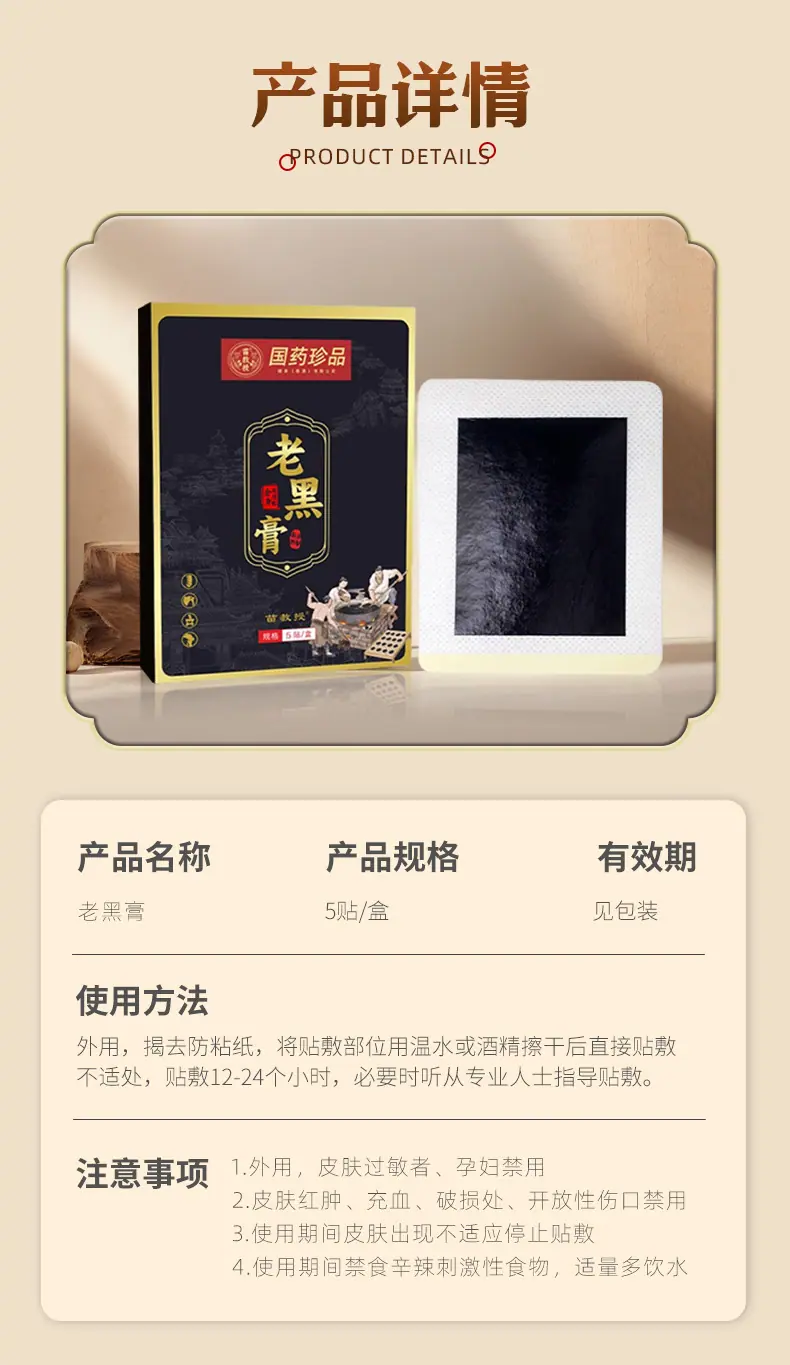 Traditional Chinese Medicine Treasure Black Cream - 5 Patches/Box, Wan Cao Zhong Fang Lao Hei Gao-10 patches/b...