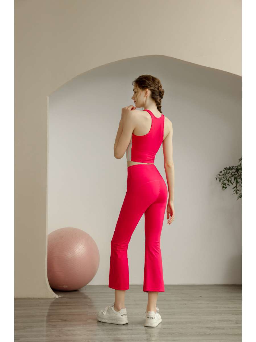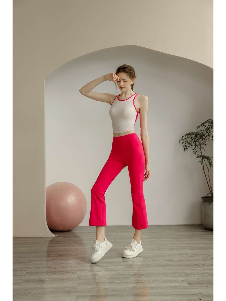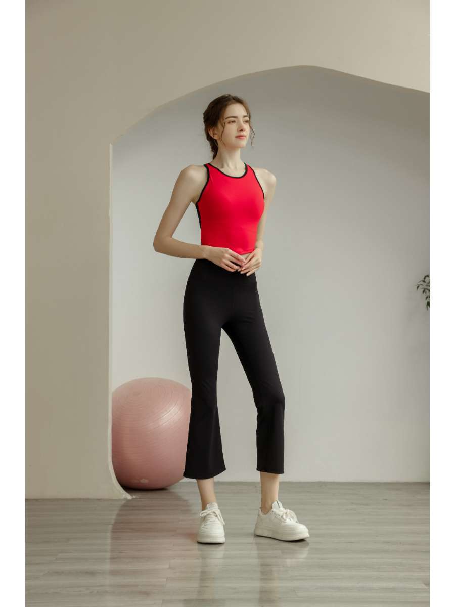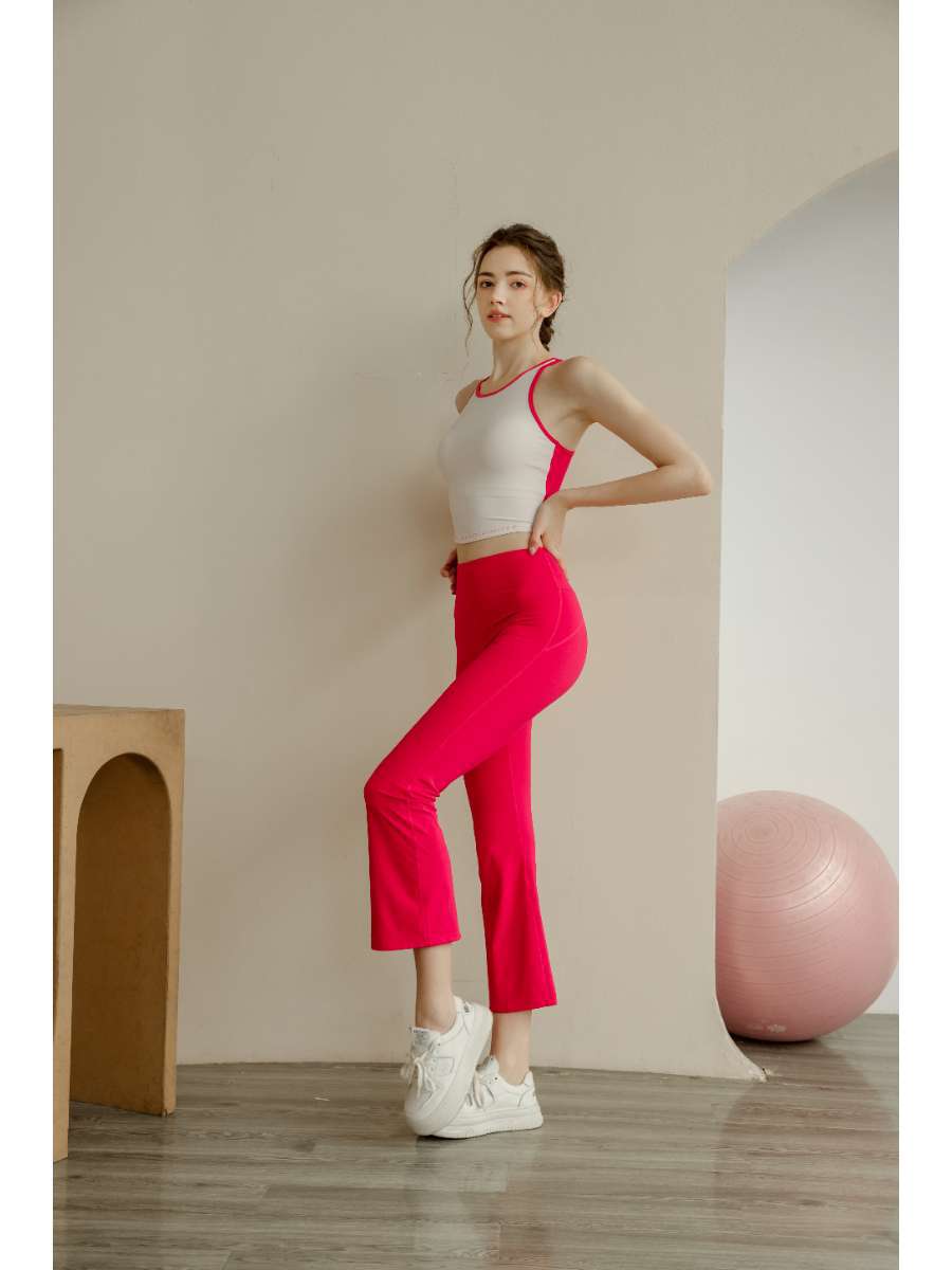 Conjunto de Yoga de Bloques de Color Europeo y Americano Top Deportivo Estilo Chaleco para Mujer Pantalones Acampanados de Cintura Alta Fitness Ropa Deportiva Transpirable