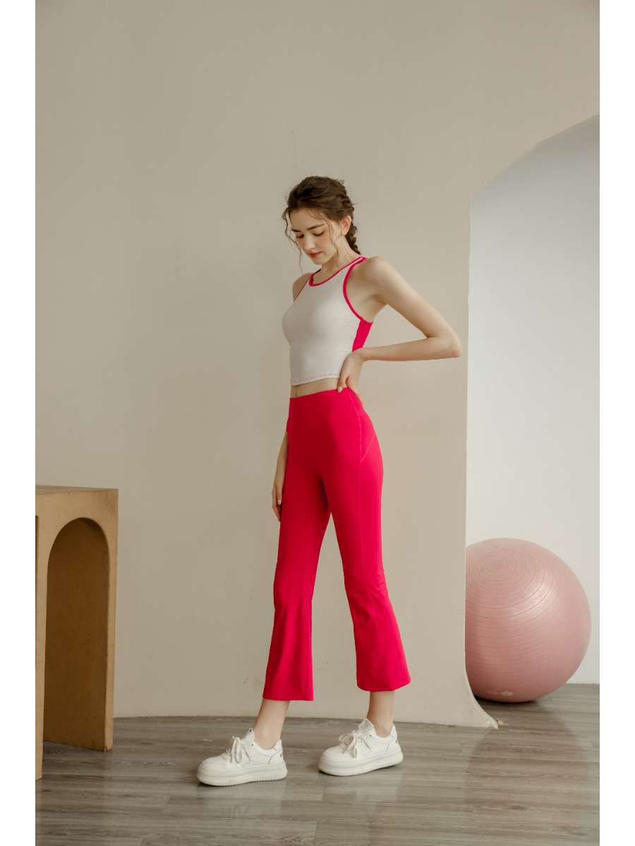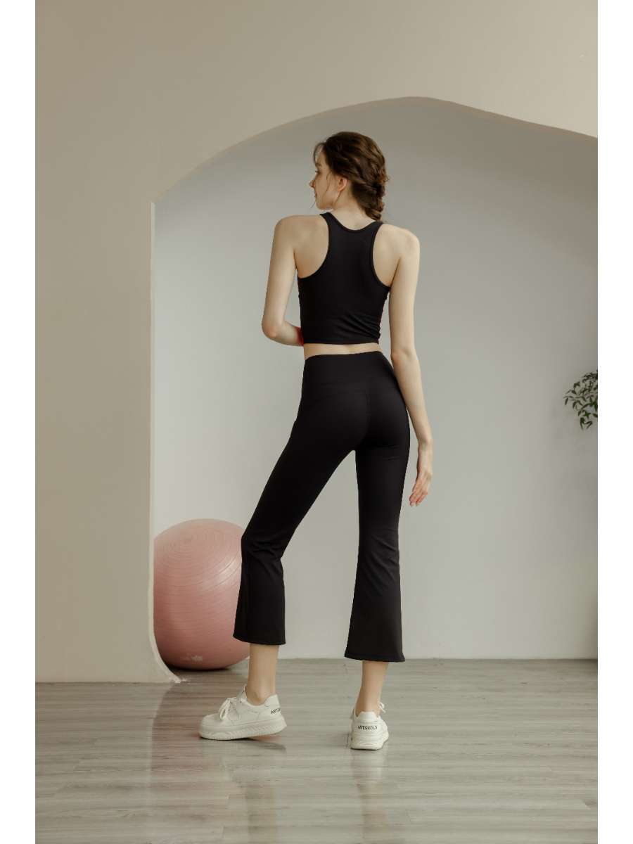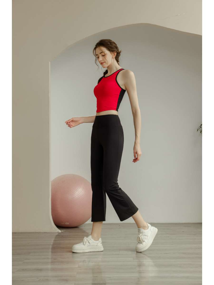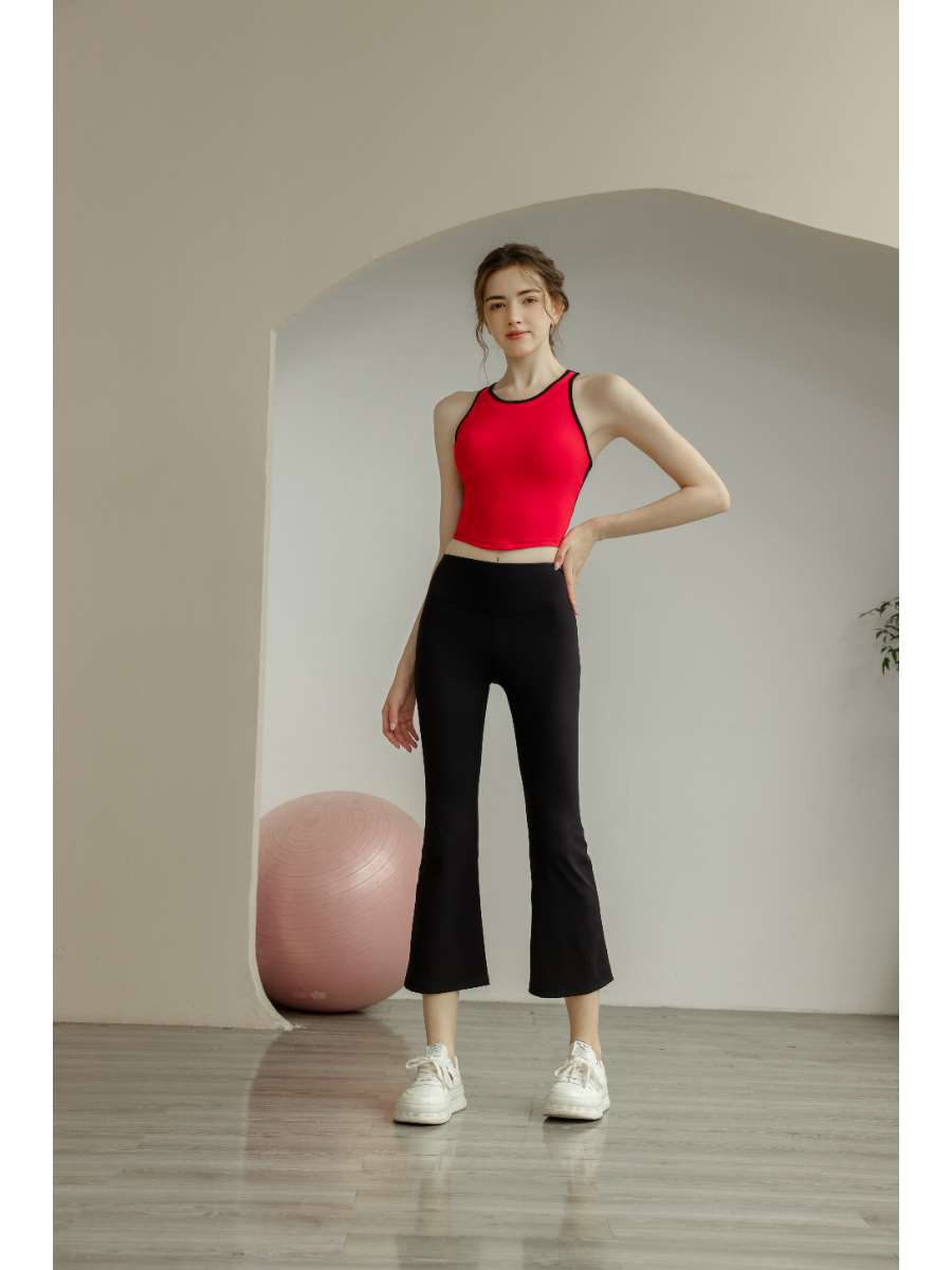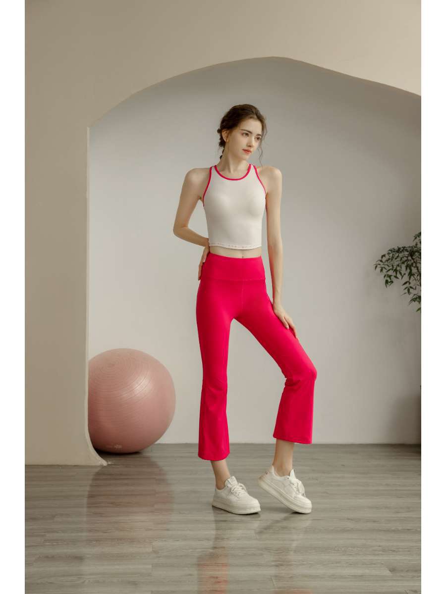 Conjunto de Yoga de Bloques de Color Europeo y Americano Top Deportivo Estilo Chaleco para Mujer Pantalones Acampanados de Cintura Alta Fitness Ropa Deportiva Transpirable