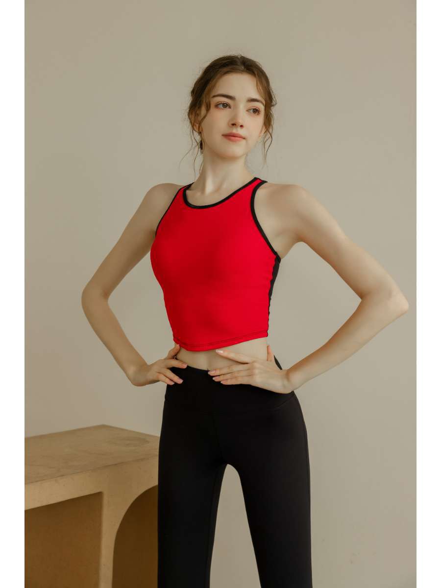 Ropa de Yoga Estilo Chino Estilo Nacional Cuello Alto Chaleco sin Mangas para Mujer con Almohadillas en el Pecho Ropa Exterior Ajustada para Deportes Fitness Secado Rápido