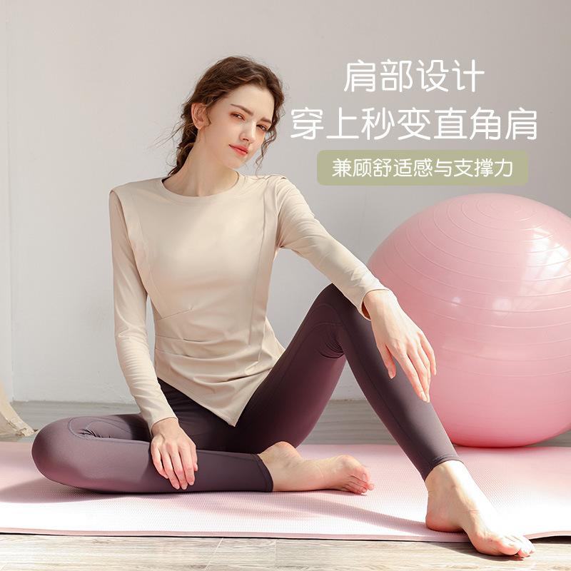 Top de Yoga de Manga Larga con Cuello Redondo Europeo y Americano con Diseño de Cintura Fruncida para un Ajuste Favorecedor Alta Elasticidad Adelgazante Ropa de Yoga para Entrenamiento Deportivo