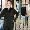 Brown suit [top + grey cropped trousers], Brown suit [top + black cropped trousers], Black Set [Top + Grey Cro...