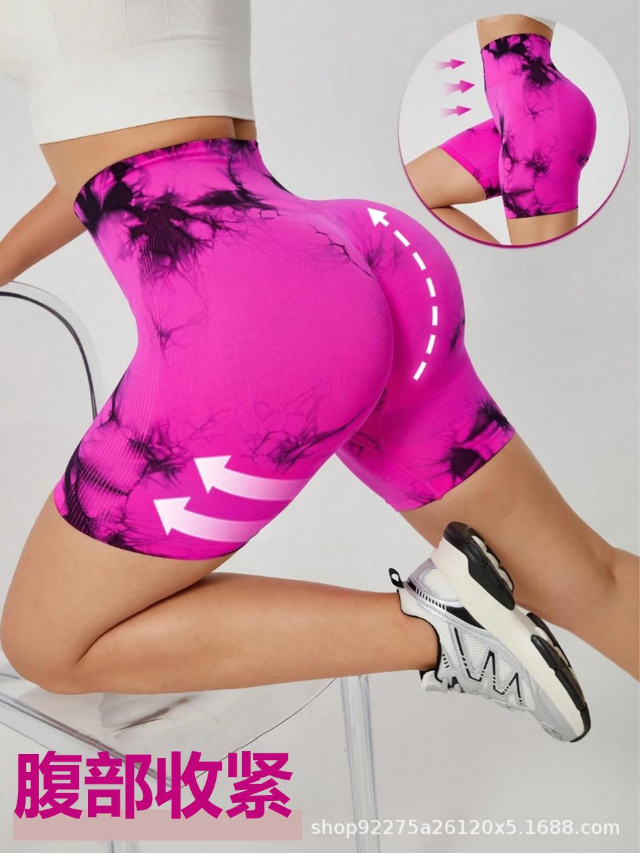 Pantalones de Yoga sin Costuras Tie-dye Transfronterizos Europeos y Americanos Melocotón Trasero Cintura Alta Levanta Caderas Deportes Correr Fitness