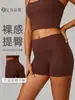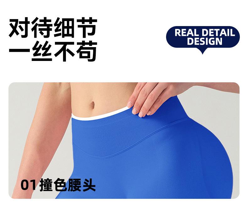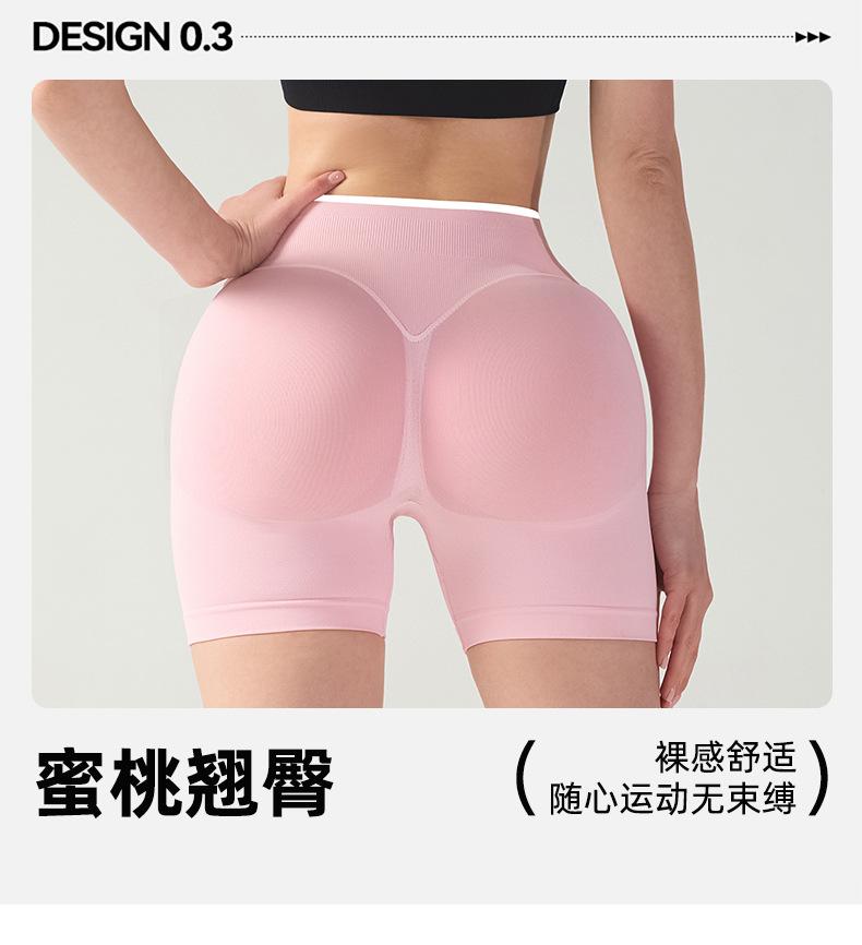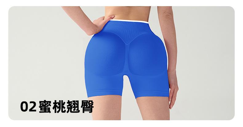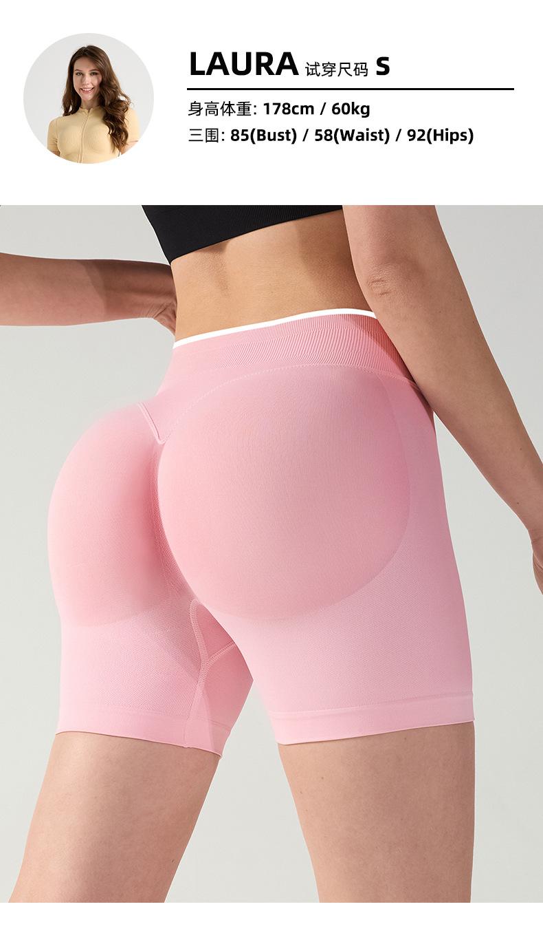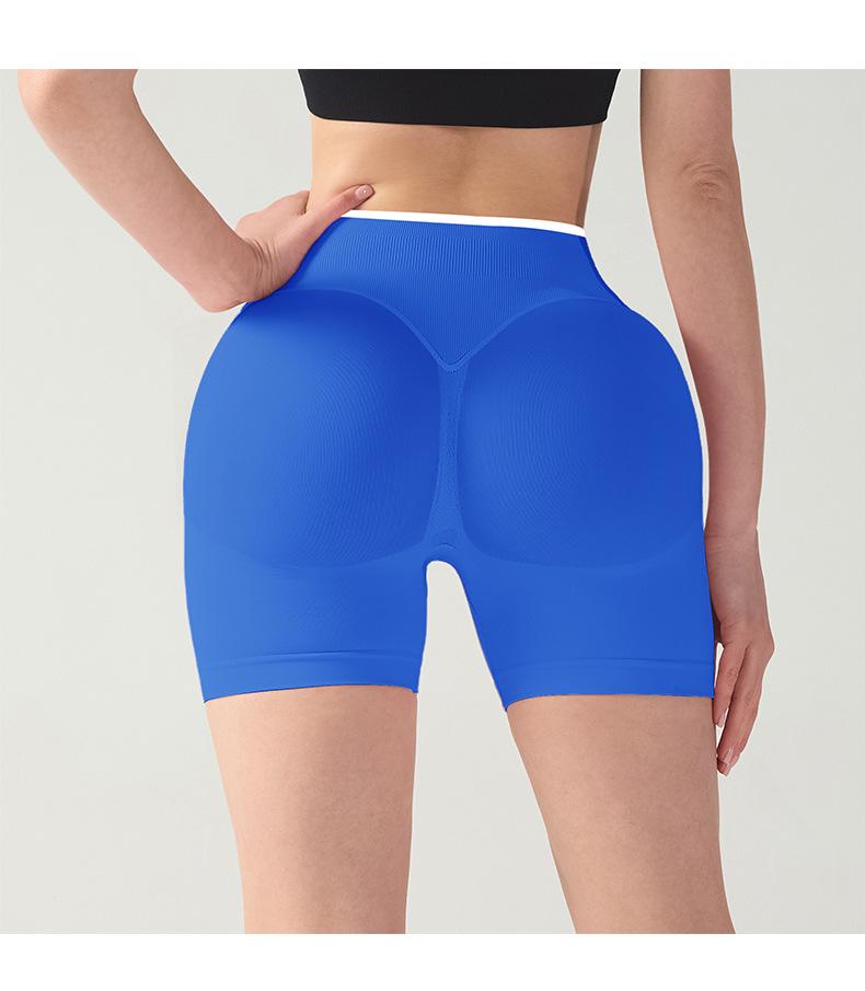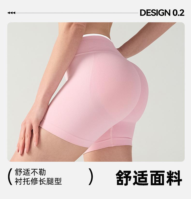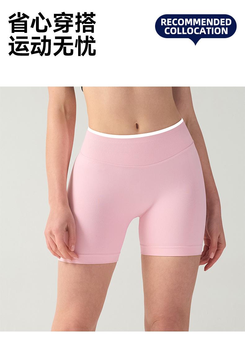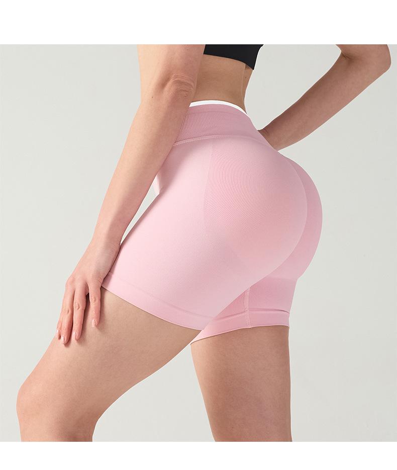 Shorts de Yoga Fitness Estilo Bloque de Color Europeo y Americano Cintura Alta Ajustados Levanta Glúteos Sin Línea Embarazosa Transpirables para Entrenamiento Deportivo