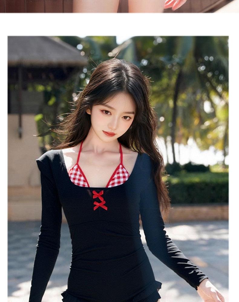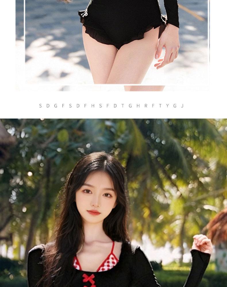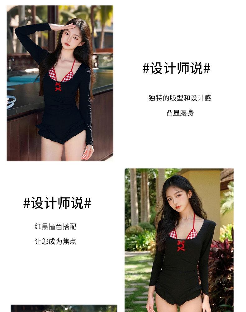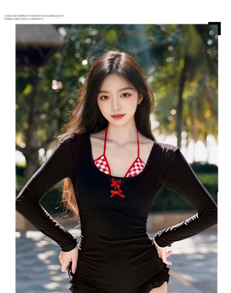 Traje de Baño Mujer 2025 Verano Falso Dos Piezas Manga Larga Estilo Deseo Puro Conservador Protección Solar Cubre Traje Adelgazante Traje de Baño para Aguas Termales
