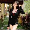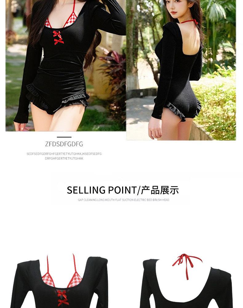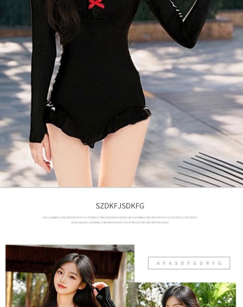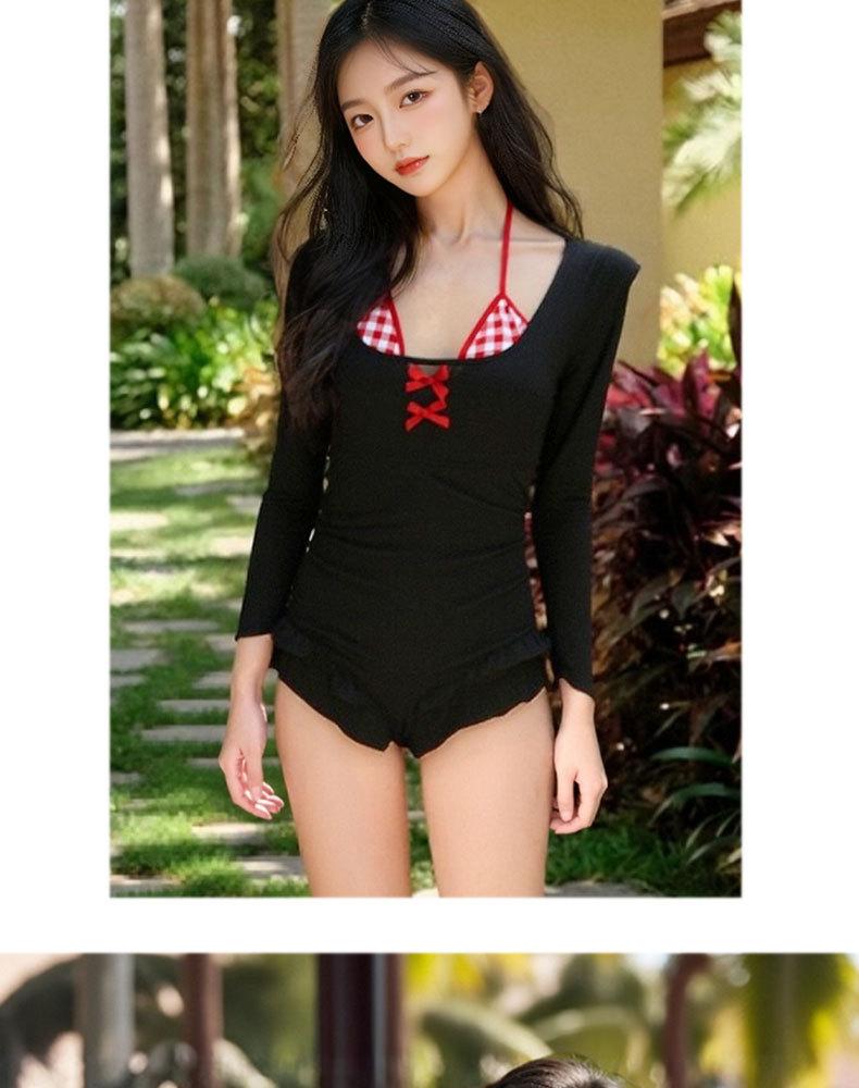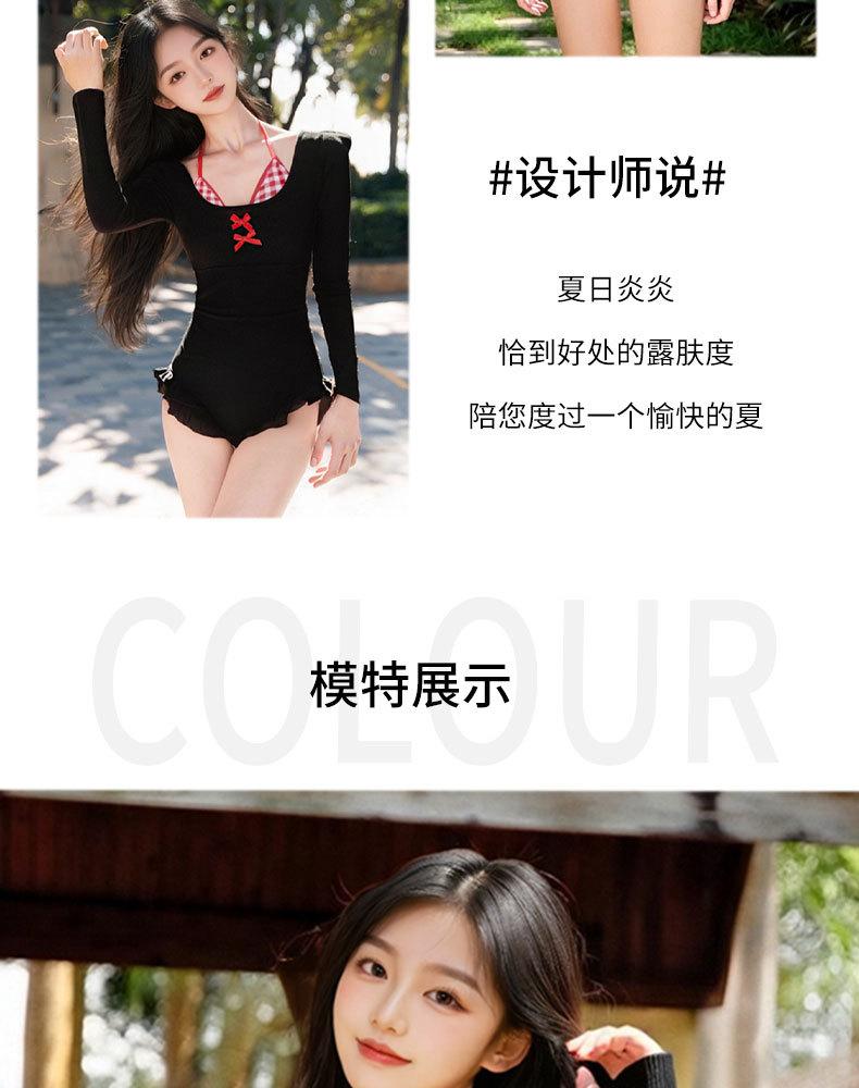 Traje de Baño Mujer 2025 Verano Falso Dos Piezas Manga Larga Estilo Deseo Puro Conservador Protección Solar Cubre Traje Adelgazante Traje de Baño para Aguas Termales