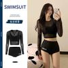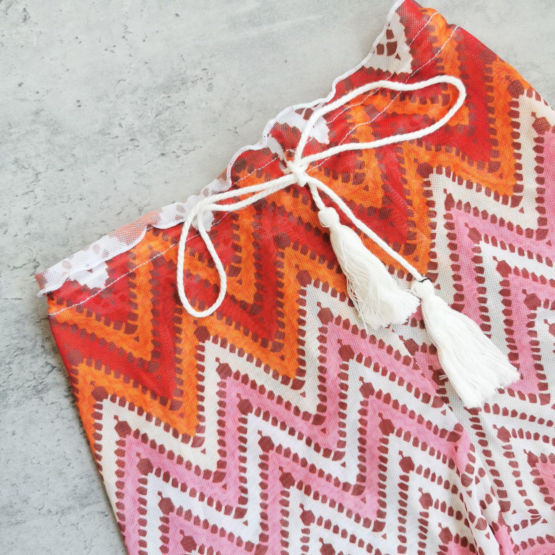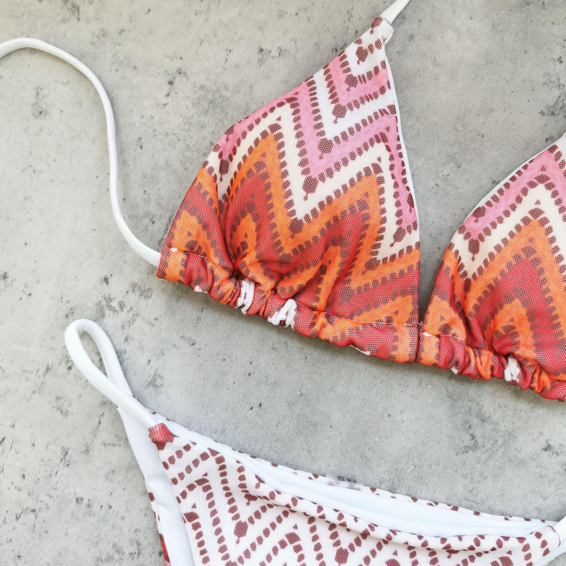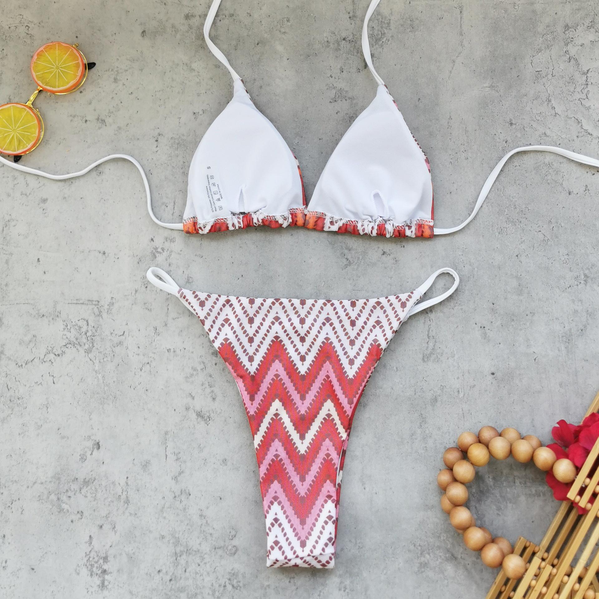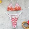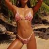 2025 Nuevo Bikini Sexy de Tres Piezas con Estampado de Rayas y Espalda Descubierta, Conjunto de Pantalones Largos de Malla, Traje de Baño Dividido para Mujer