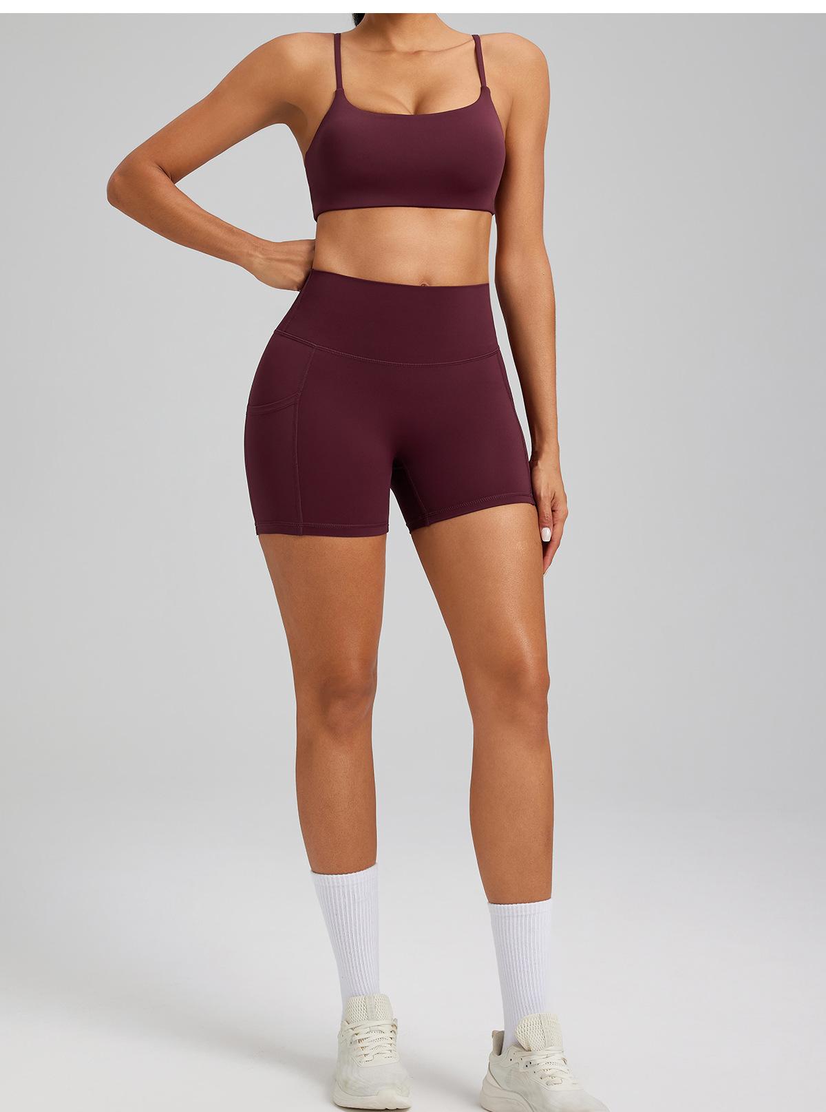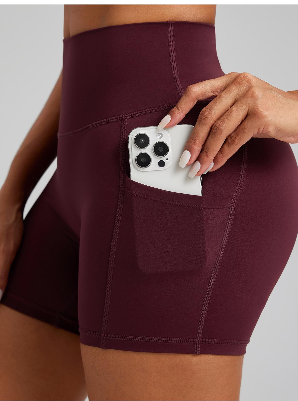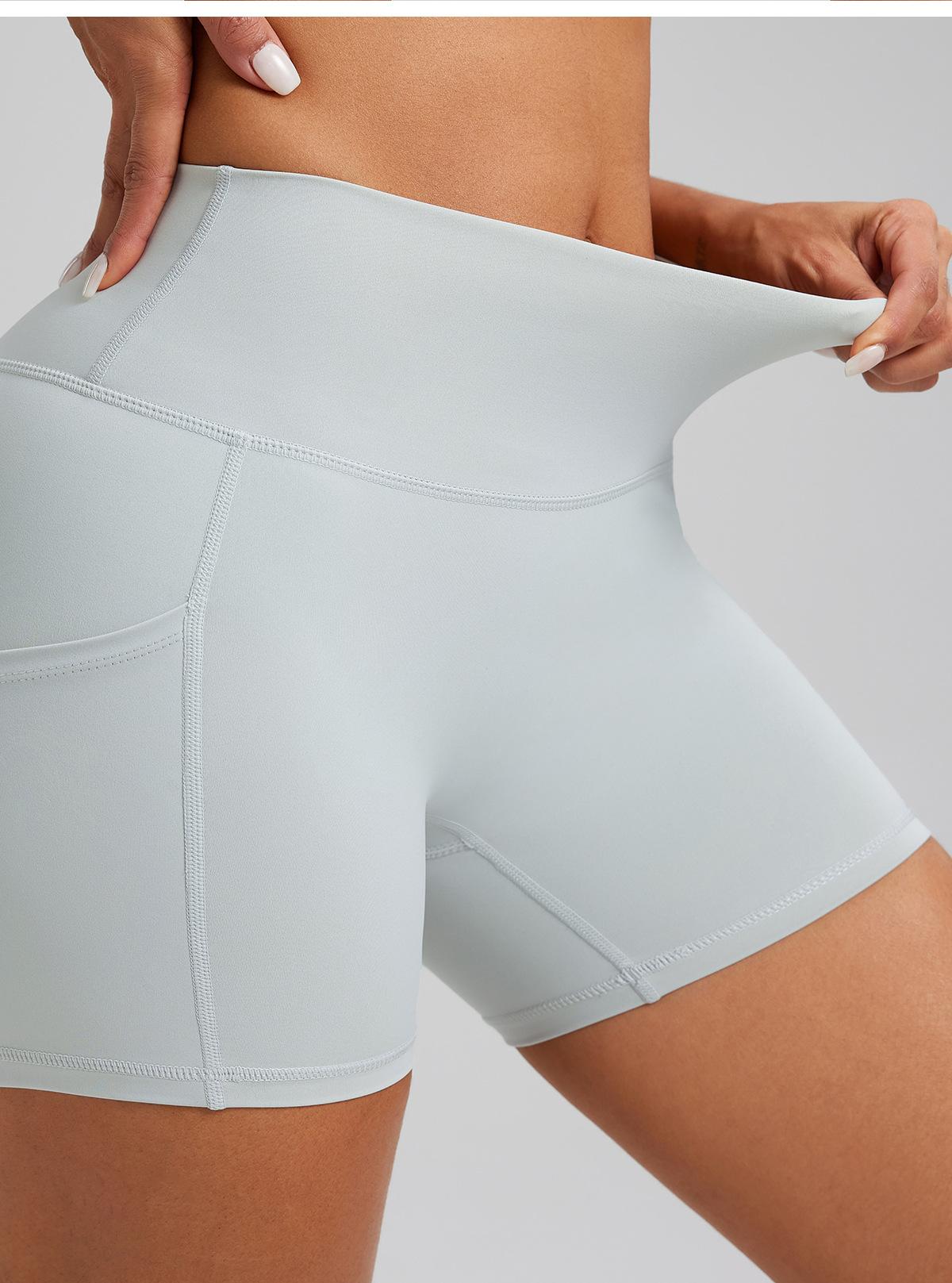 Pantalones de Yoga Ajustados Oasis Europeos y Americanos Nuevos Cintura Alta Doble Bolsillo Shorts Deportivos para Mujer Línea Sin Vergüenza Cadera Pantalones de Fitness