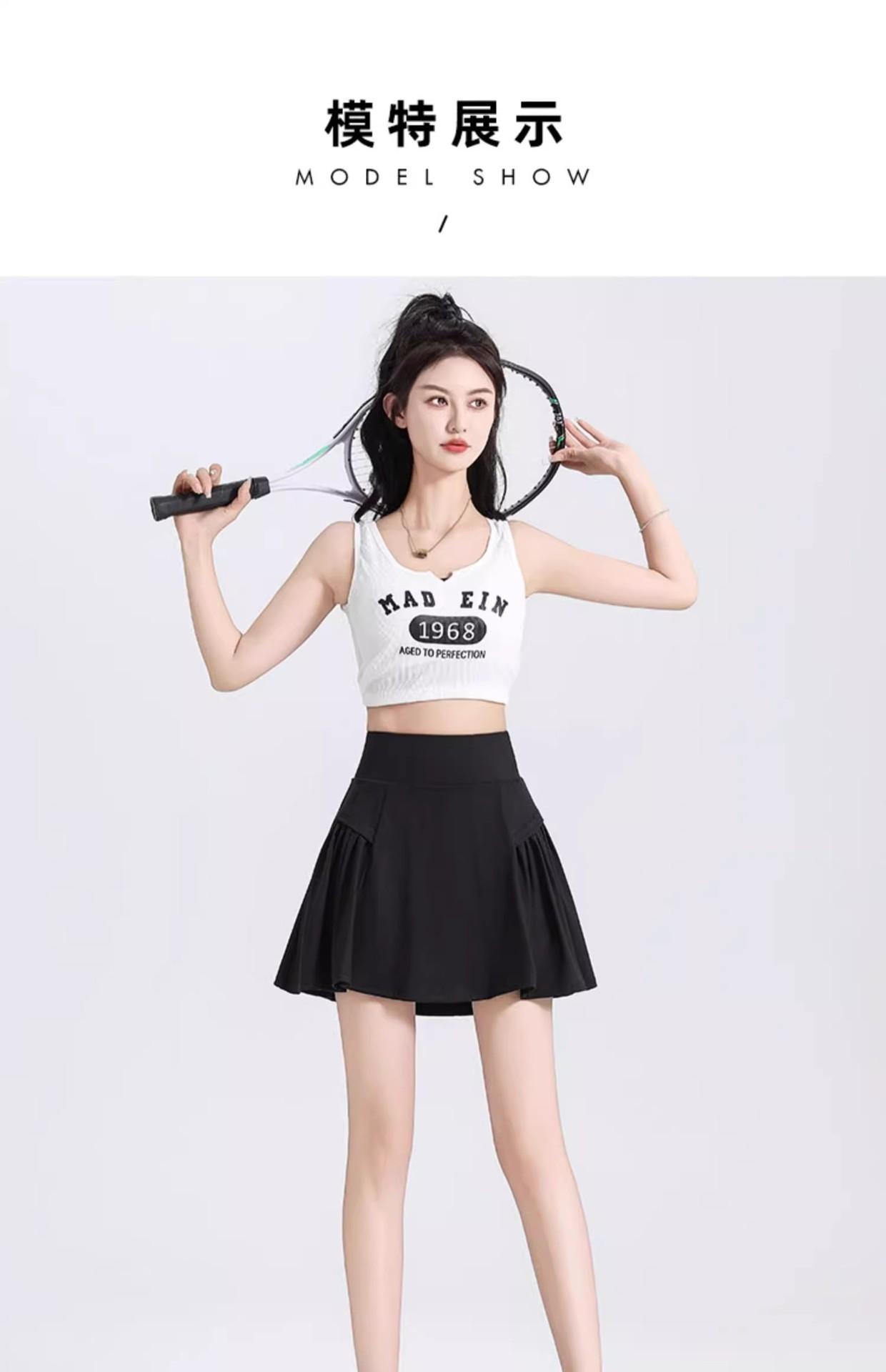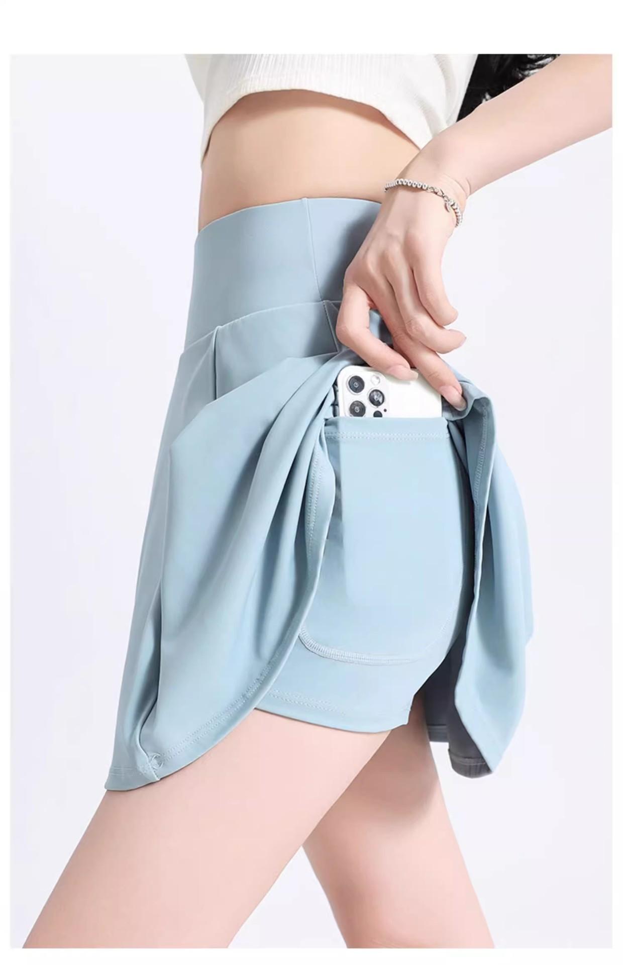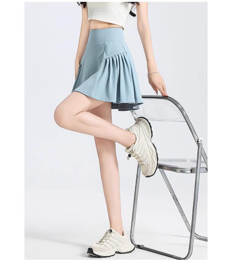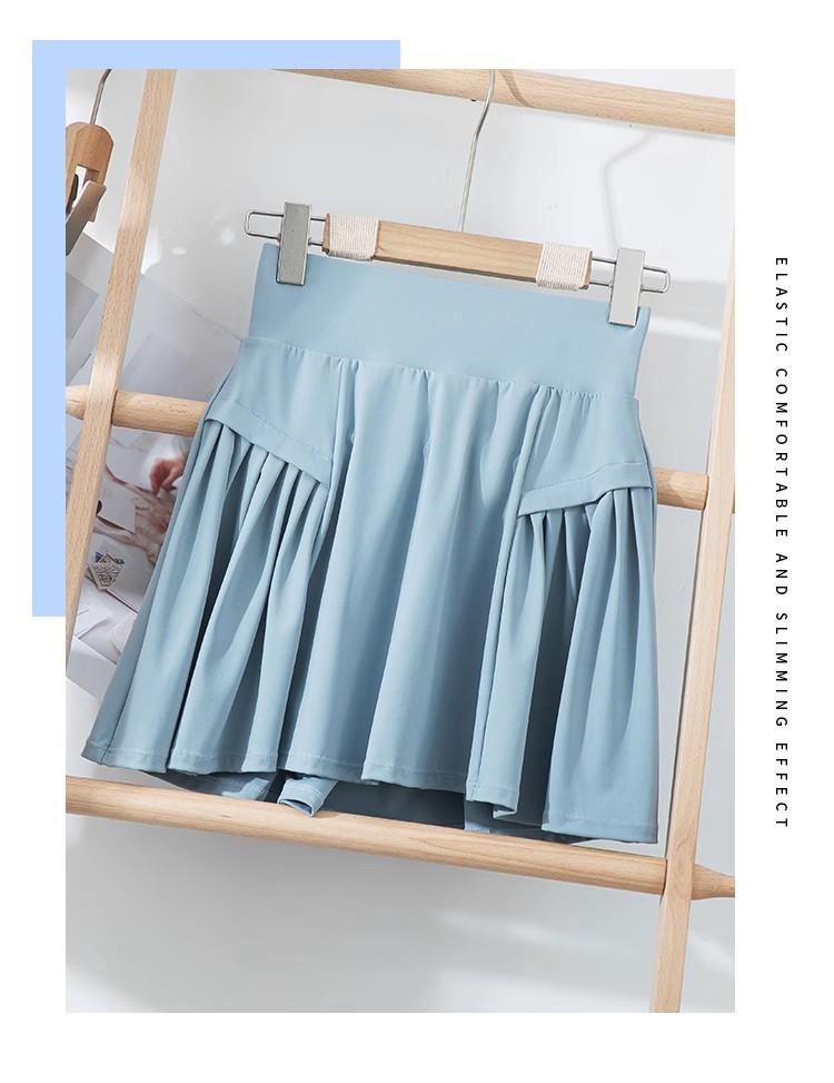 Falda deportiva corta falsa de dos piezas anti-exposición para mujer, verano, delgada, cintura alta, ajustada, para correr al aire libre, tres puntos, fitness, yoga