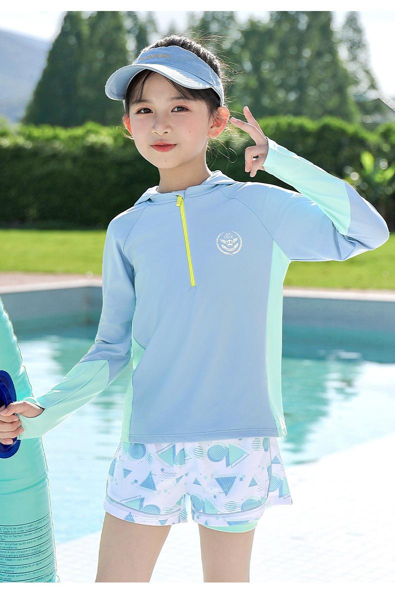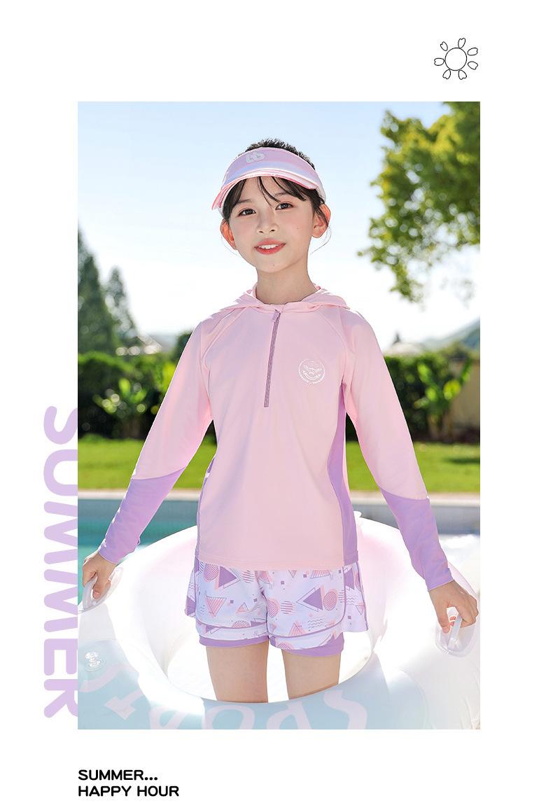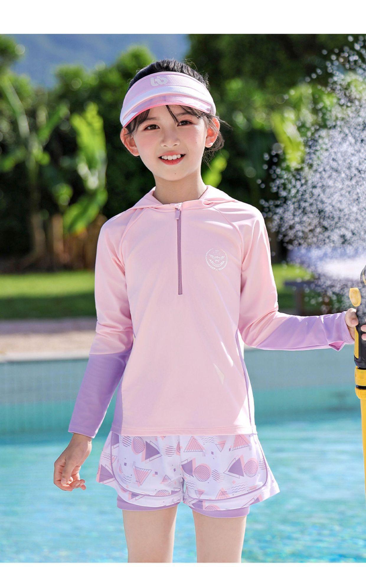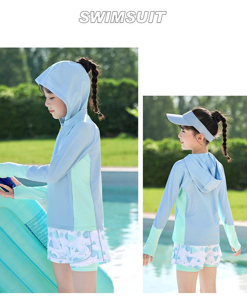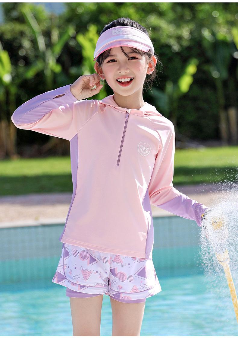 Traje de Baño para Niñas Talla Mediana y Grande Traje de Baño Dividido para Niñas 2025 Nuevo Traje Profesional de Protección Solar de Manga Larga Traje de Baño