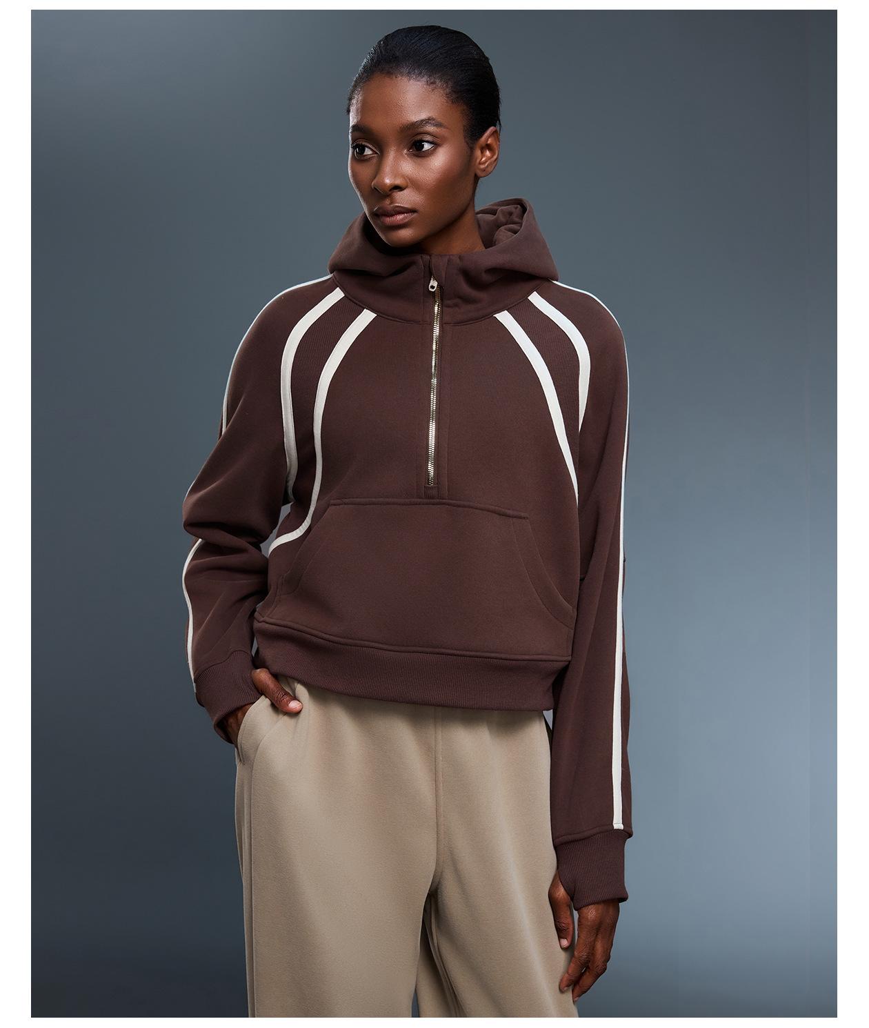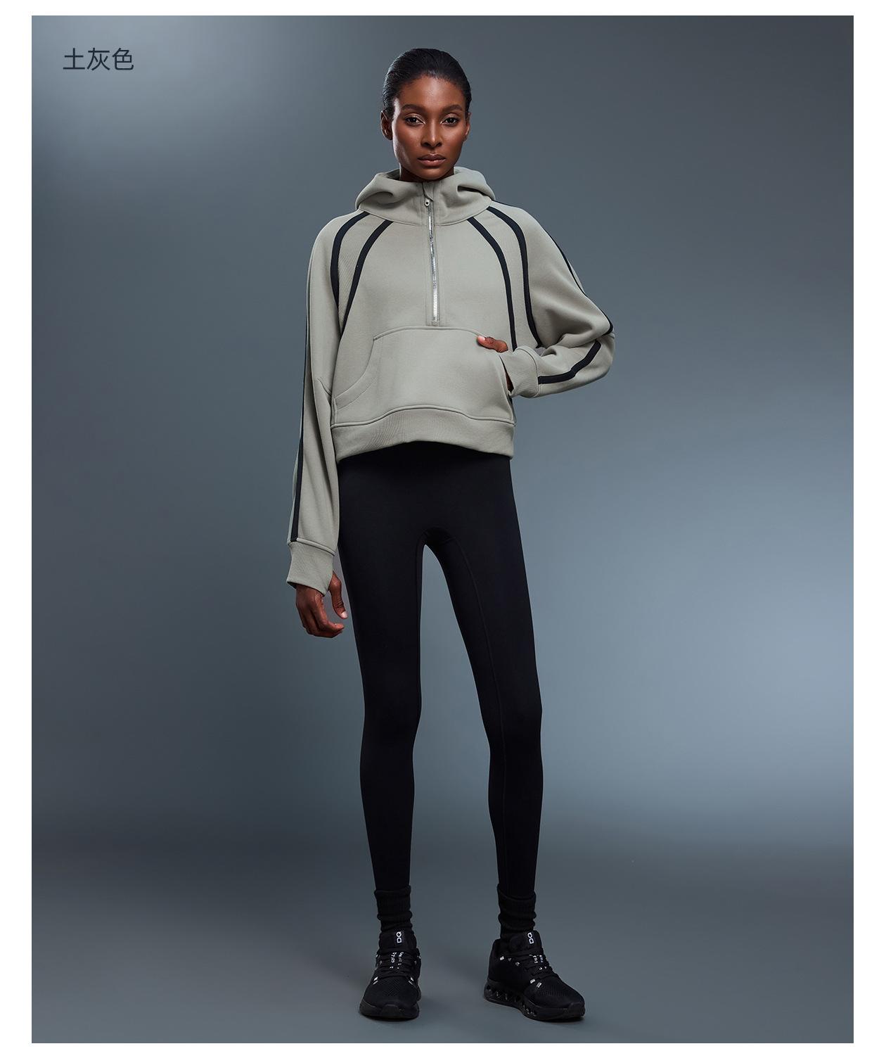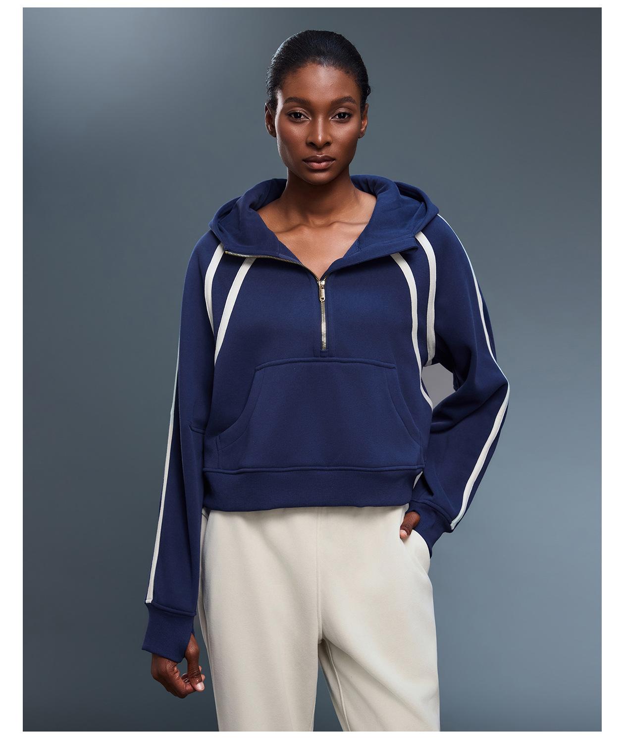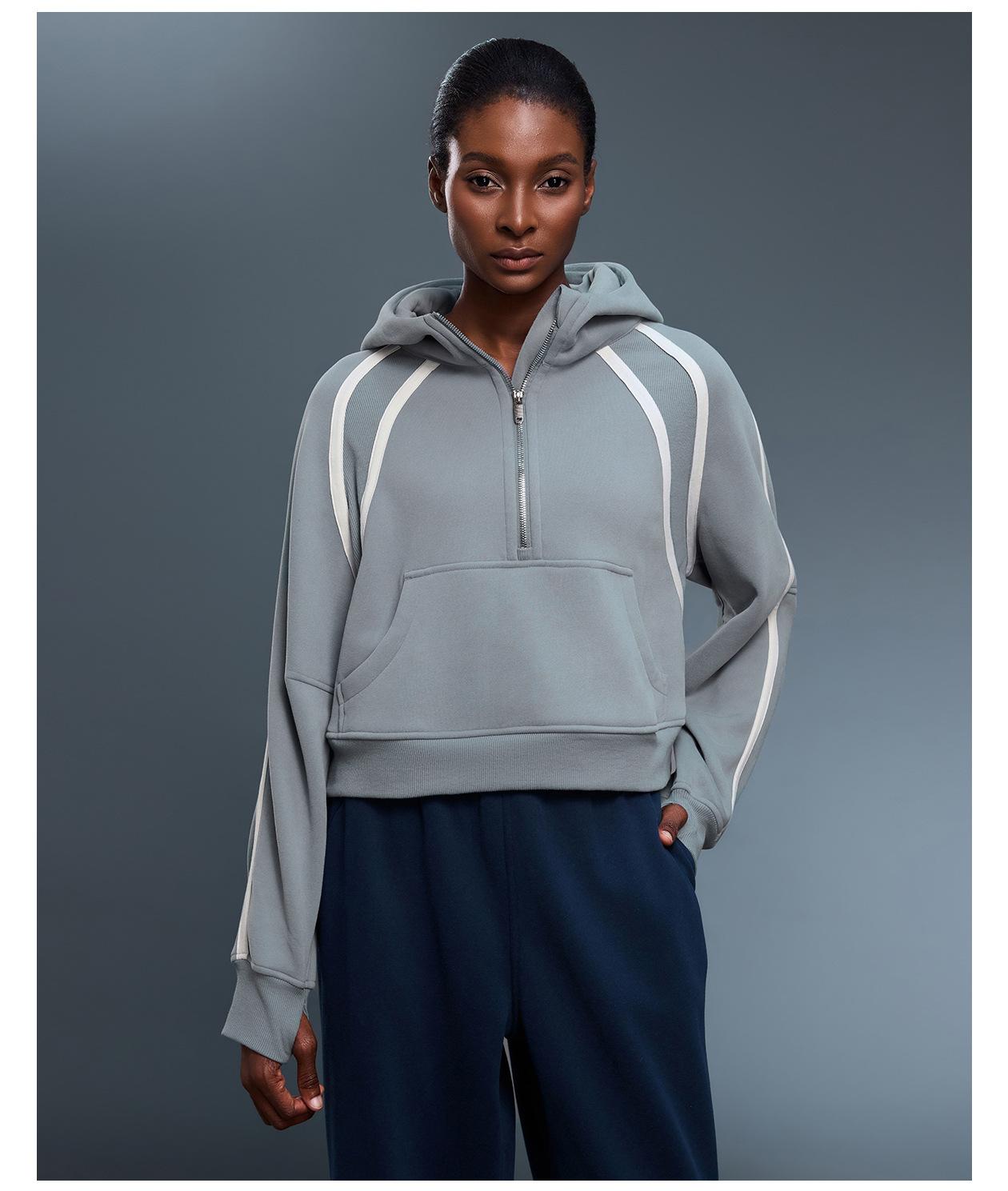 Sudadera de cuello alto con forro polar y media cremallera para mujer, otoño e invierno, cálida, deportiva, holgada, casual, versátil, con capucha D25159