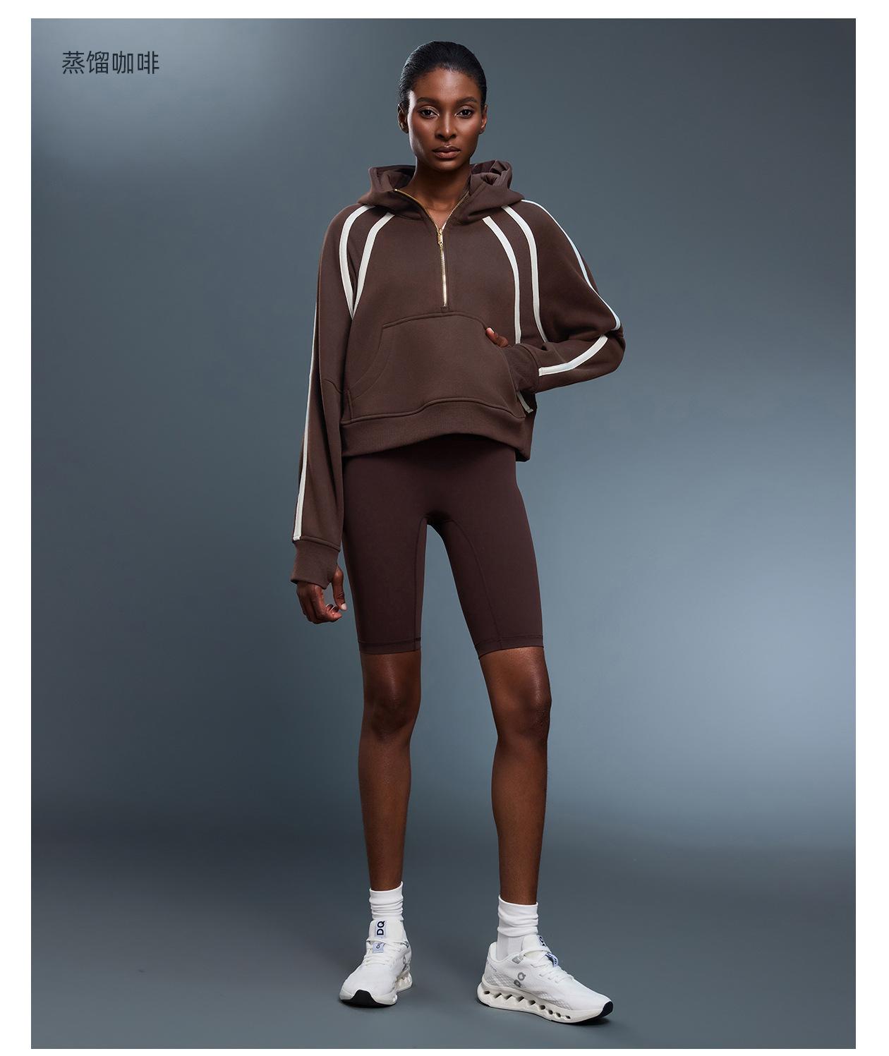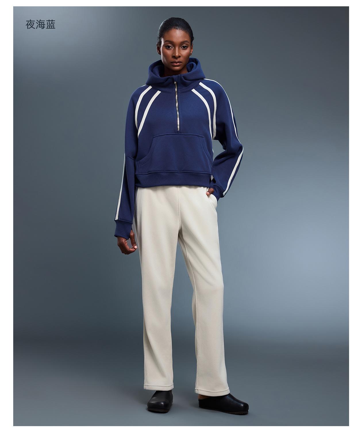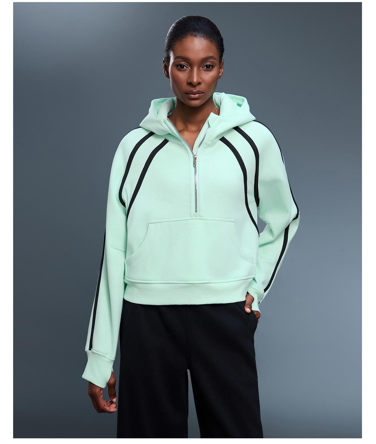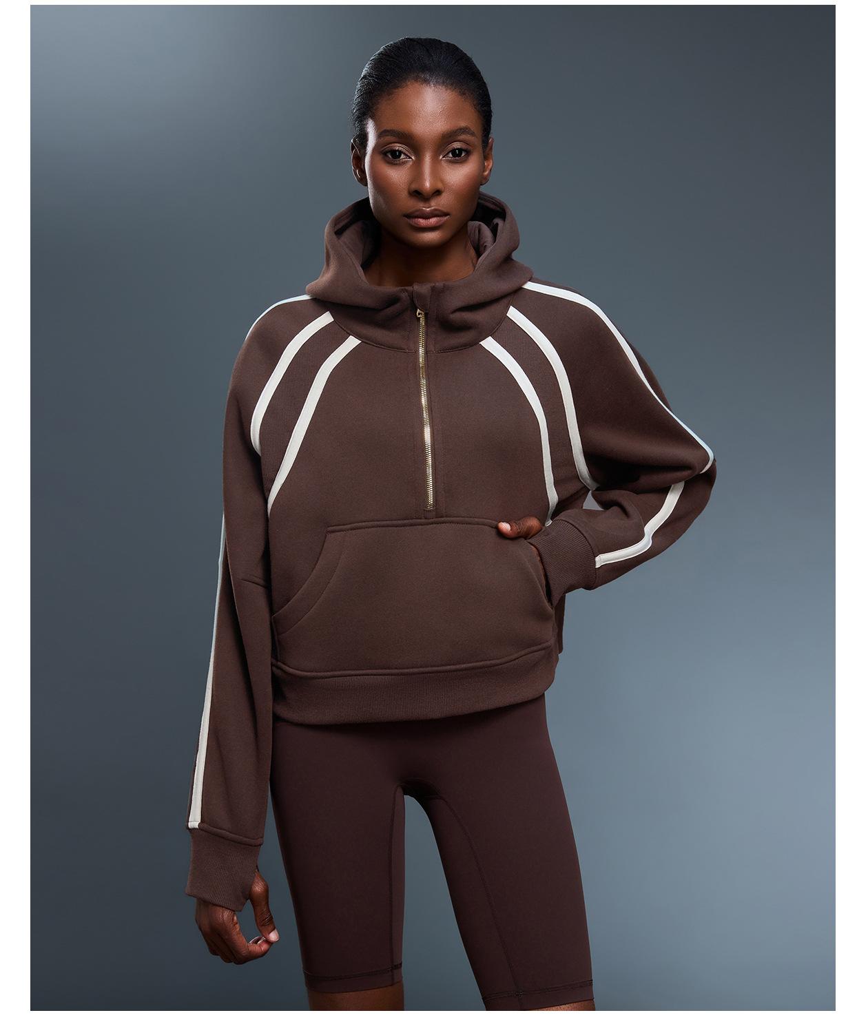 Sudadera de cuello alto con forro polar y media cremallera para mujer, otoño e invierno, cálida, deportiva, holgada, casual, versátil, con capucha D25159