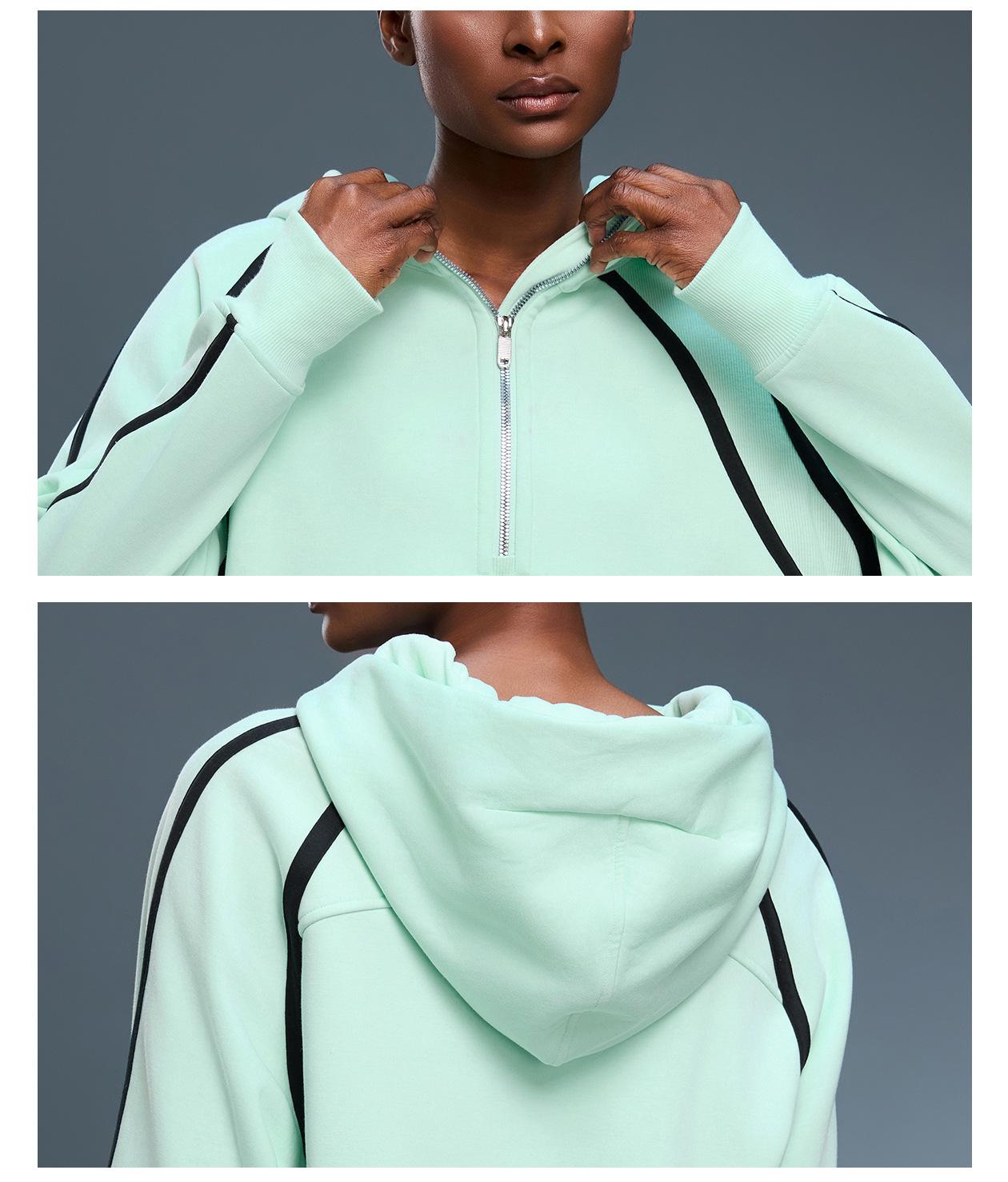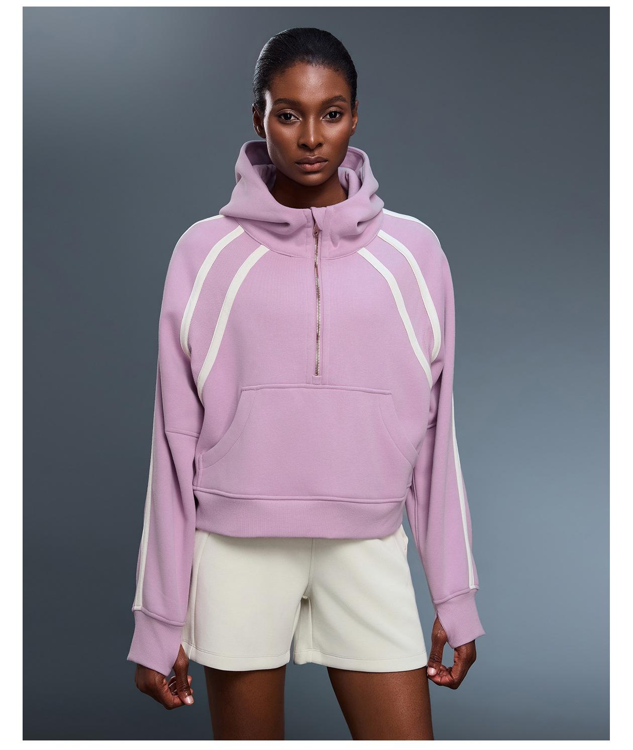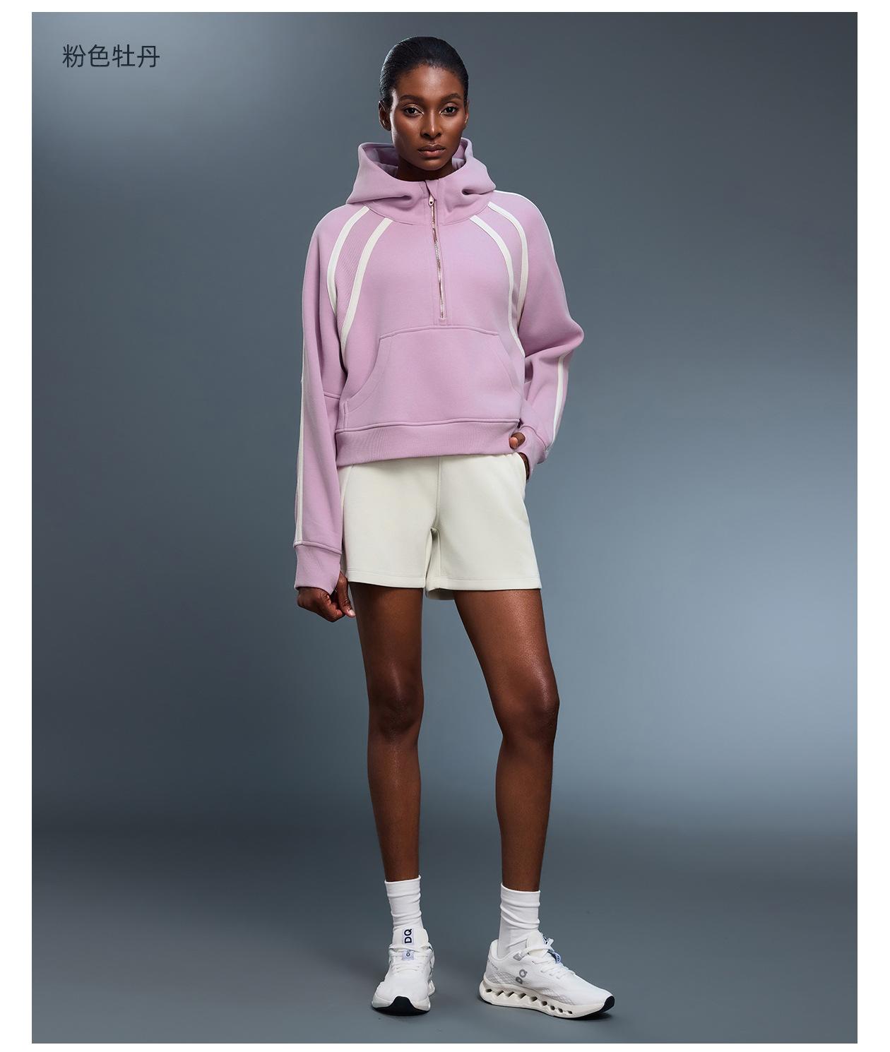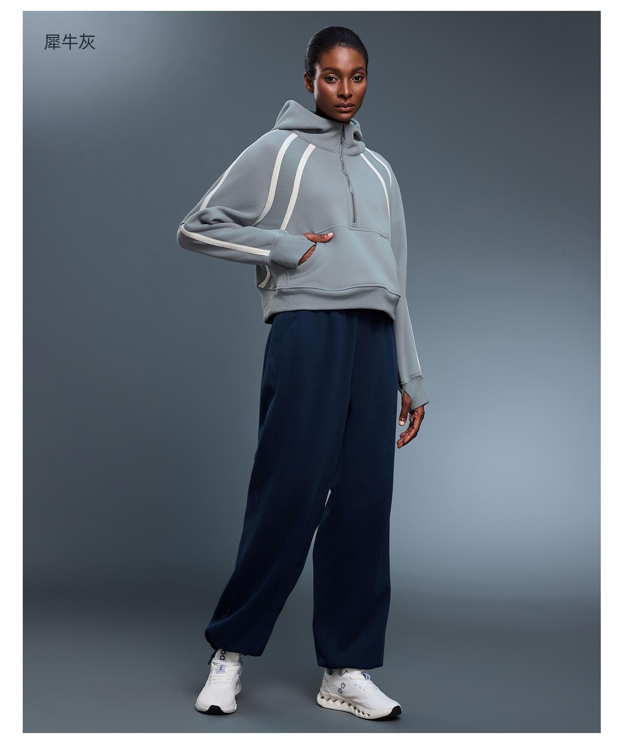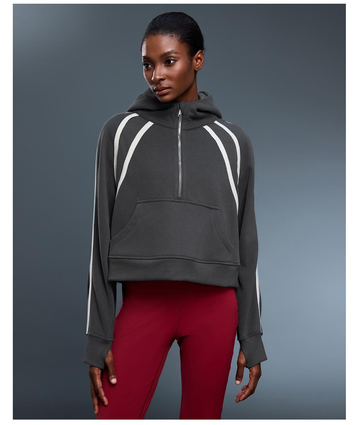 Sudadera de cuello alto con forro polar y media cremallera para mujer, otoño e invierno, cálida, deportiva, holgada, casual, versátil, con capucha D25159
