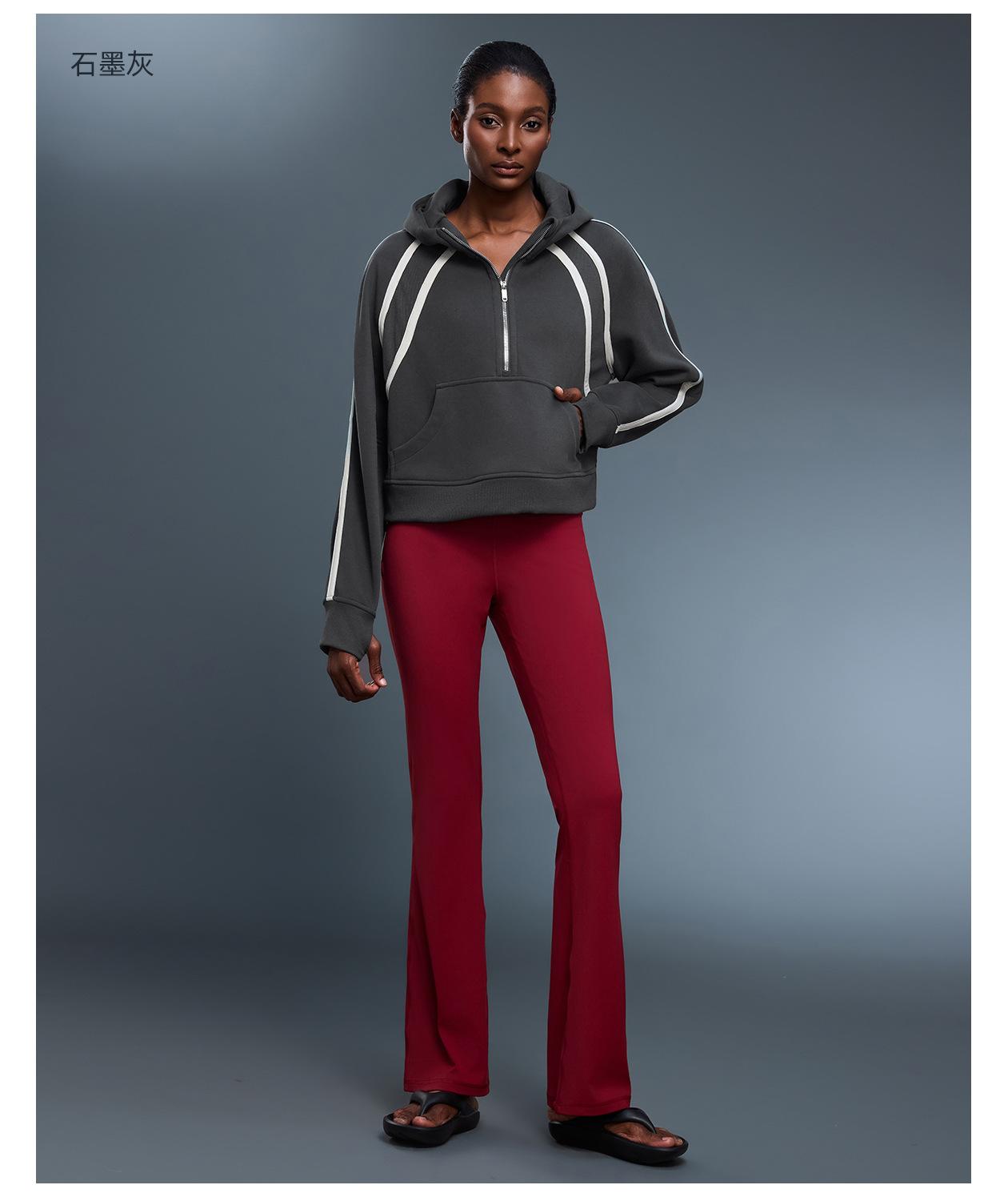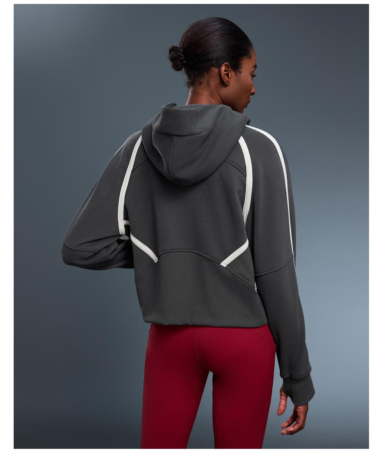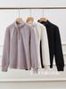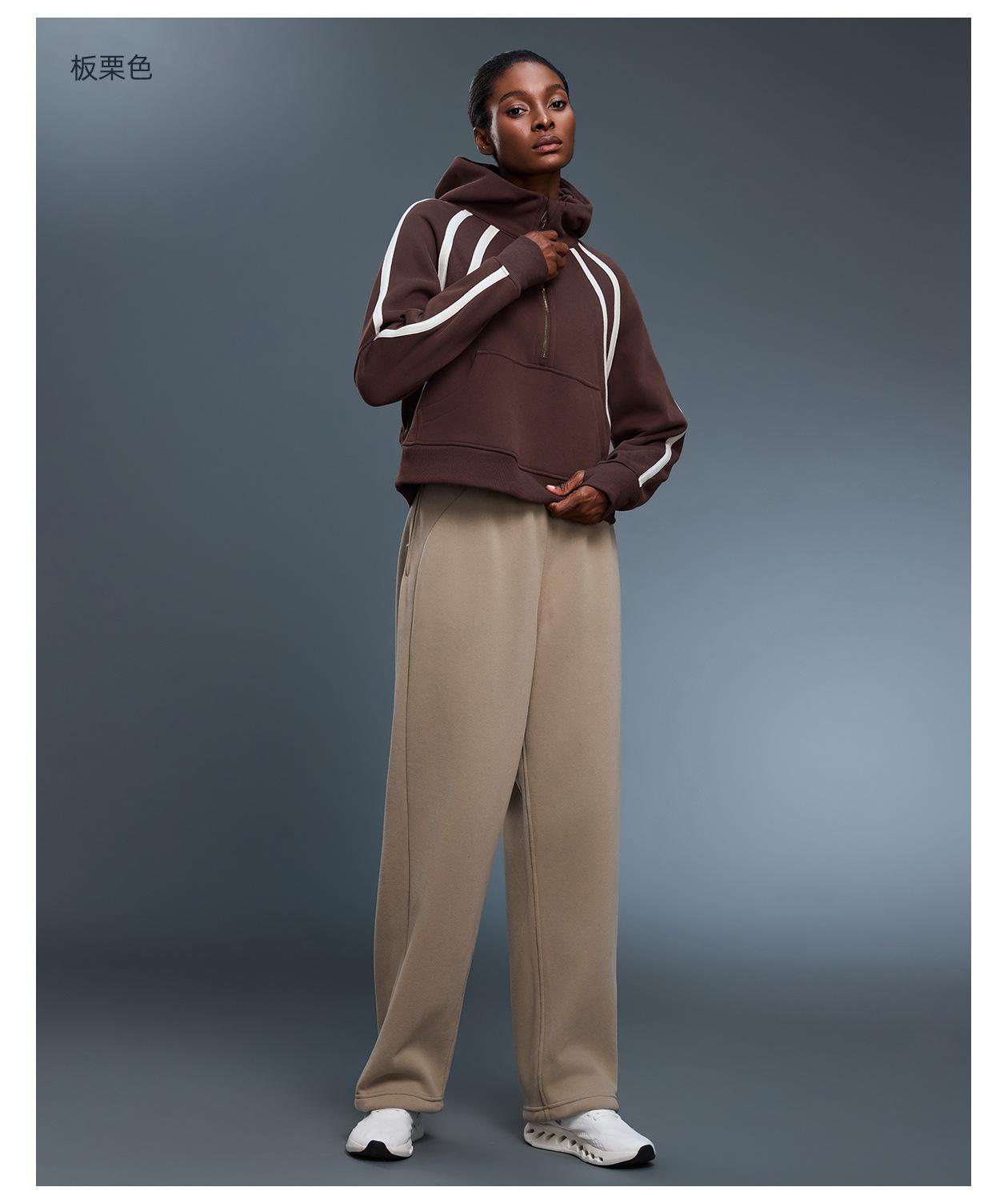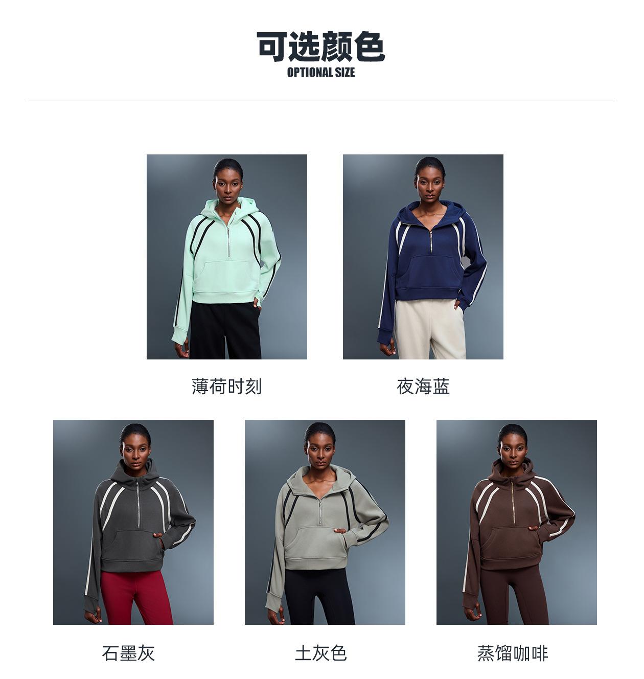 Sudadera de cuello alto con forro polar y media cremallera para mujer, otoño e invierno, cálida, deportiva, holgada, casual, versátil, con capucha D25159