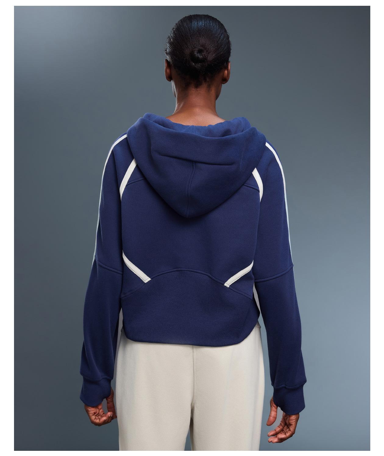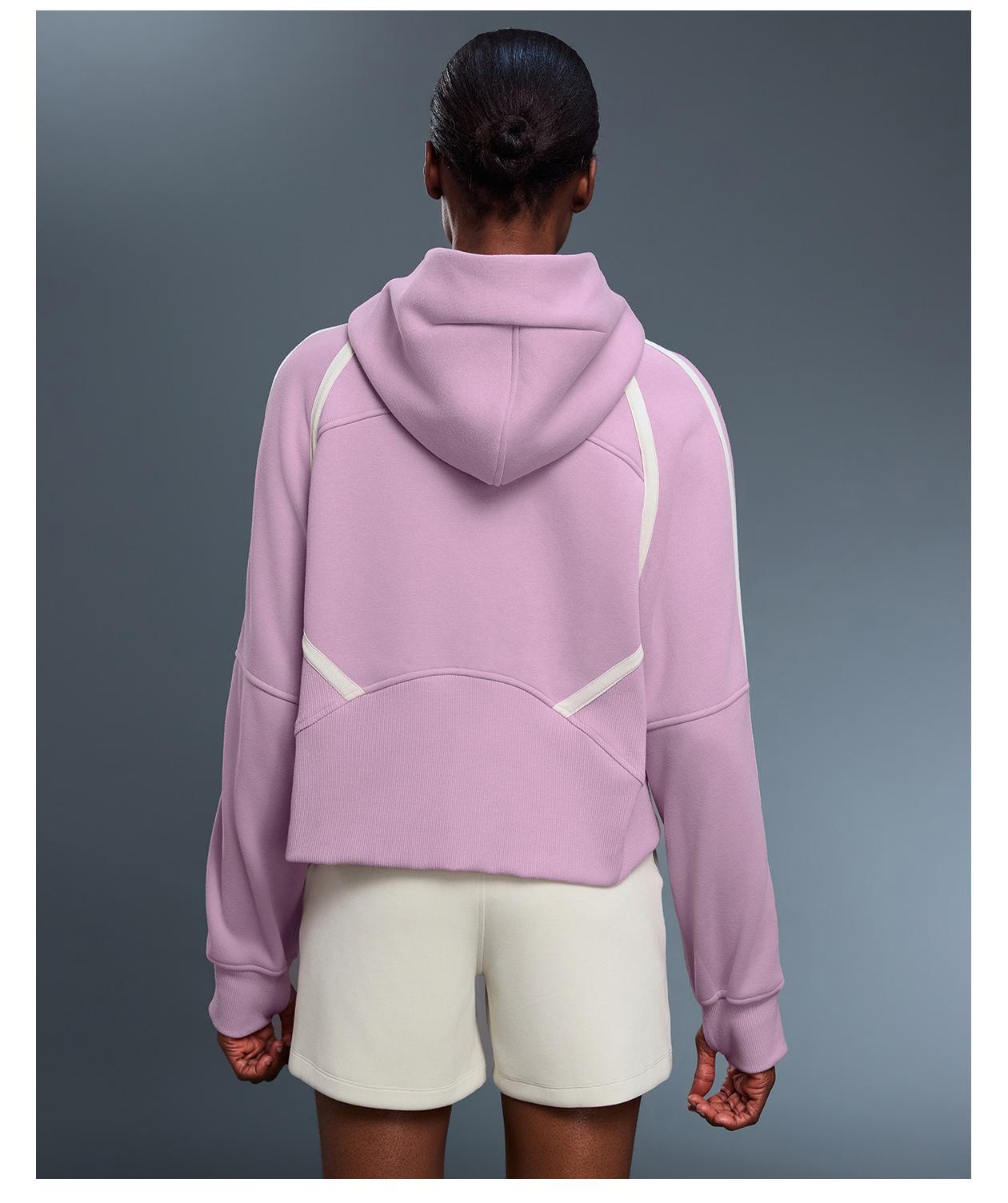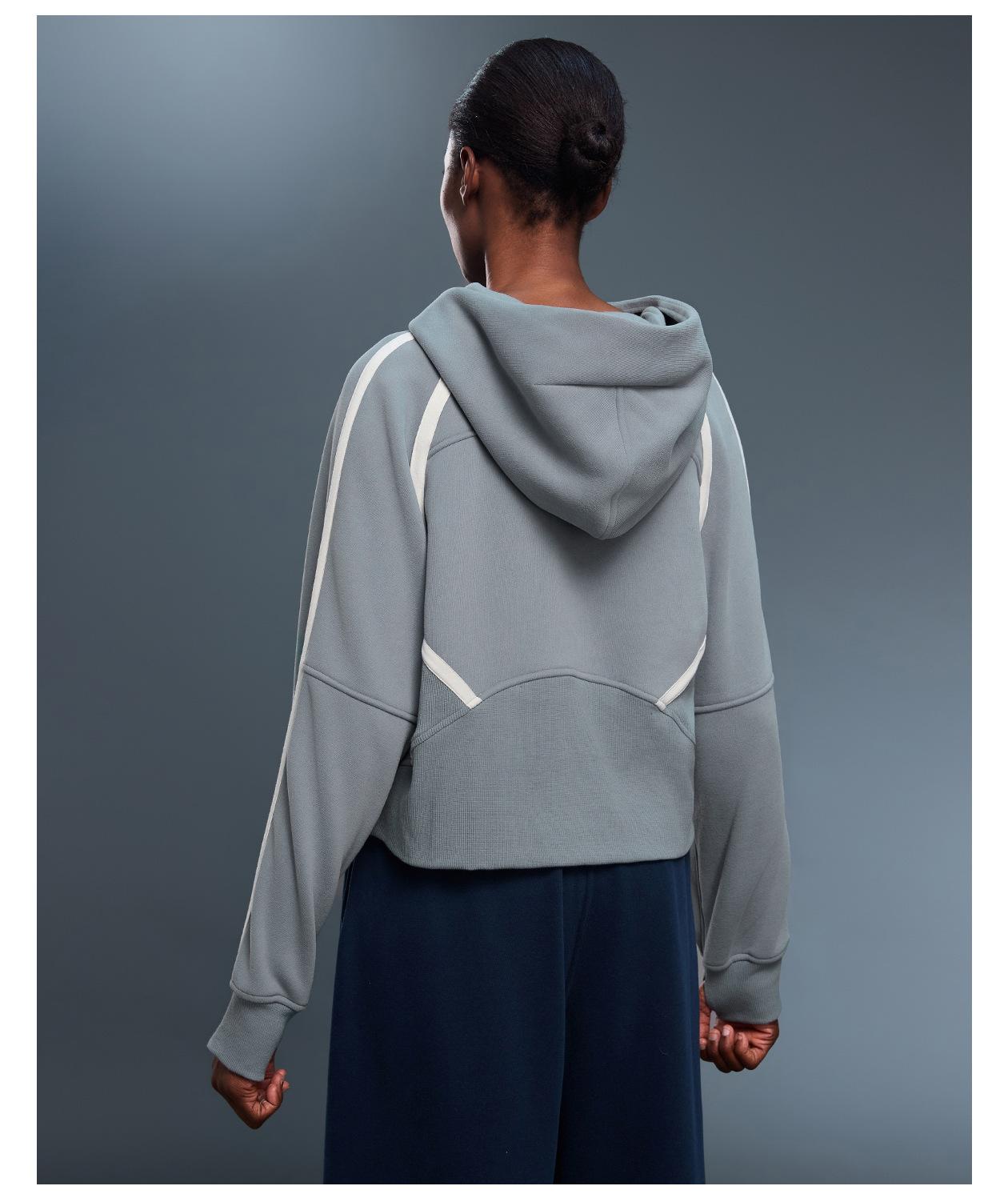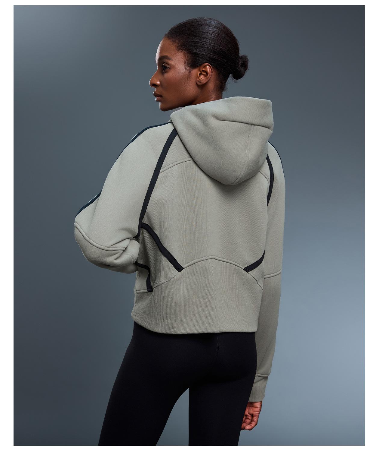 Sudadera de cuello alto con forro polar y media cremallera para mujer, otoño e invierno, cálida, deportiva, holgada, casual, versátil, con capucha D25159