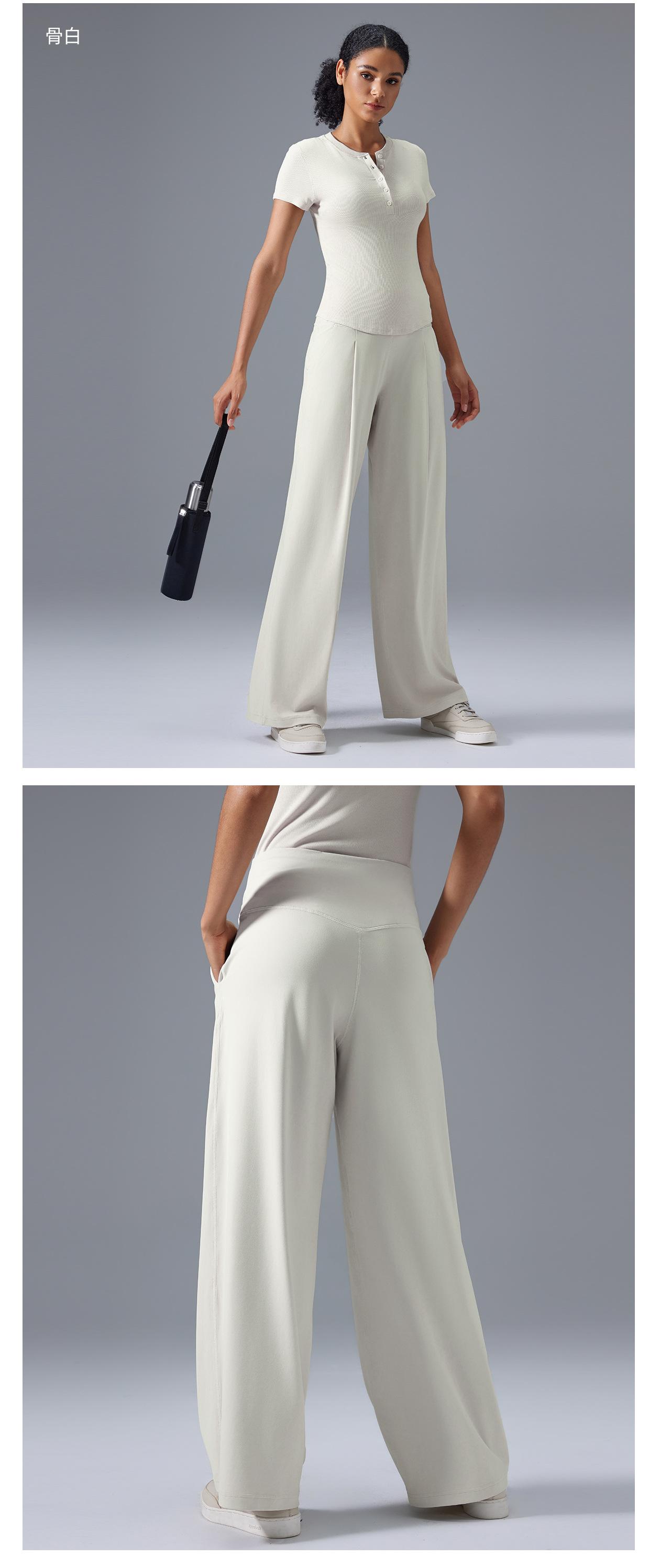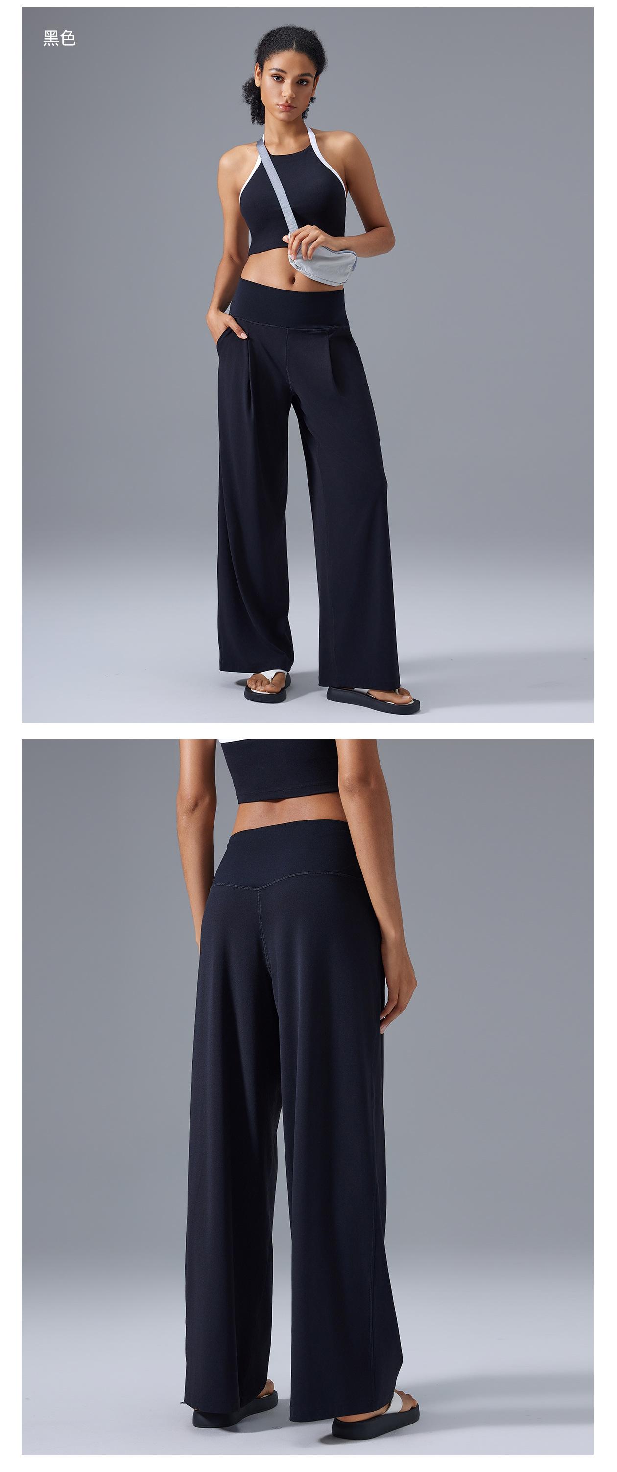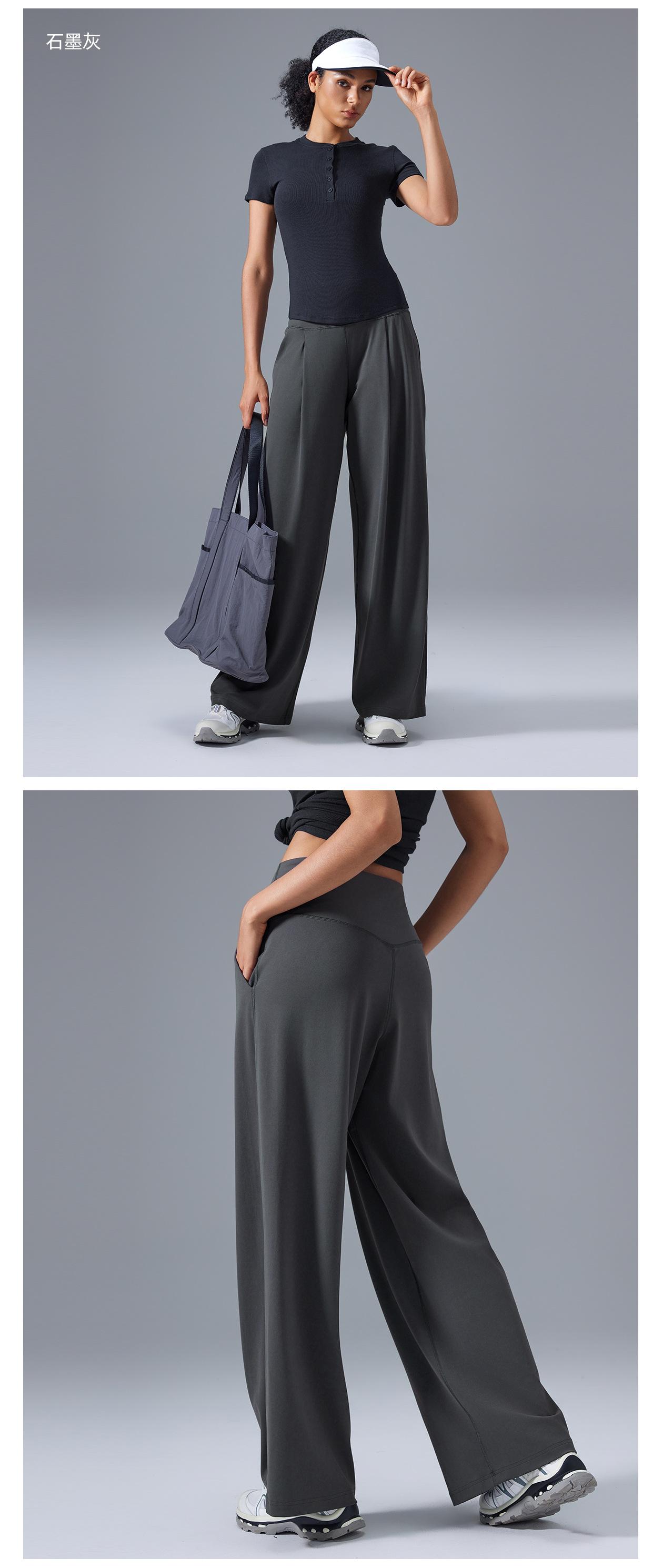 Pantalones casuales holgados versátiles de pierna ancha de cintura alta para correr yoga de secado rápido transpirables deportivos de fitness para mujer D25101