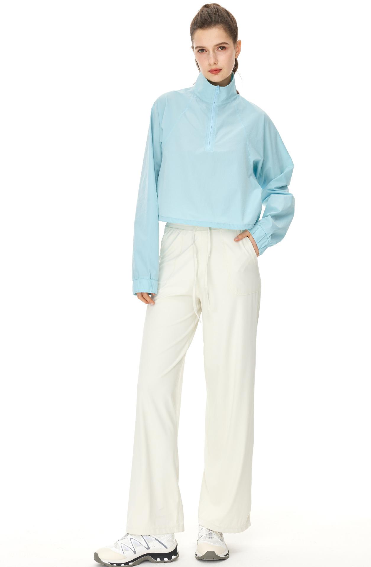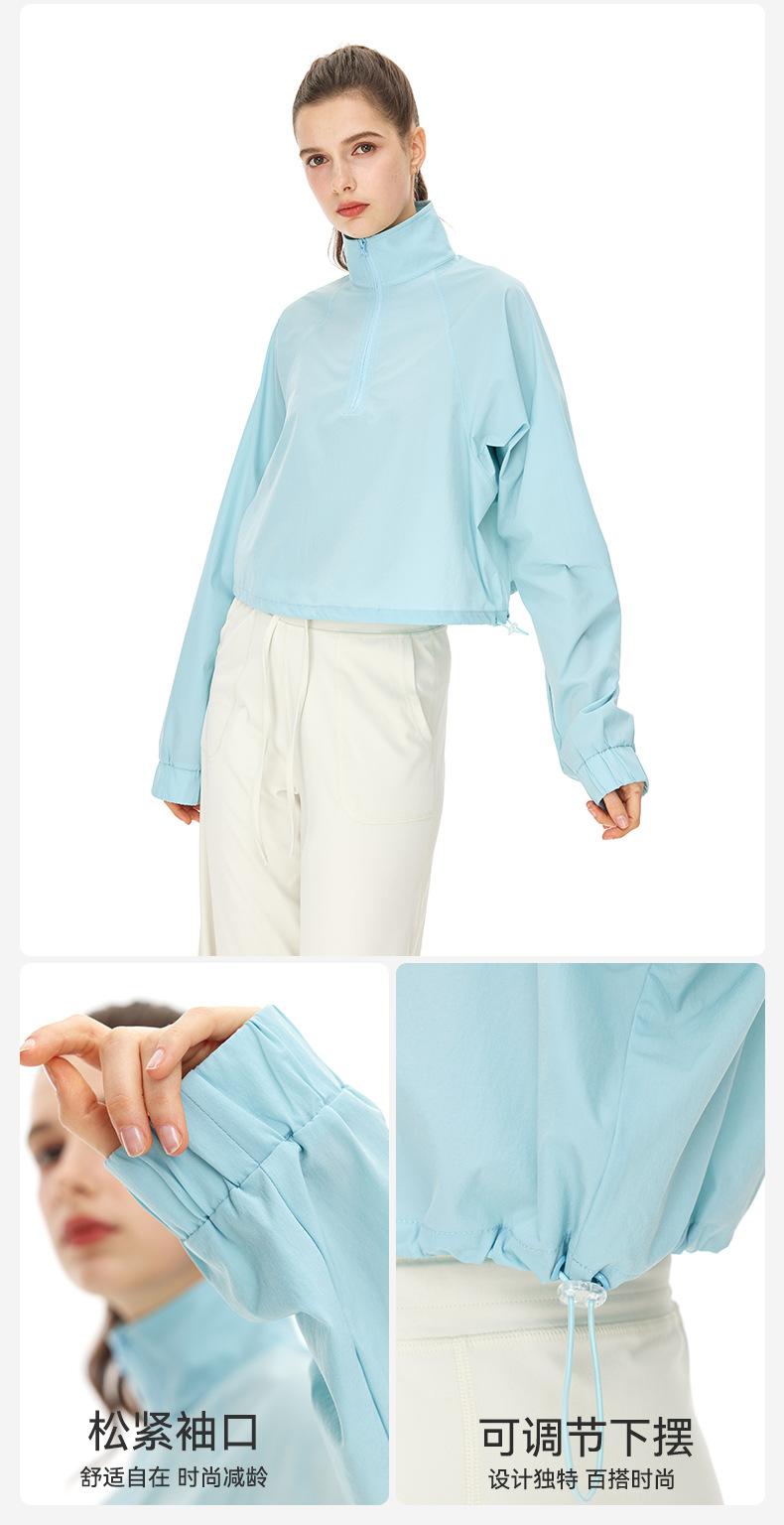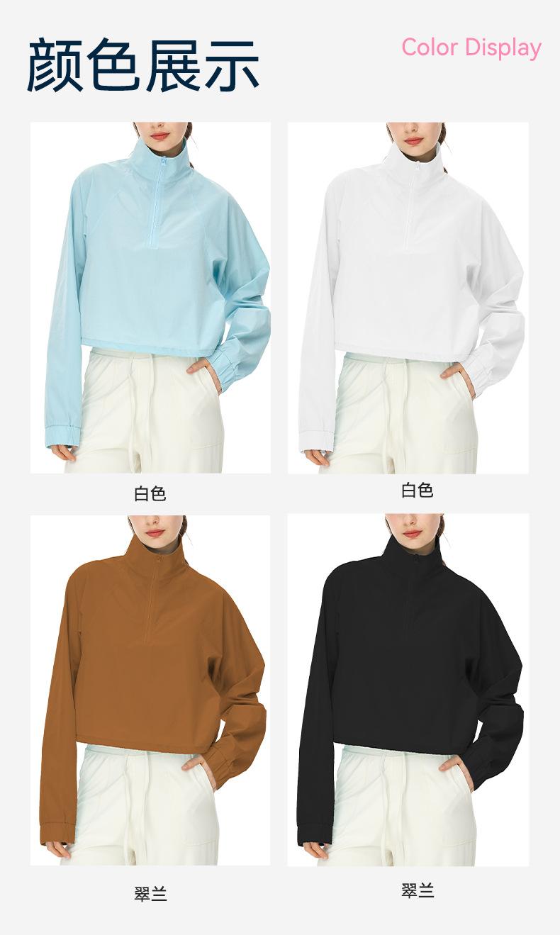 Camiseta de Verano Fresca de Manga Larga para Protección Solar para Mujer, Chaqueta Deportiva Casual Holgada con Cierre, Top Deportivo para Correr, Ropa de Fitness para Mujer
