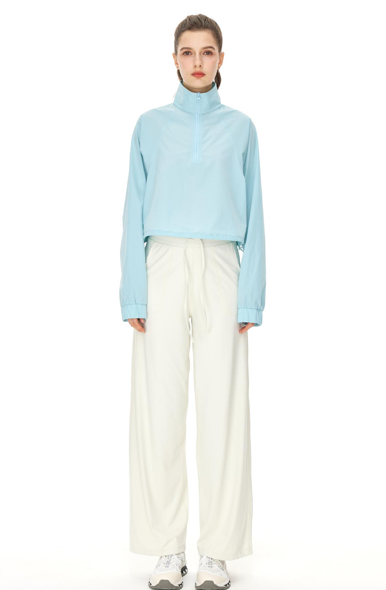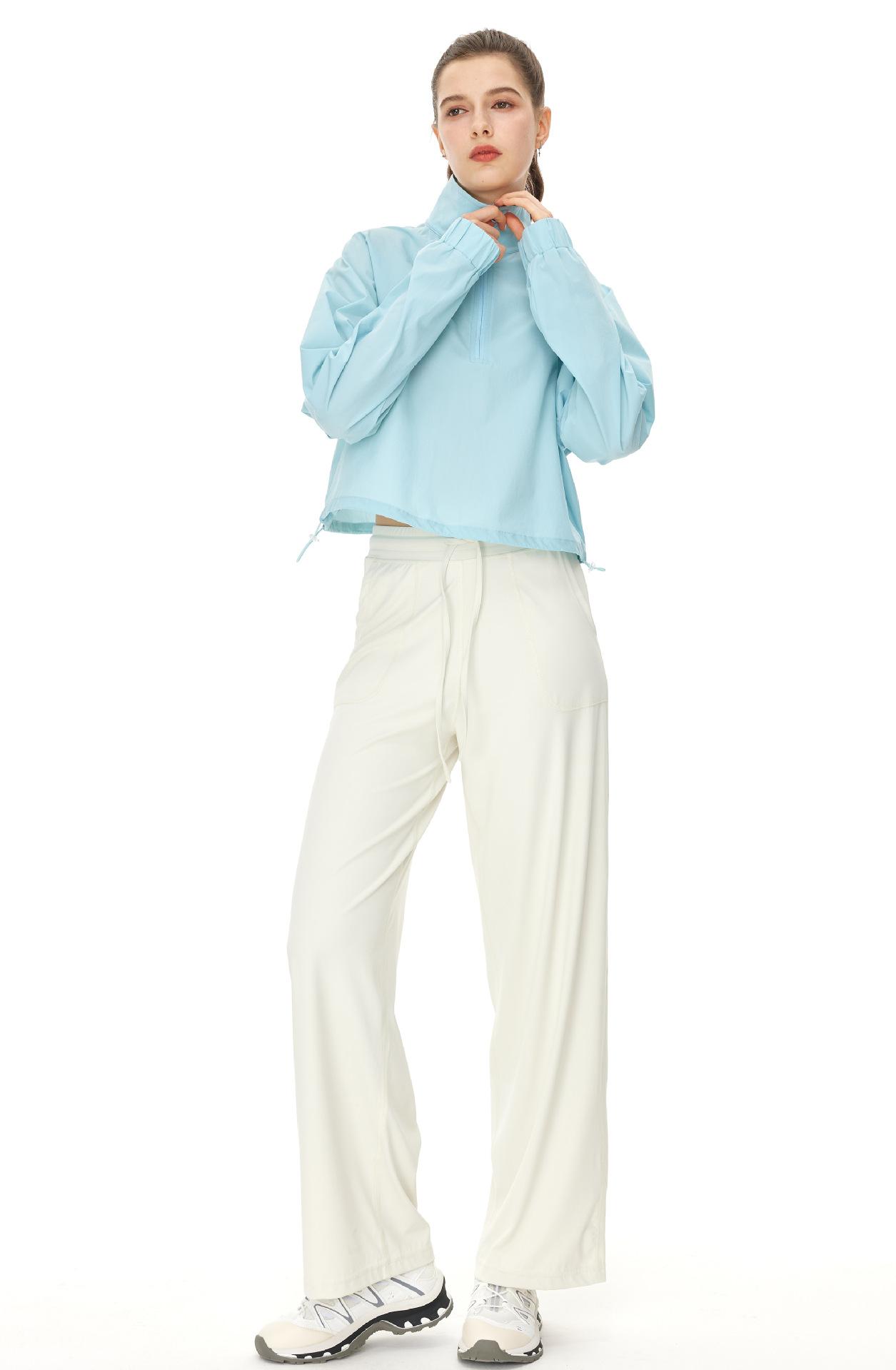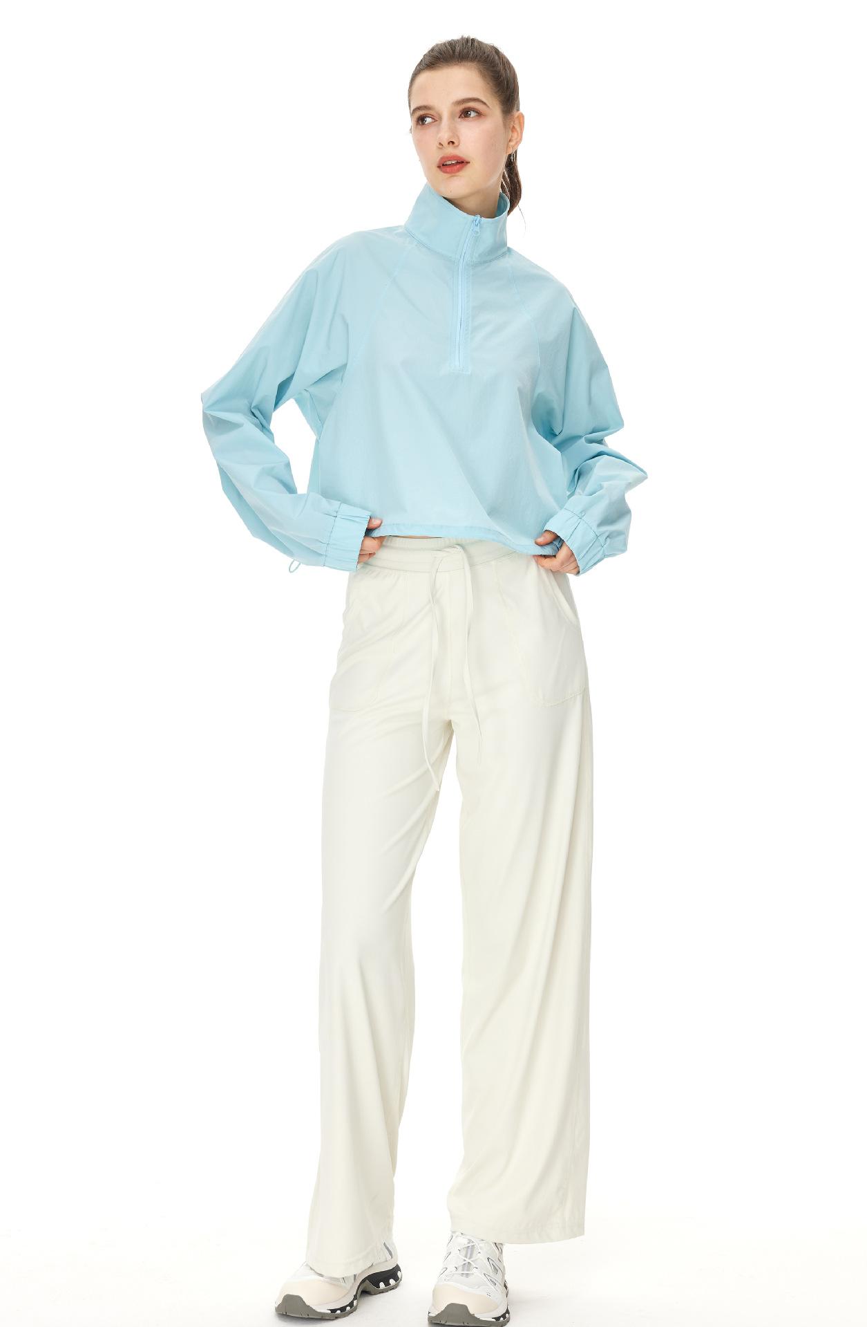 Camiseta de Verano Fresca de Manga Larga para Protección Solar para Mujer, Chaqueta Deportiva Casual Holgada con Cierre, Top Deportivo para Correr, Ropa de Fitness para Mujer