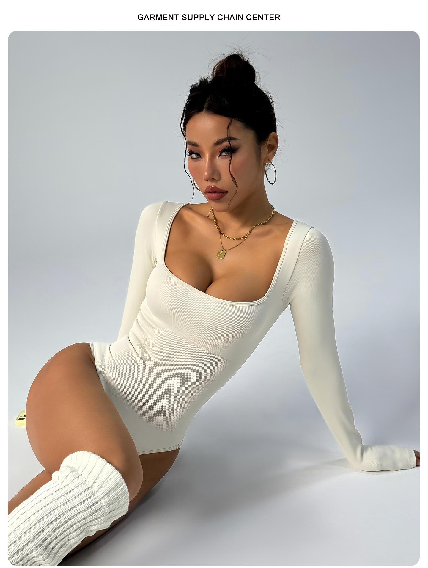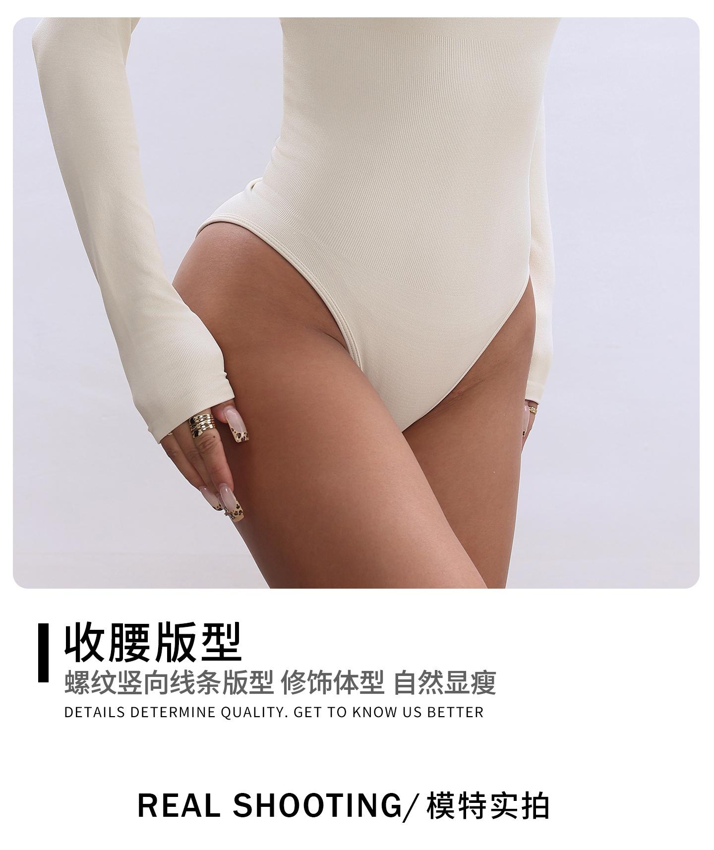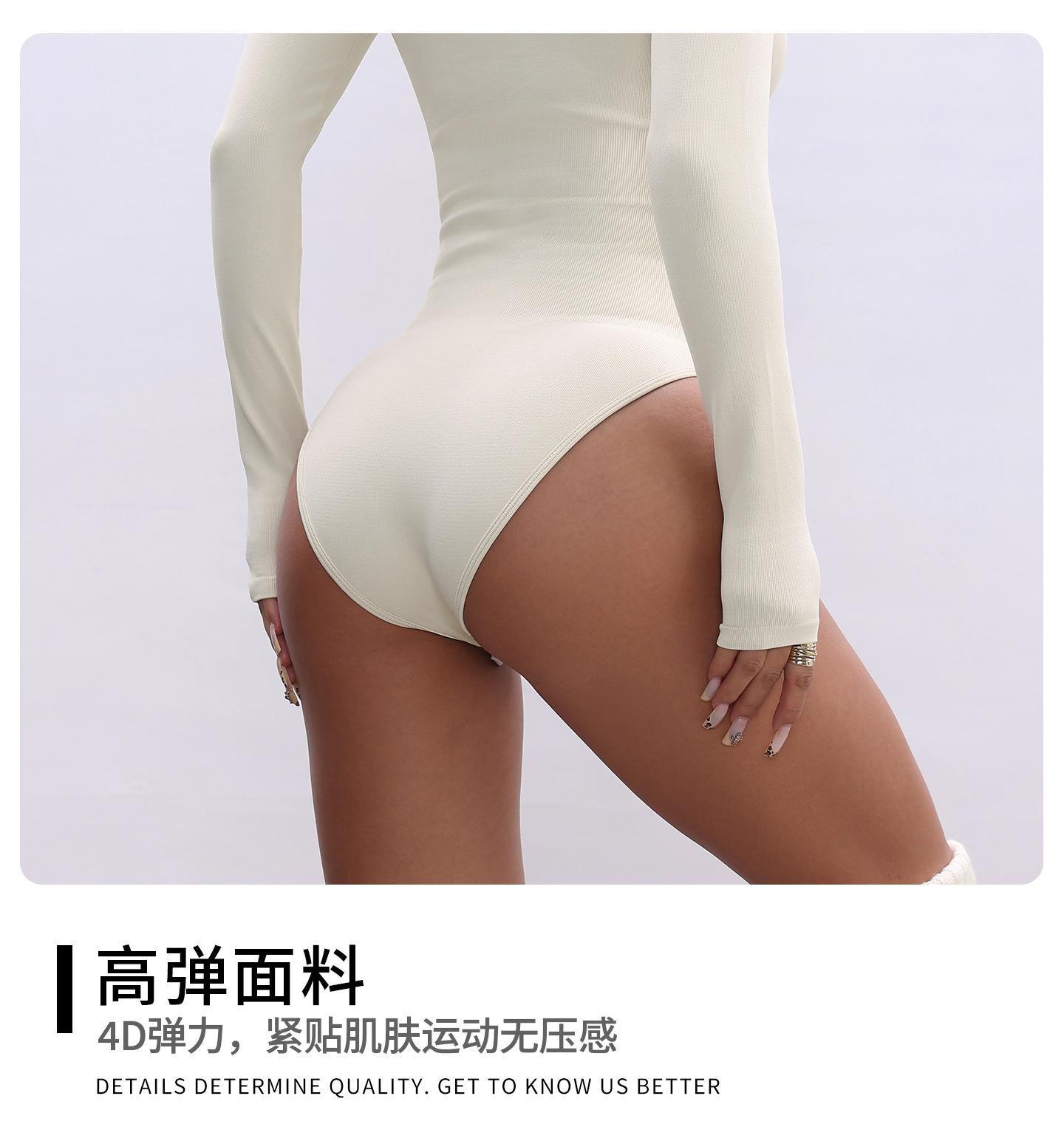 Body de Yoga Seamless Transfronterizo Europeo y Americano para Entrenamiento, Acanalado, Adelgazante de Cintura, Deportivo de Manga Larga