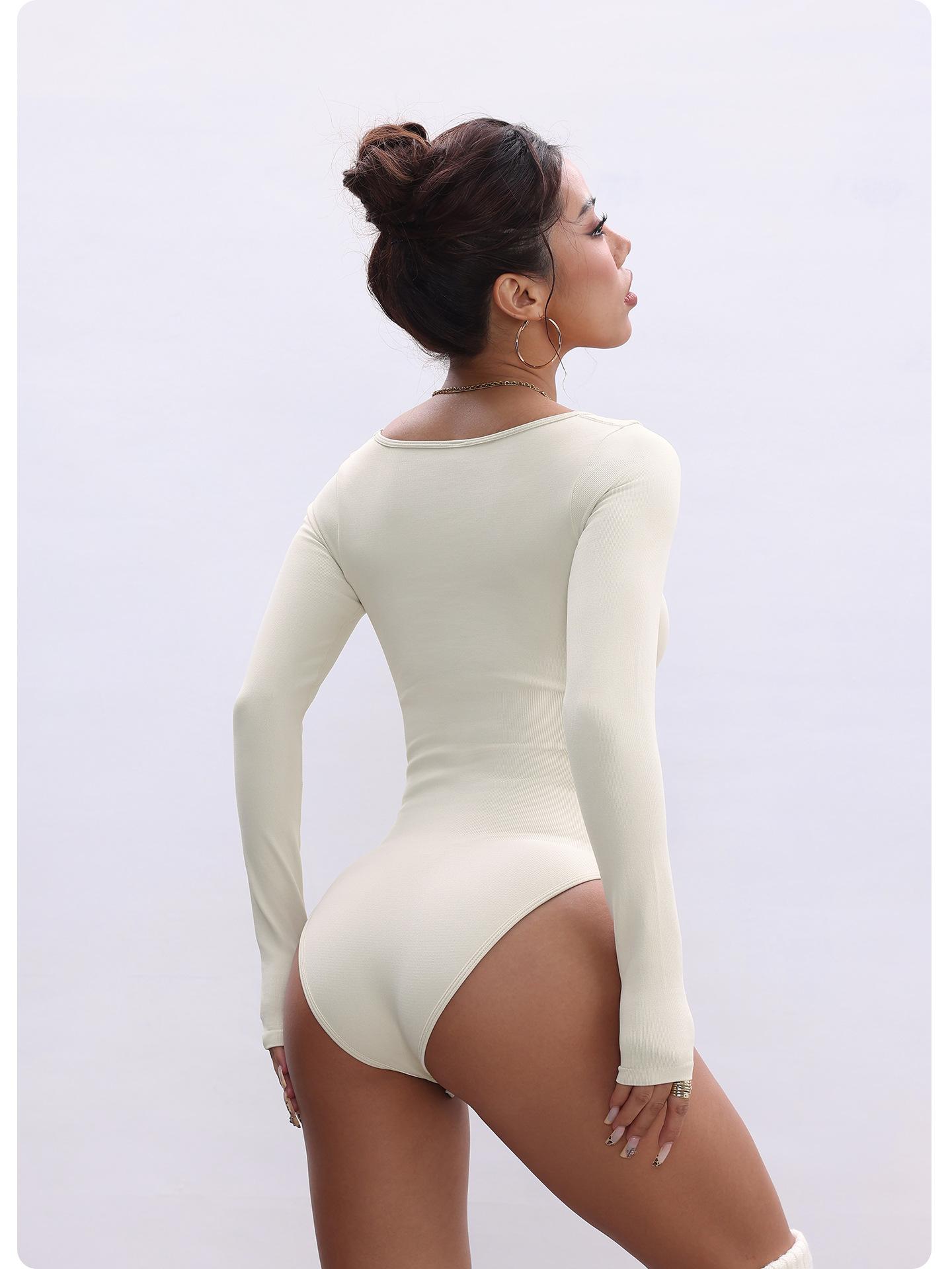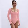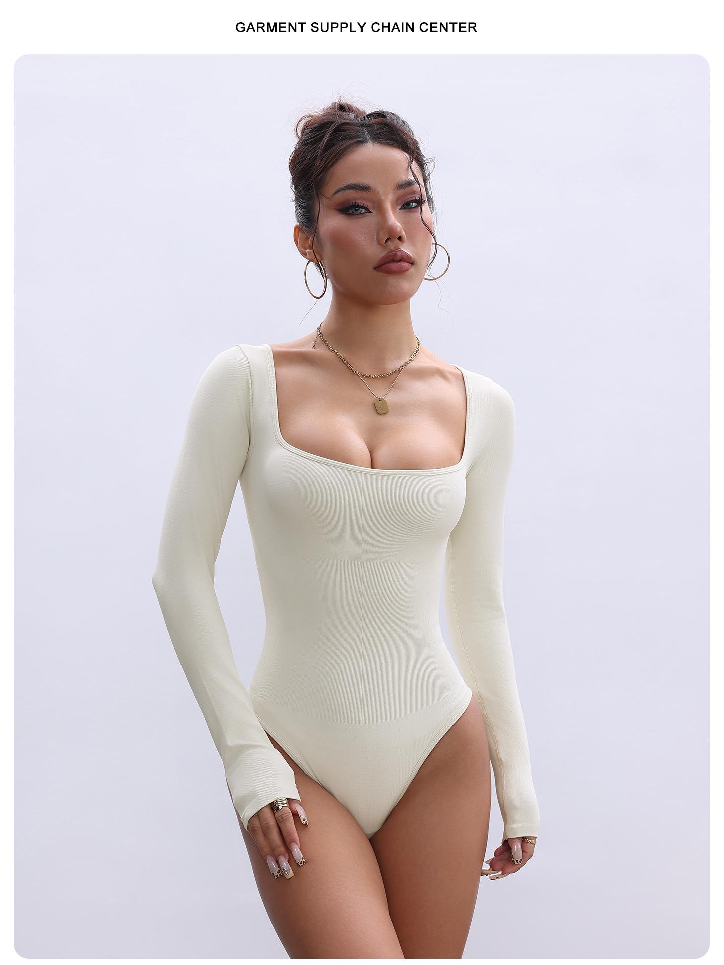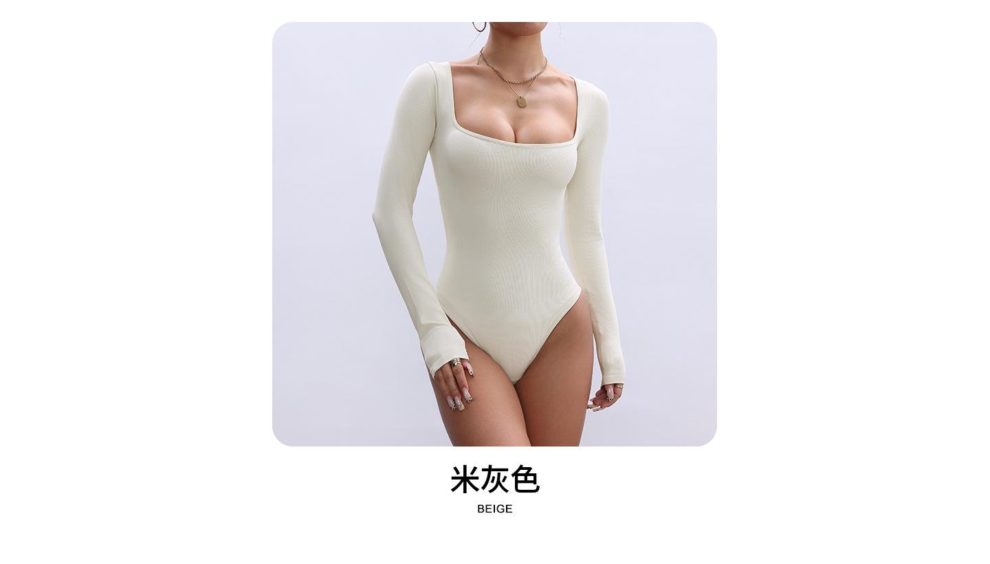 Body de Yoga Seamless Transfronterizo Europeo y Americano para Entrenamiento, Acanalado, Adelgazante de Cintura, Deportivo de Manga Larga