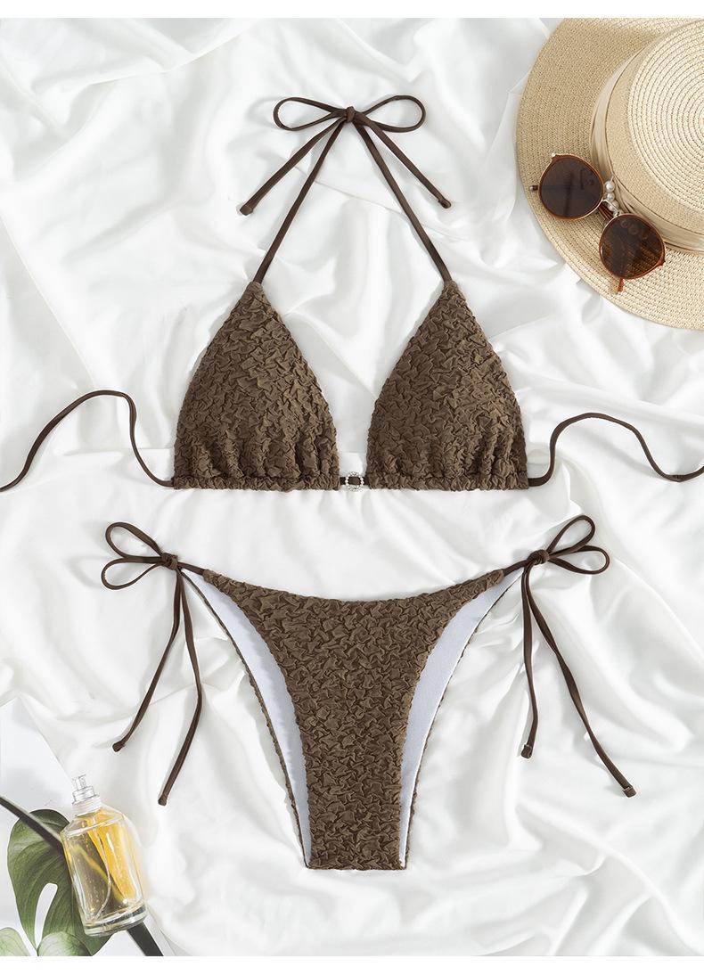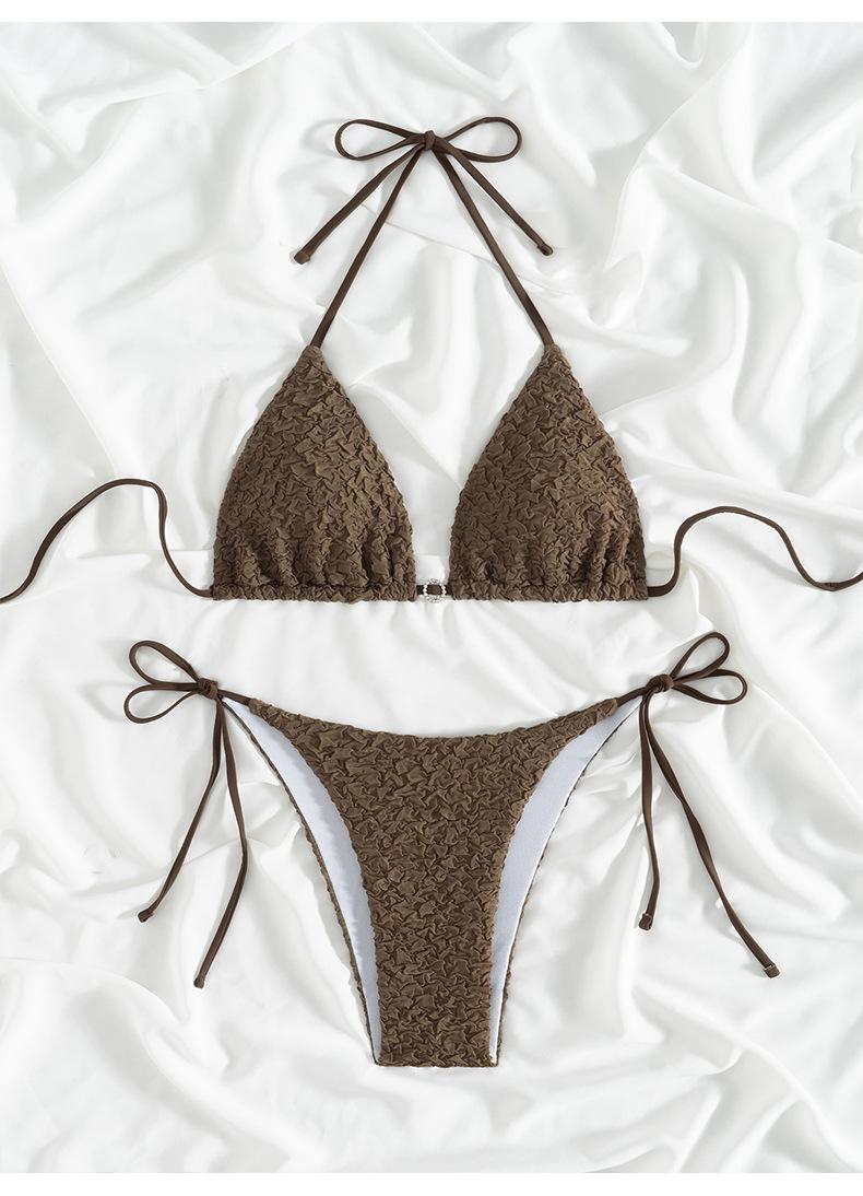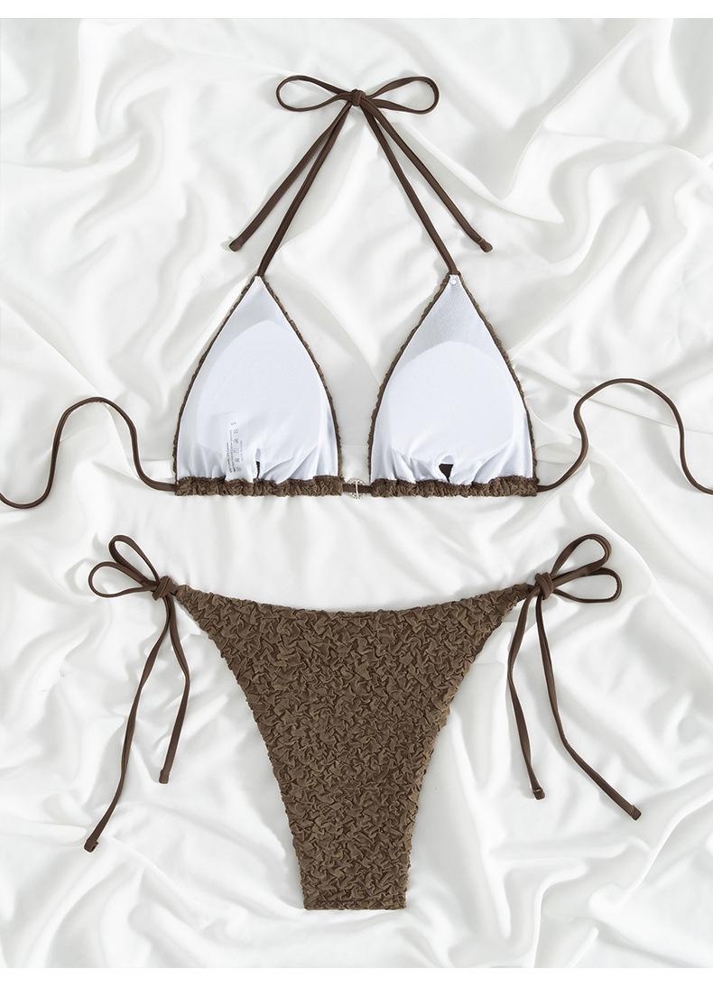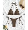 Nuevo bikini europeo y americano sexy de tres puntos dividido traje de baño mujeres color sólido halter atado bikini de chica caliente