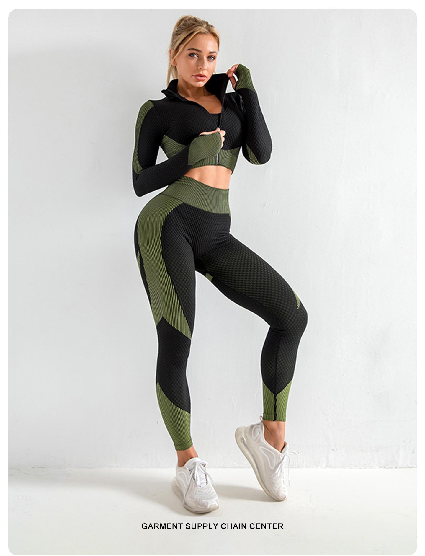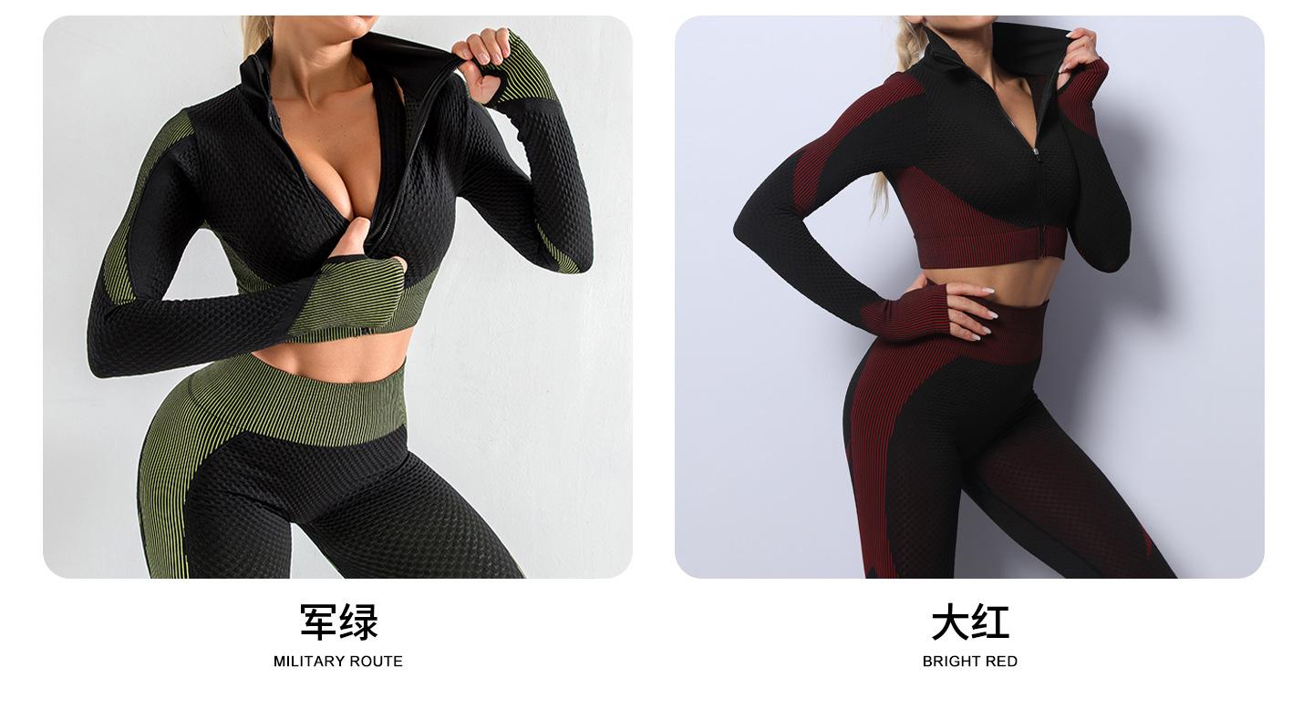 Conjunto de Ropa Deportiva de Yoga Europea y Americana Transfronteriza Chaleco de Fitness Chaqueta Pantalones Pantalones de Yoga de Cintura Alta Conjunto de Tres Piezas