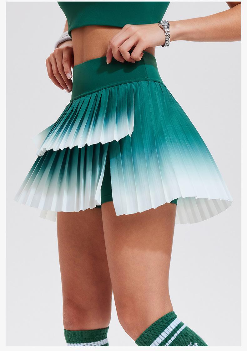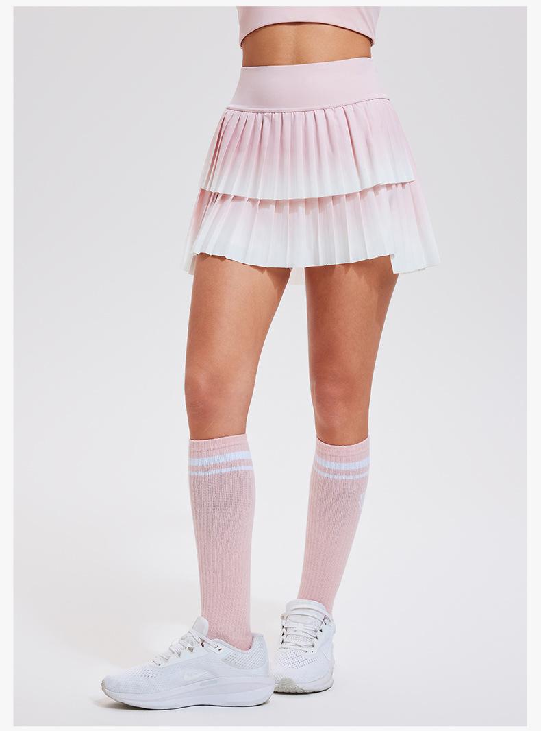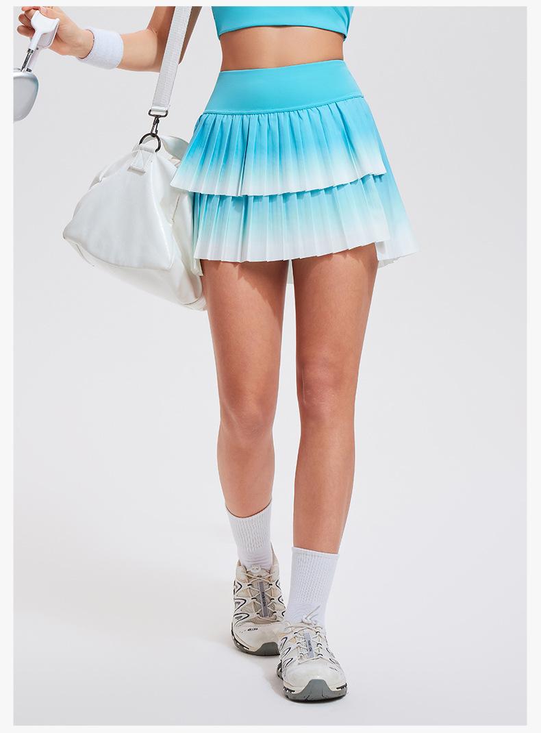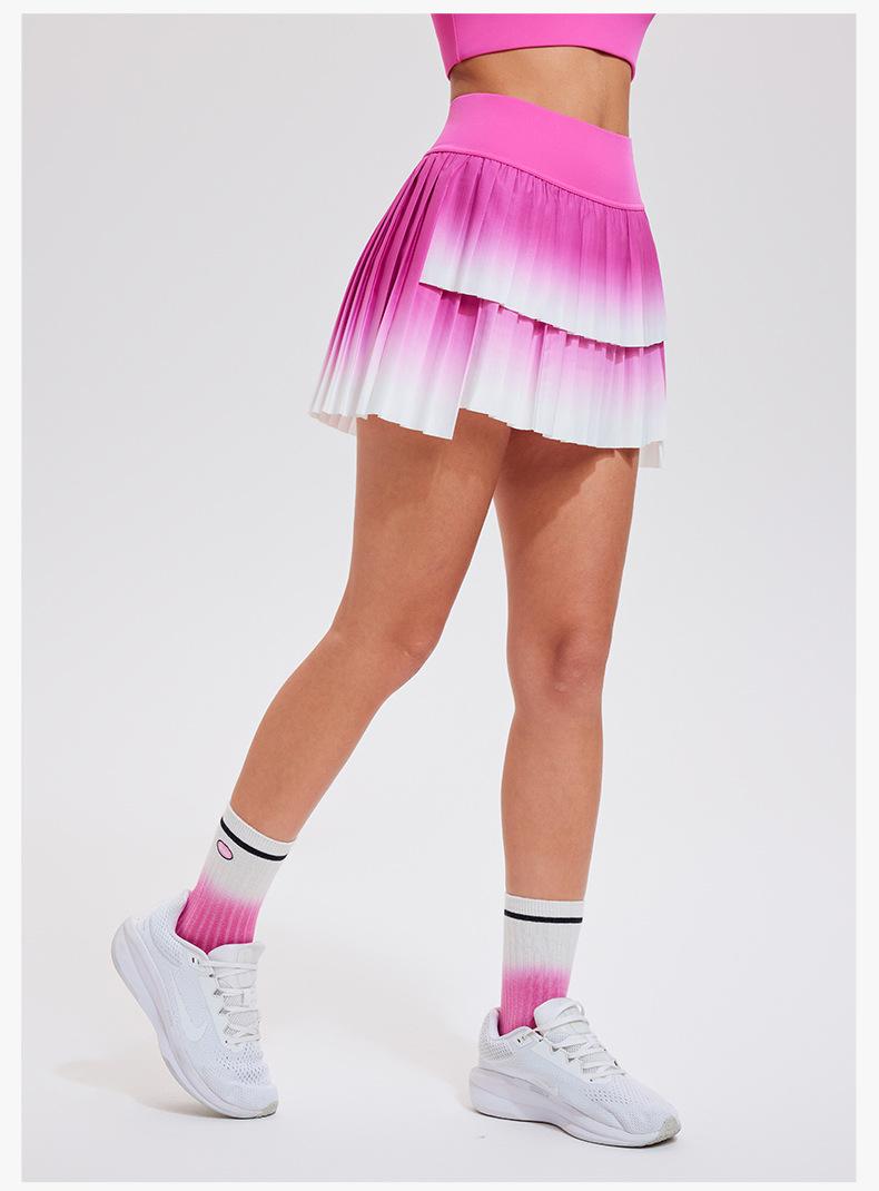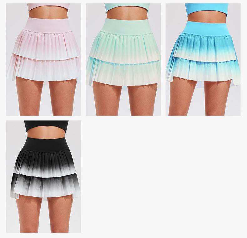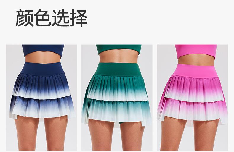 Nueva falda plisada de pastel de yoga de cintura alta anti-exposición con degradado de verano para mujer transfronteriza, falda de bádminton tenis