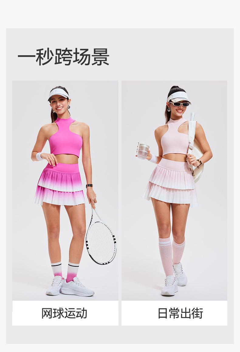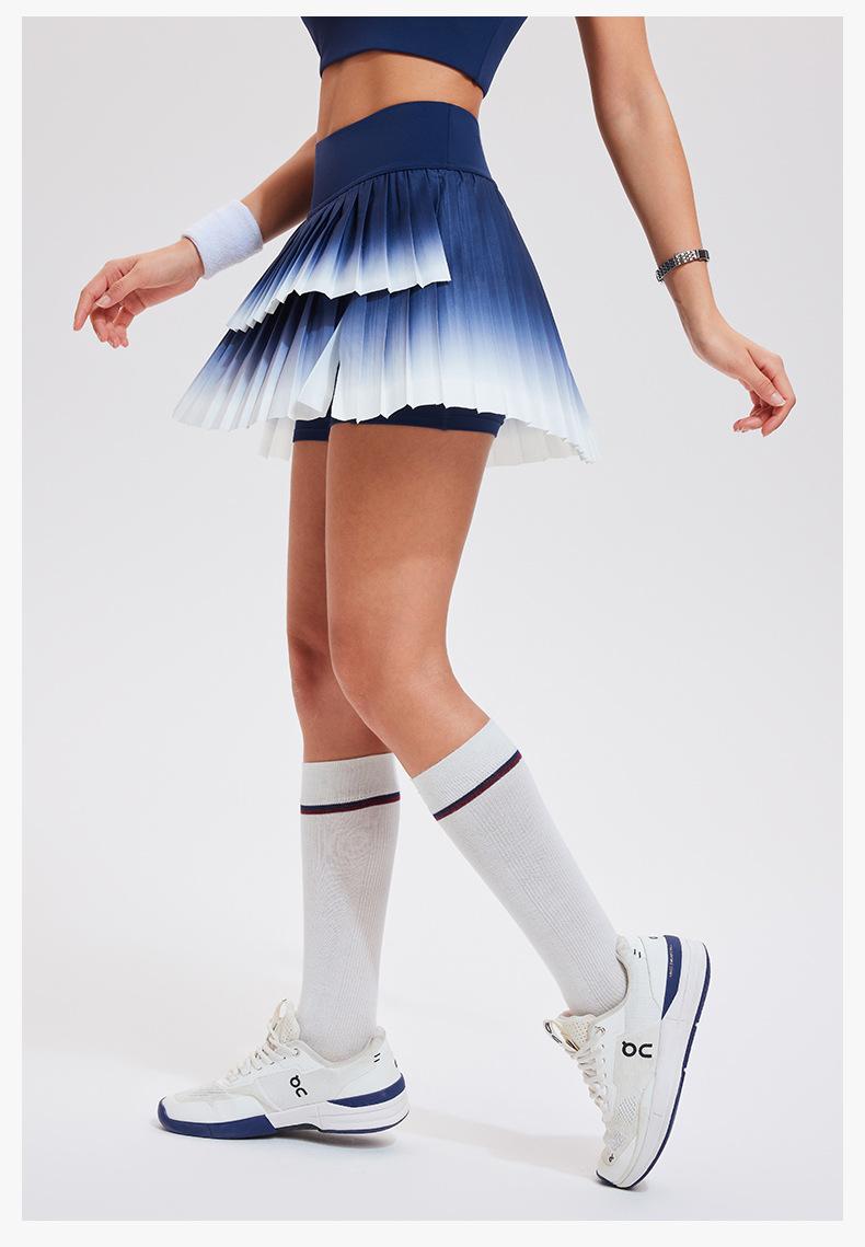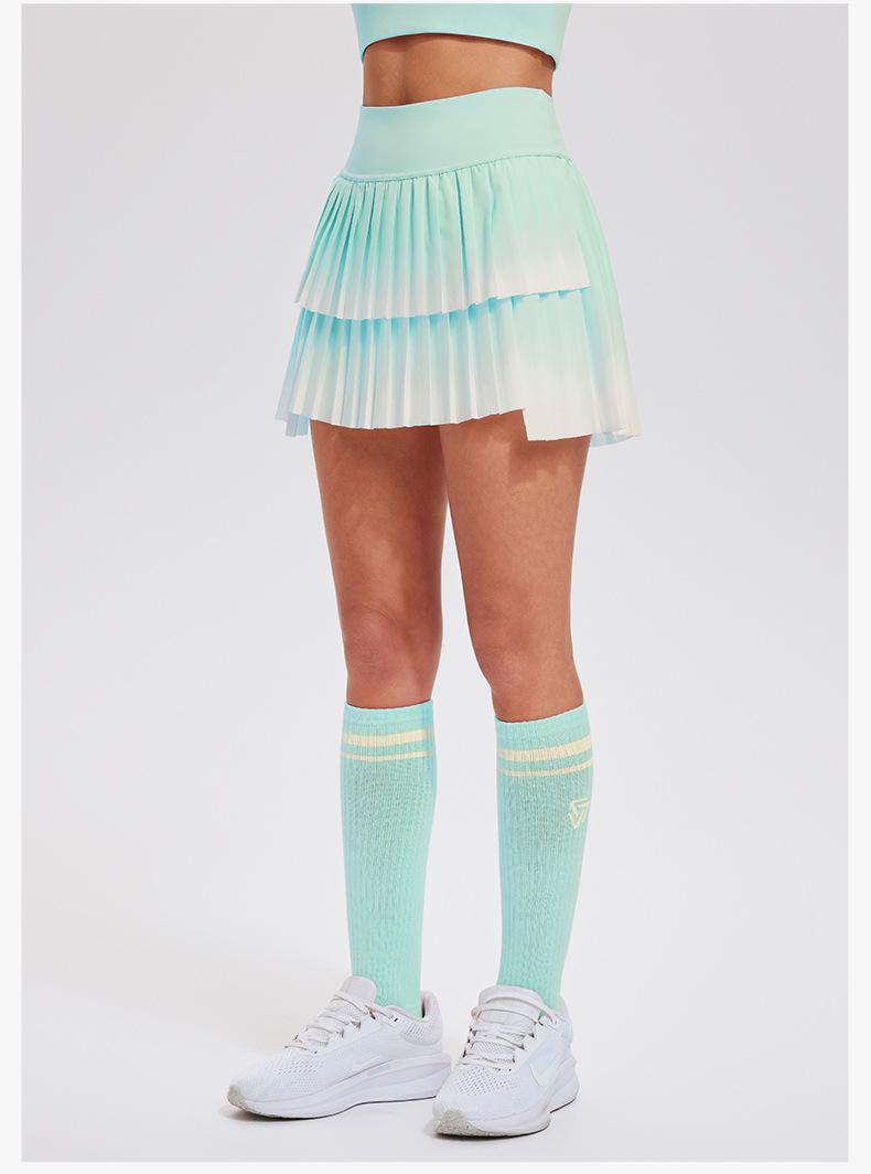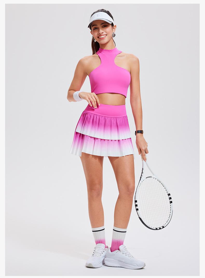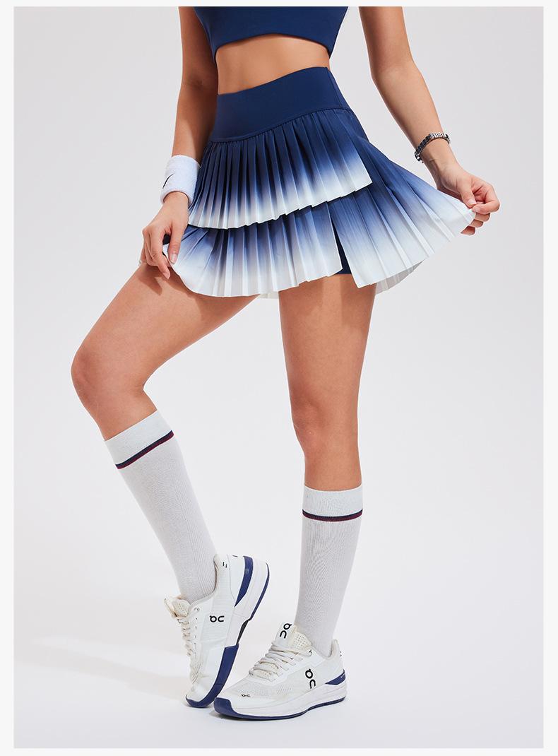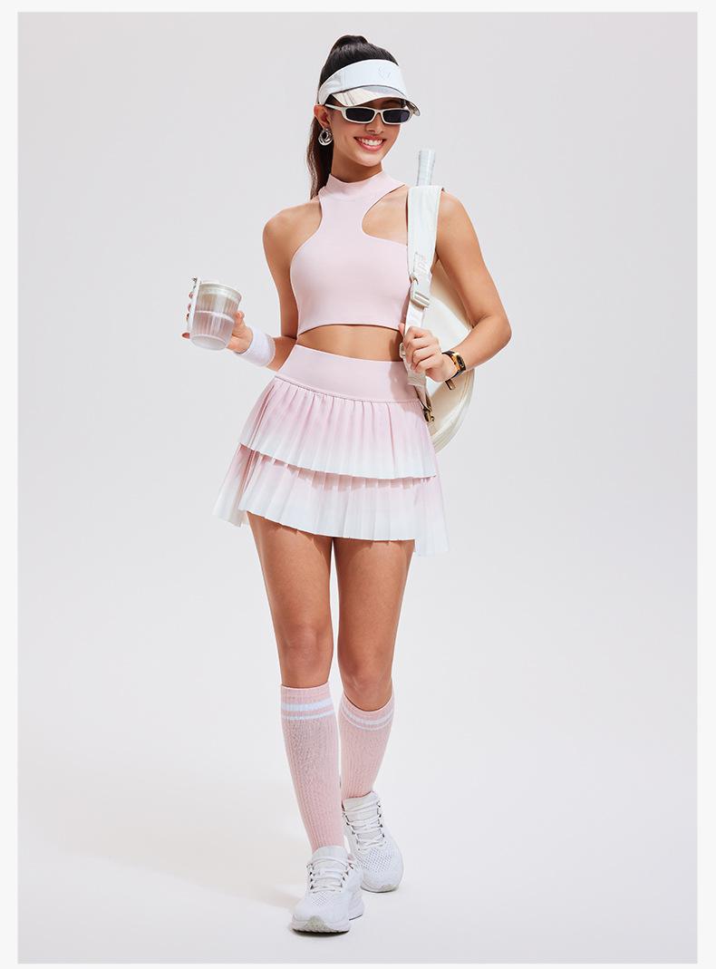 Nueva falda plisada de pastel de yoga de cintura alta anti-exposición con degradado de verano para mujer transfronteriza, falda de bádminton tenis