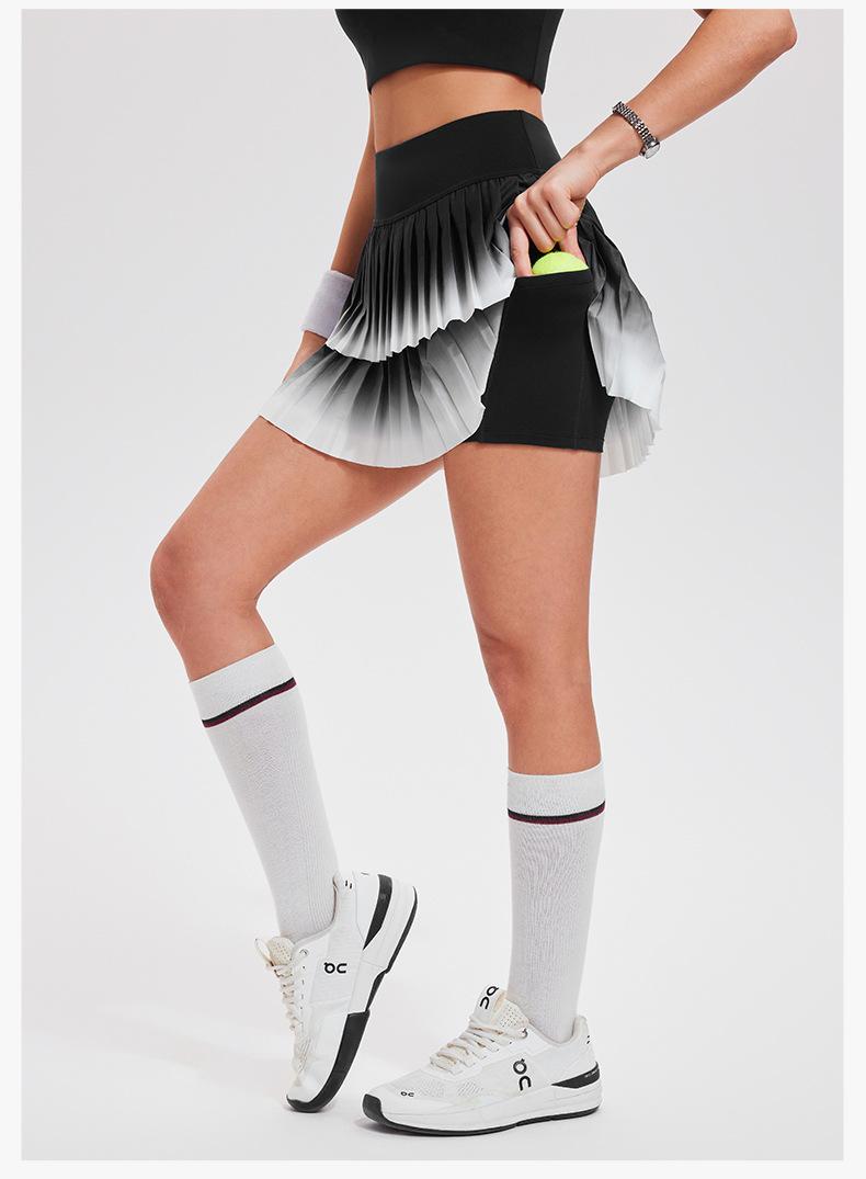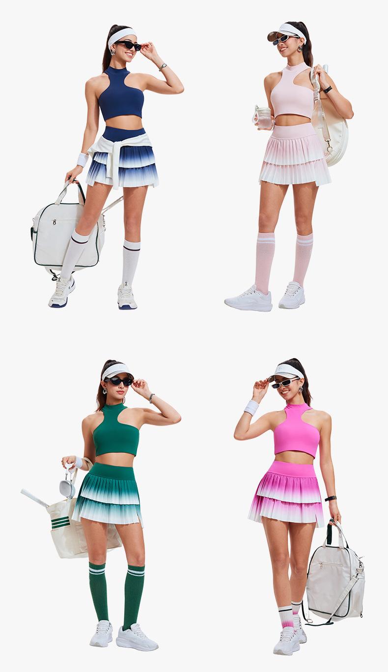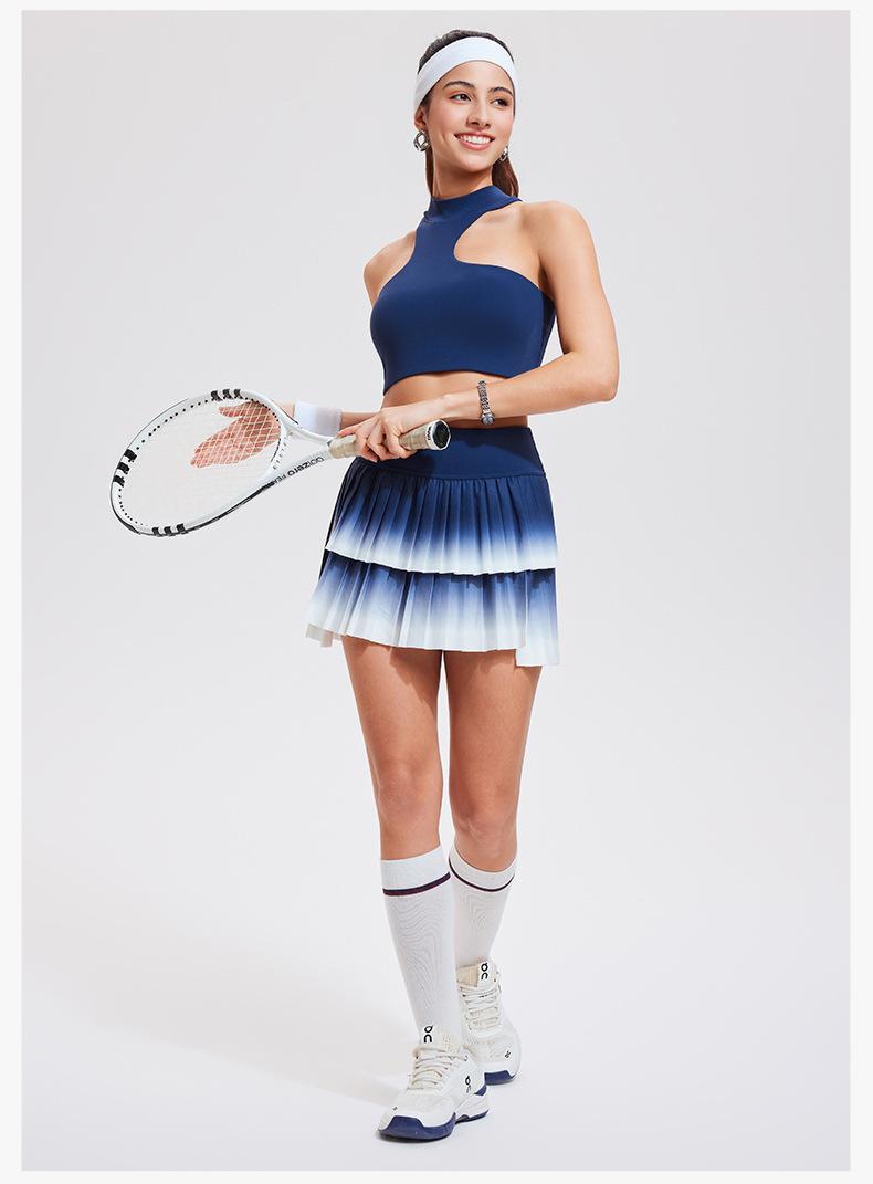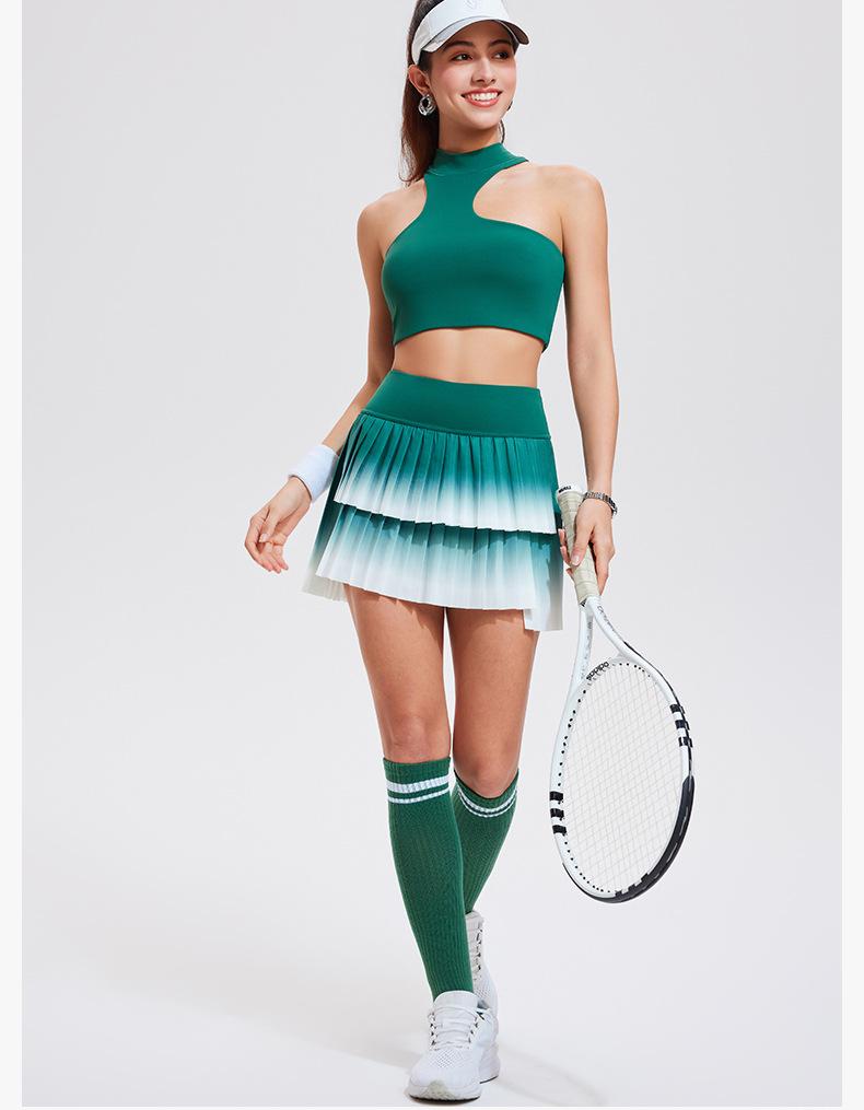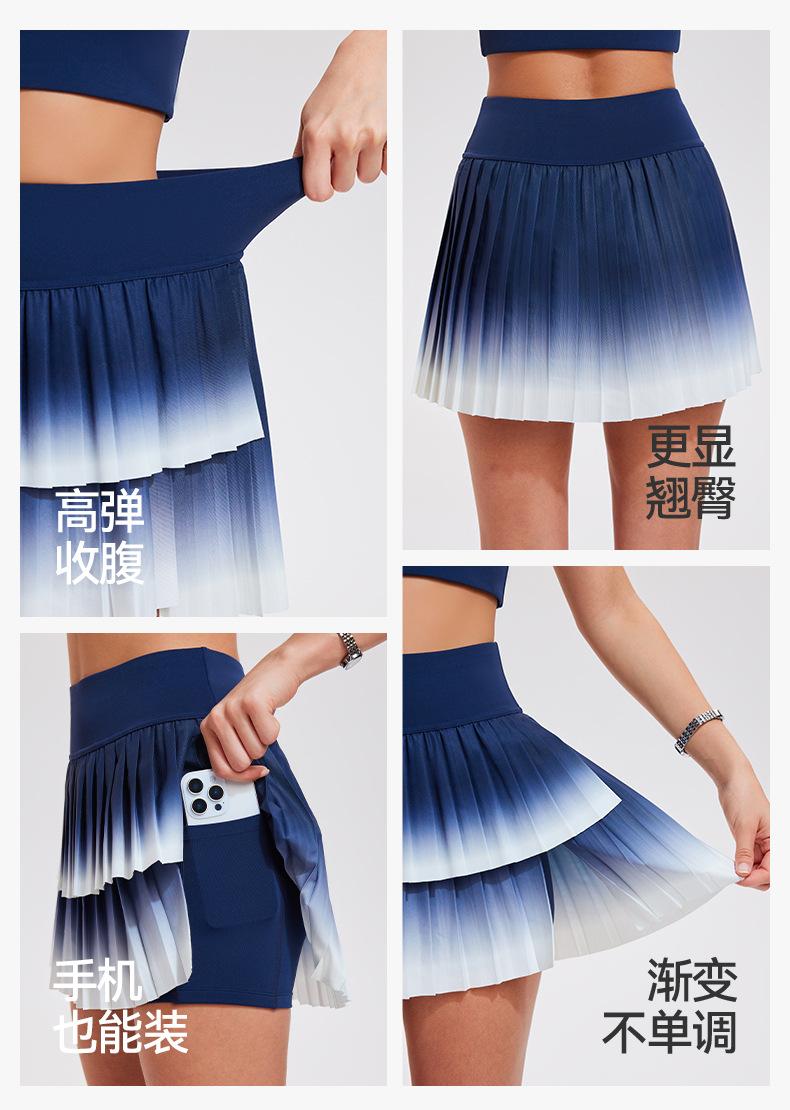 Nueva falda plisada de pastel de yoga de cintura alta anti-exposición con degradado de verano para mujer transfronteriza, falda de bádminton tenis