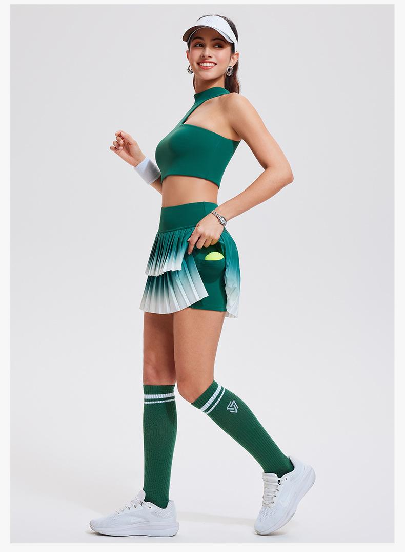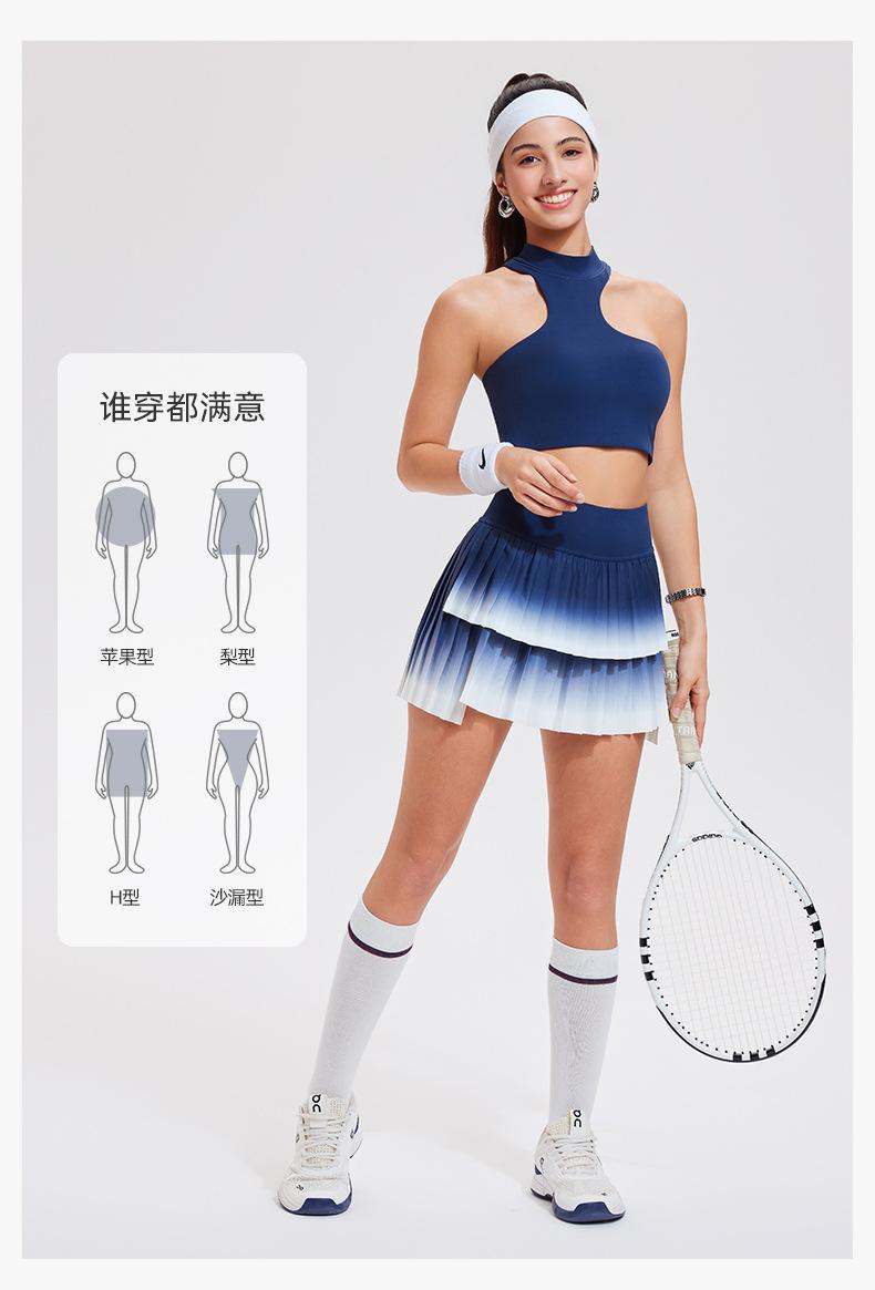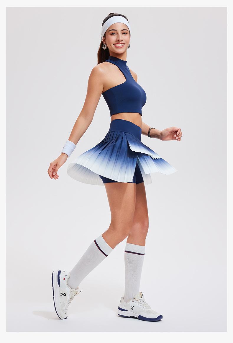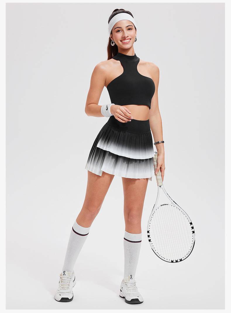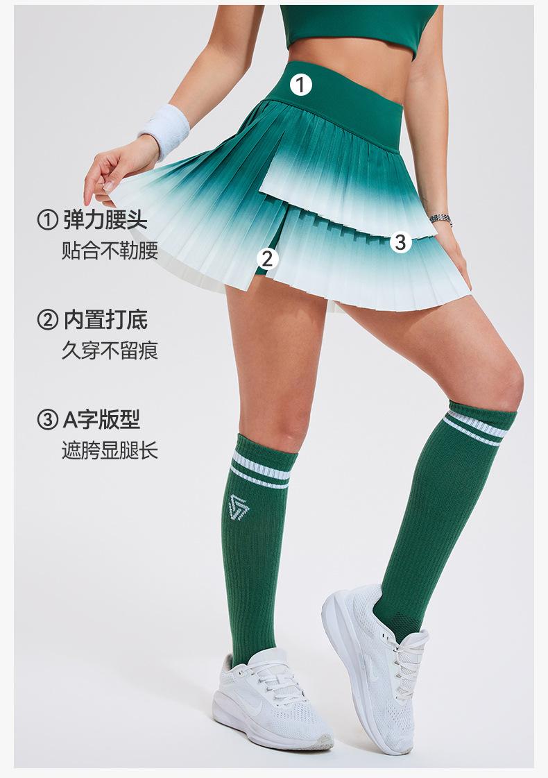 Nueva falda plisada de pastel de yoga de cintura alta anti-exposición con degradado de verano para mujer transfronteriza, falda de bádminton tenis