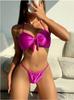 Bikini de tres puntos europeo y americano transfronterizo para mujer, traje de baño dividido, Amazon AliExpress, bikini con lazo al por mayor