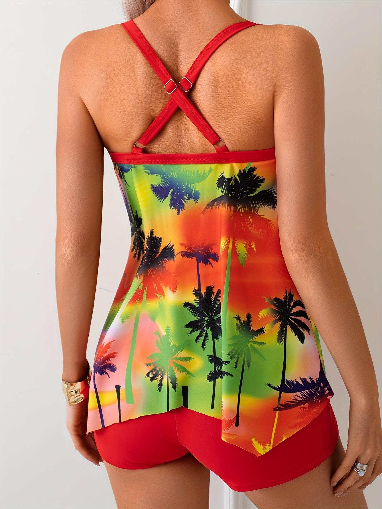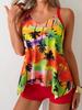 Tankini Europeo y Americano 2025 para Mujer Conservador Transfronterizo Amazon Bóxer Cubre Vientre Traje de Baño Estampado Dividido Conjunto de Dos Piezas