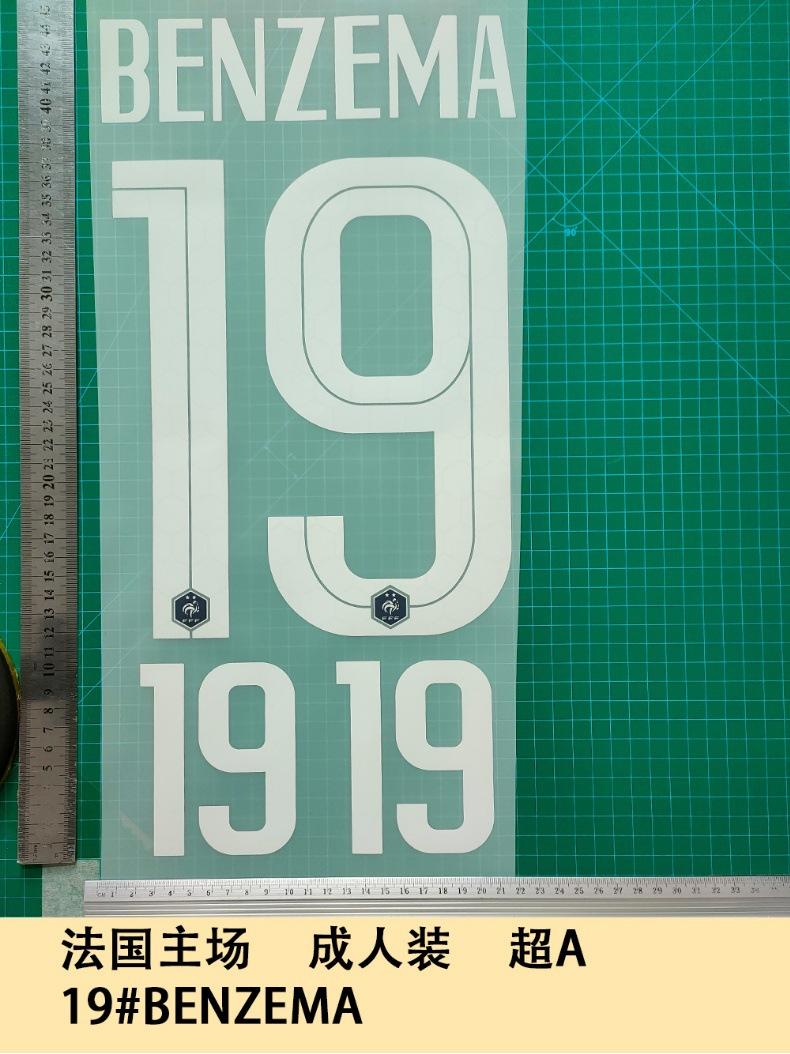 Francés hogar adulto A 19#BENZEMA número de camiseta letra estampado en caliente número transferencia de calor mapa bola
