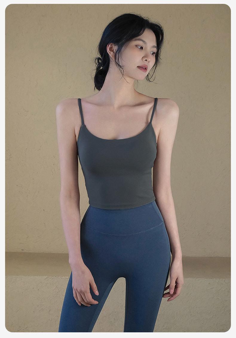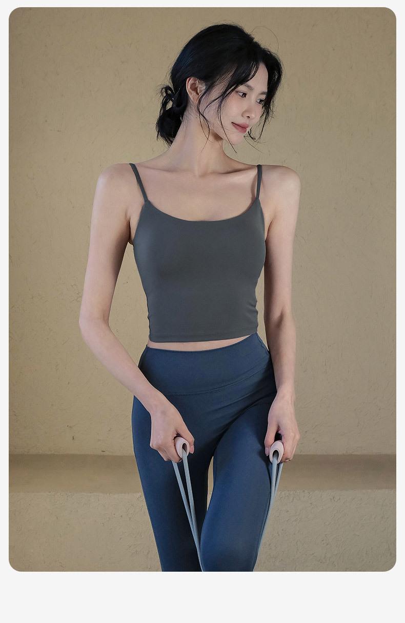 Conjunto de traje de yoga para mujer, ropa exterior con almohadilla en el pecho, a prueba de golpes, secado rápido, top deportivo tipo chaleco, entrenamiento de Pilates, fitness, pantalones largos