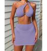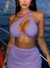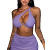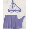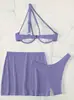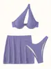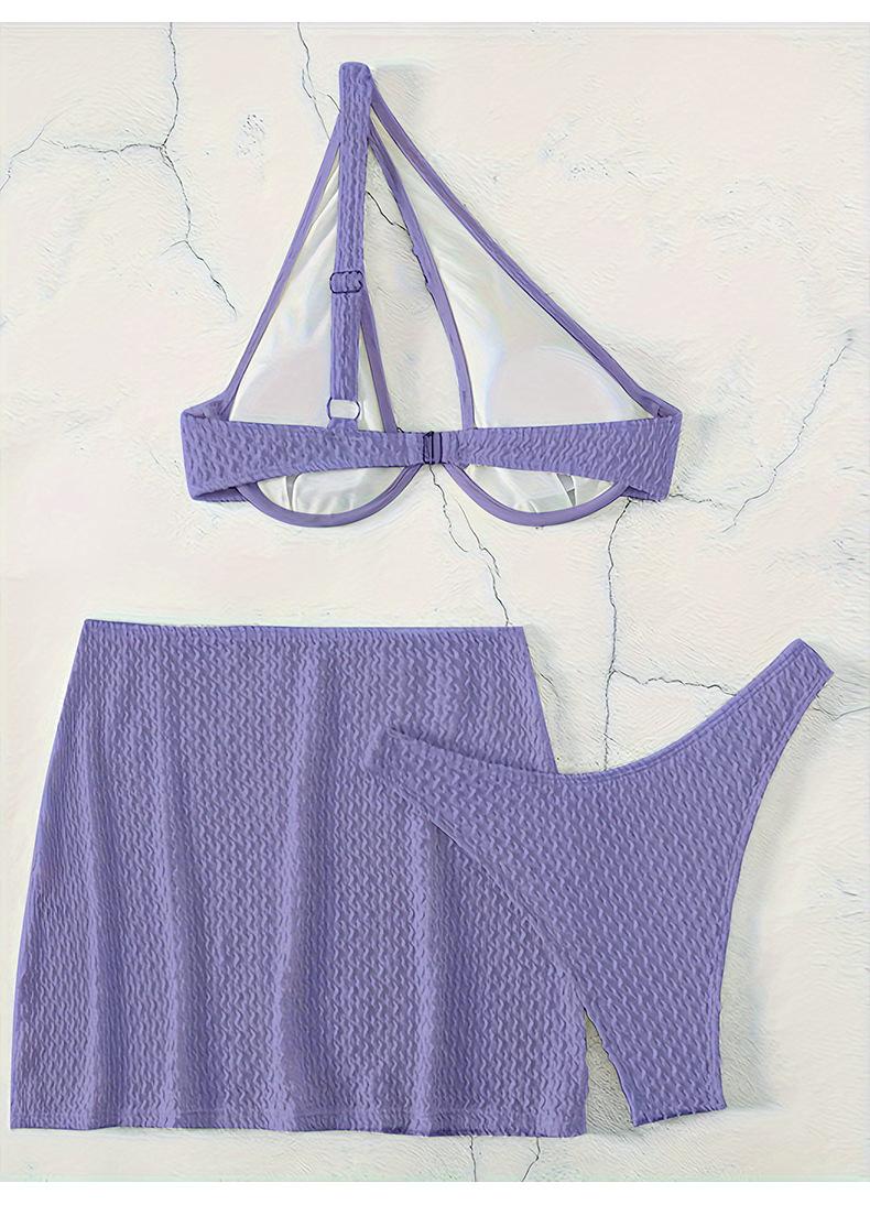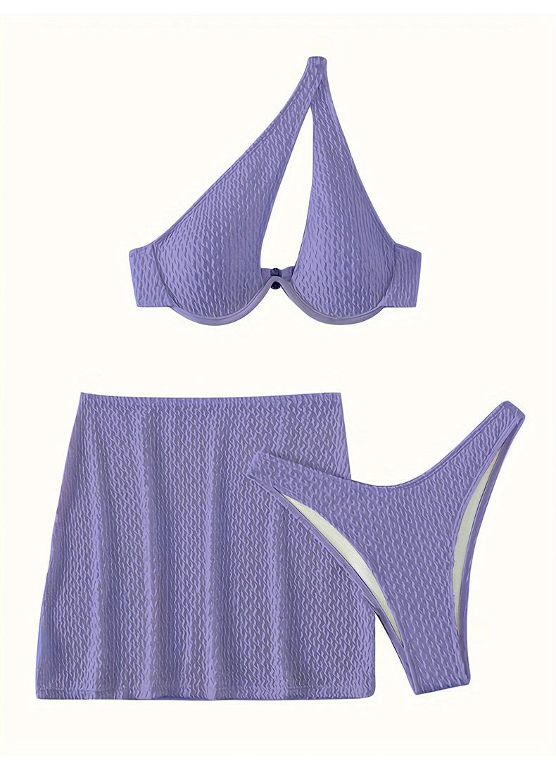 Traje de baño nuevo transfronterizo europeo y americano sexy sin espalda color sólido dividido traje de baño bikini de tres piezas para mujer bikini de un hombro