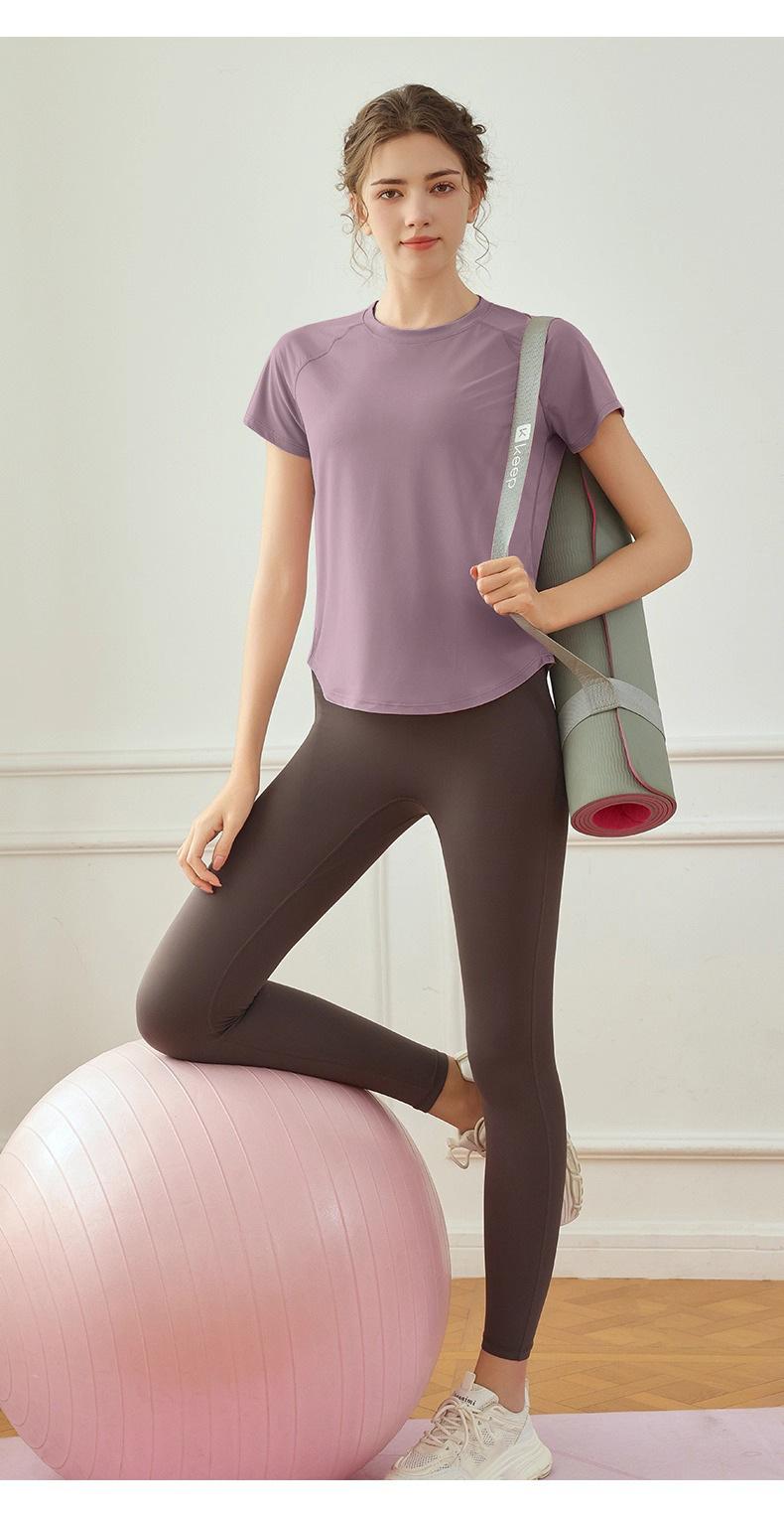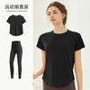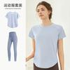 Conjunto de Traje de Yoga de Otoño de Manga Corta Holgado para Fitness para Mujer para Correr Deportes Adelgazante Top Ropa de Entrenamiento de Pilates